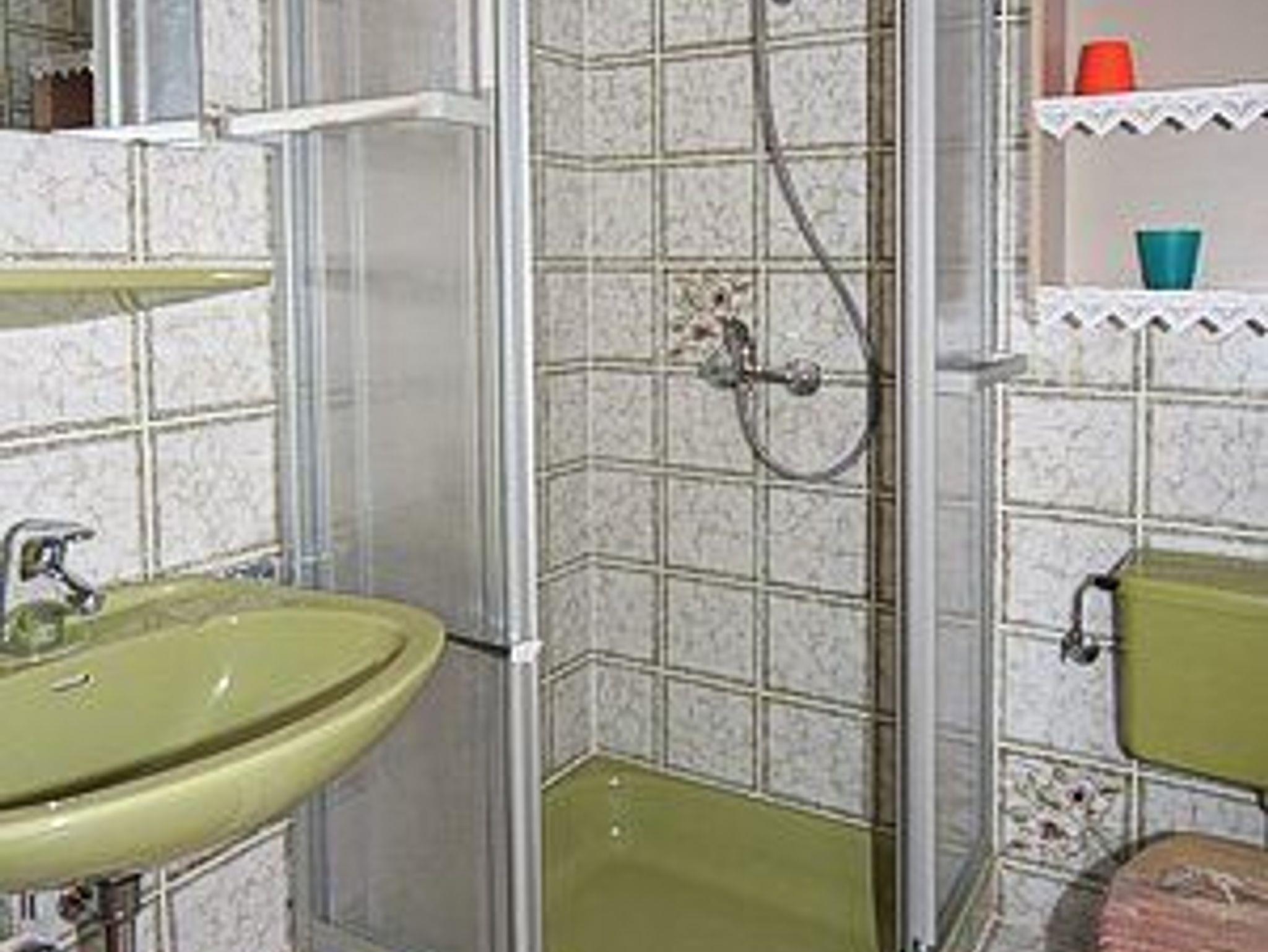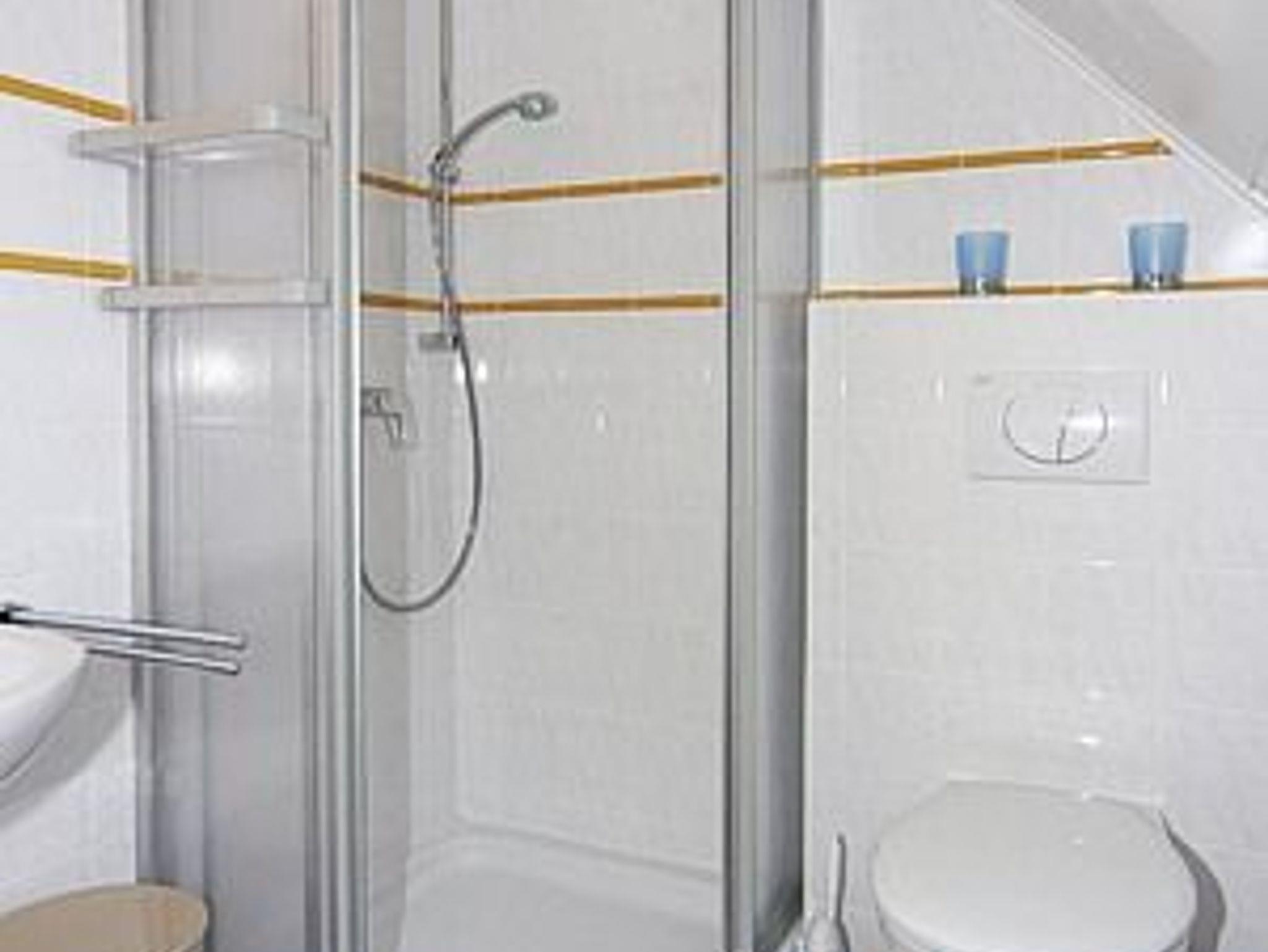 zweites Badezimmer mit Dusche, Waschtisch und WC