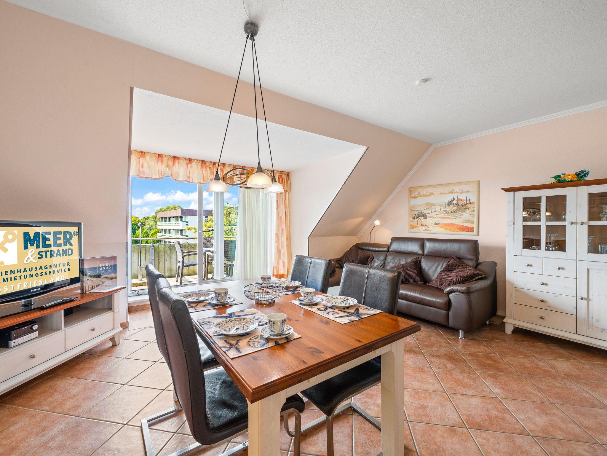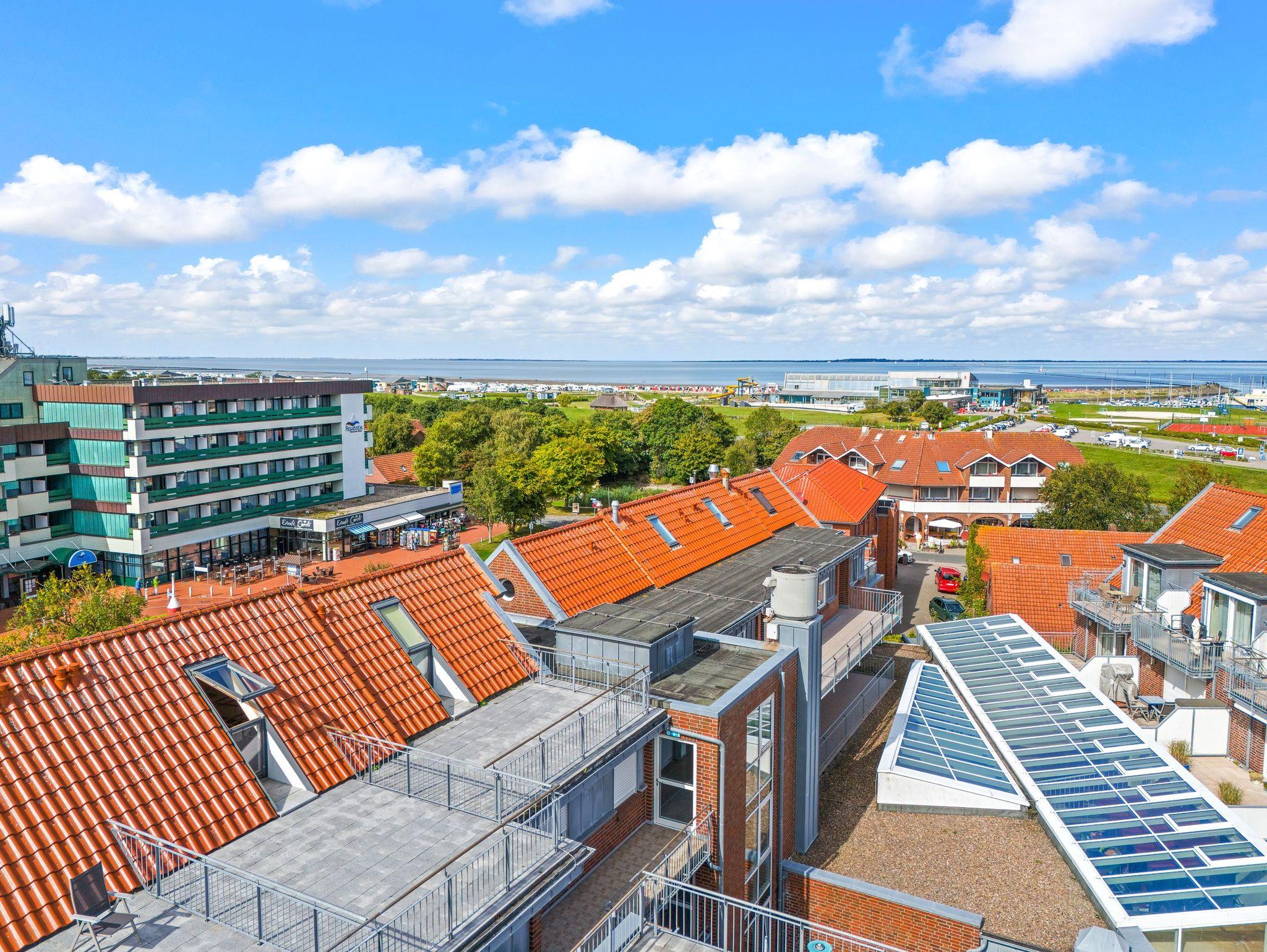 Die Ferienwohnung ''Krusenstern'' befindet sich im Nordseegartenpark in Bensersiel, direkt an der Küste.