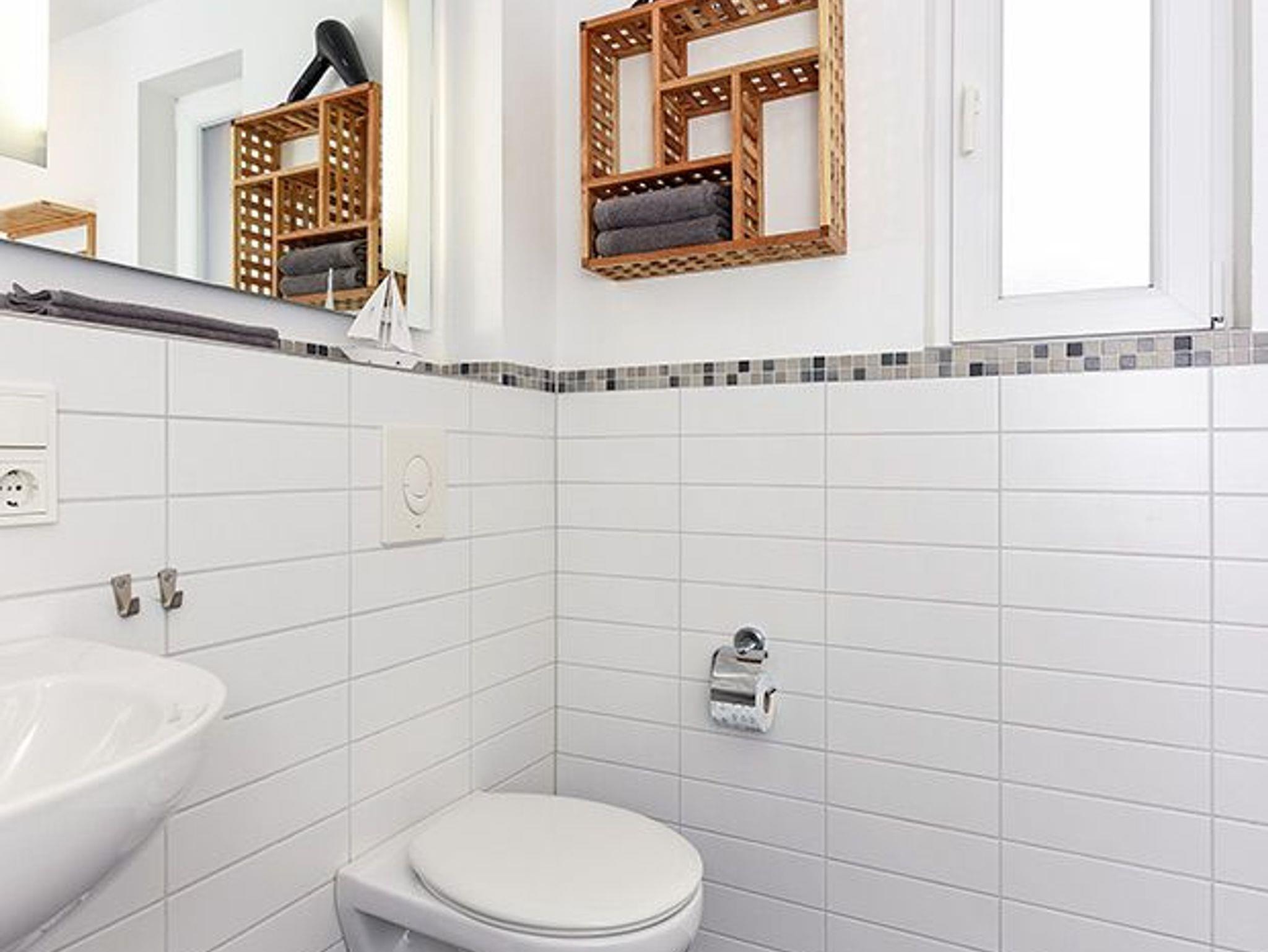 Schlafzimmer, zweites separates Schlafzimmer, Badezimmer mit Dusche, Waschtisch und WC, Erdgeschoss