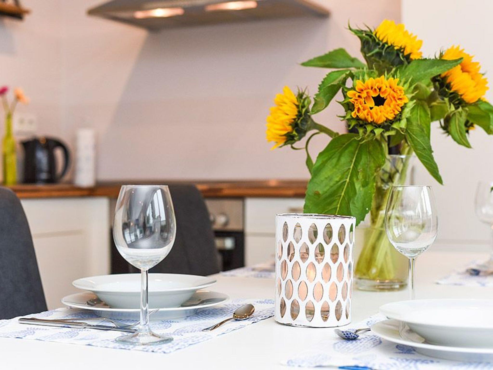 Alle Wohnungen sind sehr geschmackvoll und modern-komfortabel gestaltet und eingerichtet. Die acht Ferienwohnungen verfügen über eine hervorragende und exklusive Ausstattung, z. B. mit modernen Flachbild-Fernsehern, mit sehr schicken Badezimmern mit barrierefreien Duschzugängen und schicken modernen voll ausgerüsteten Küchen (Geschirrspülmaschinen, Mikrowellen, Ceranherde mit Backöfen und vieles mehr).