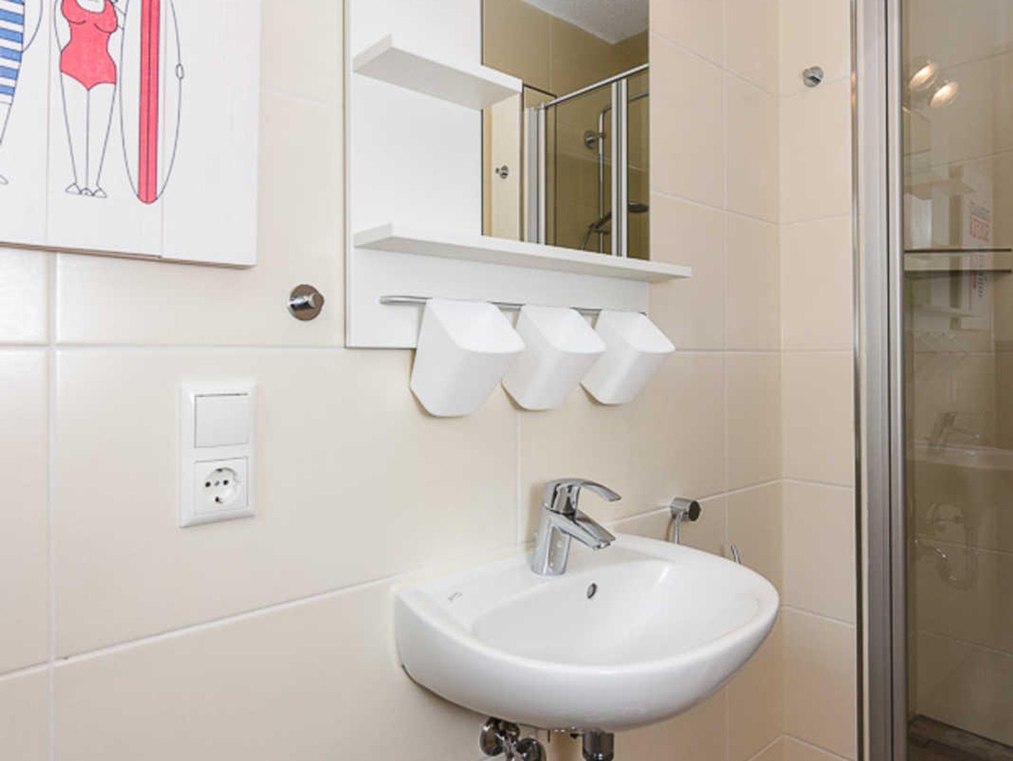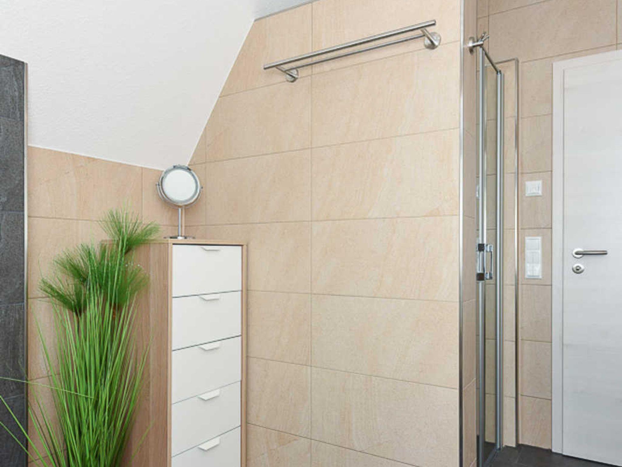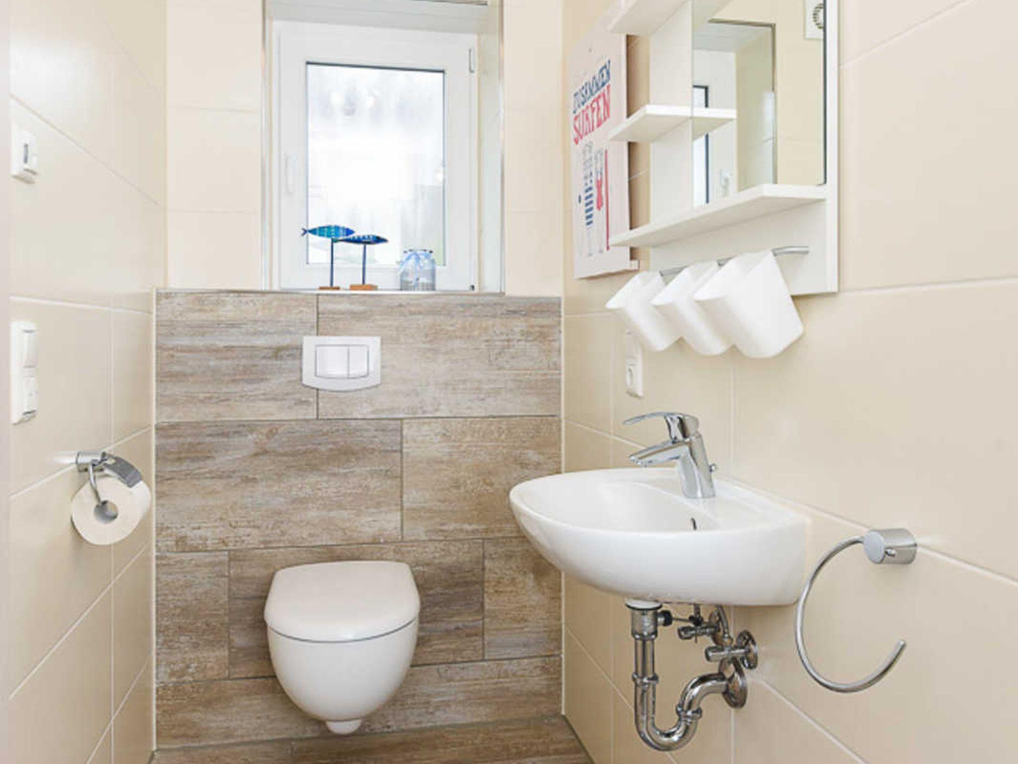 zweites Badezimmer mit Dusche, Waschtisch und WC