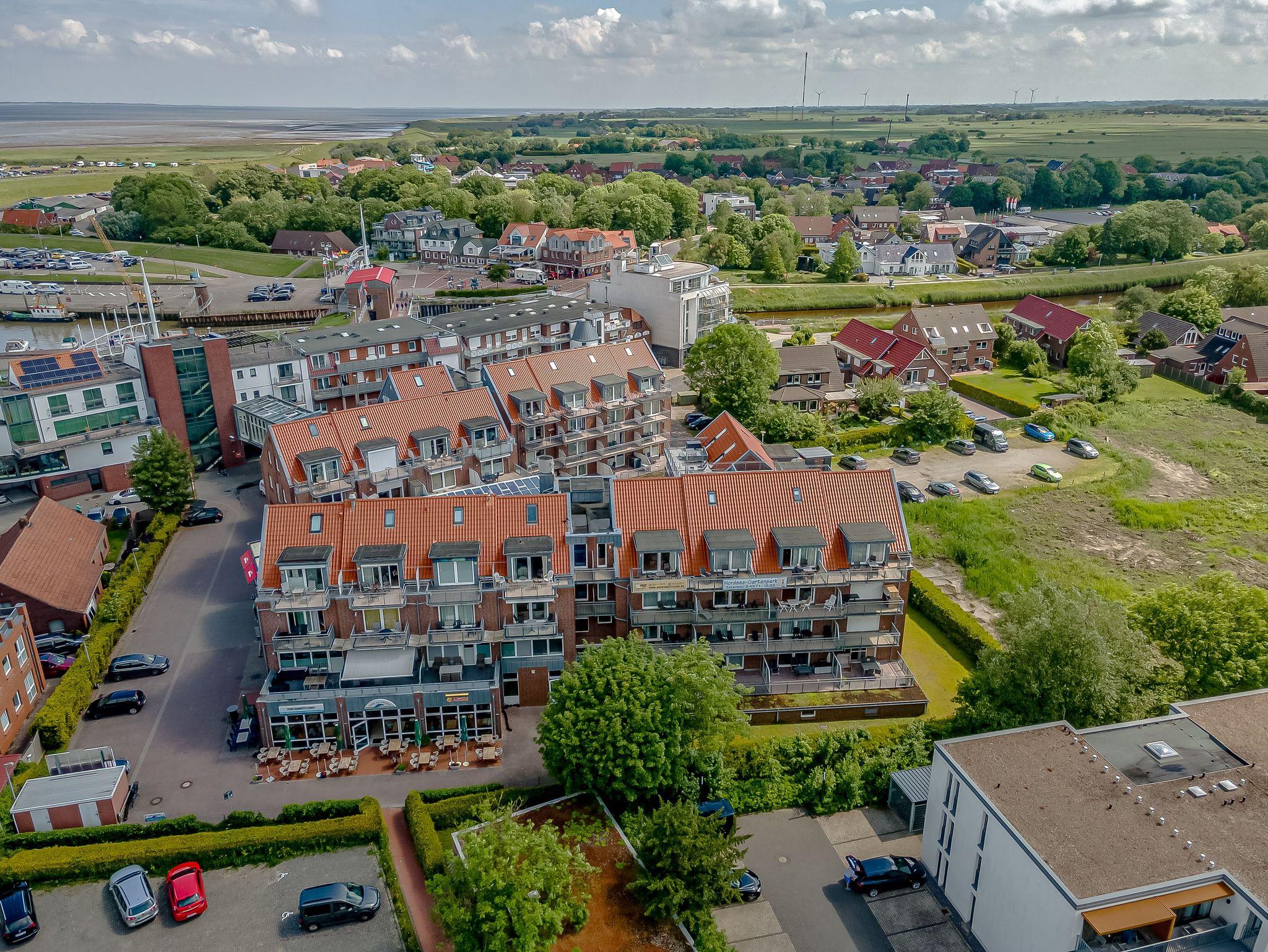 Die Ferienwohnung ''Sonnendeck'' befindet sich im Nordseegartenpark in Bensersiel, direkt an der Küste.