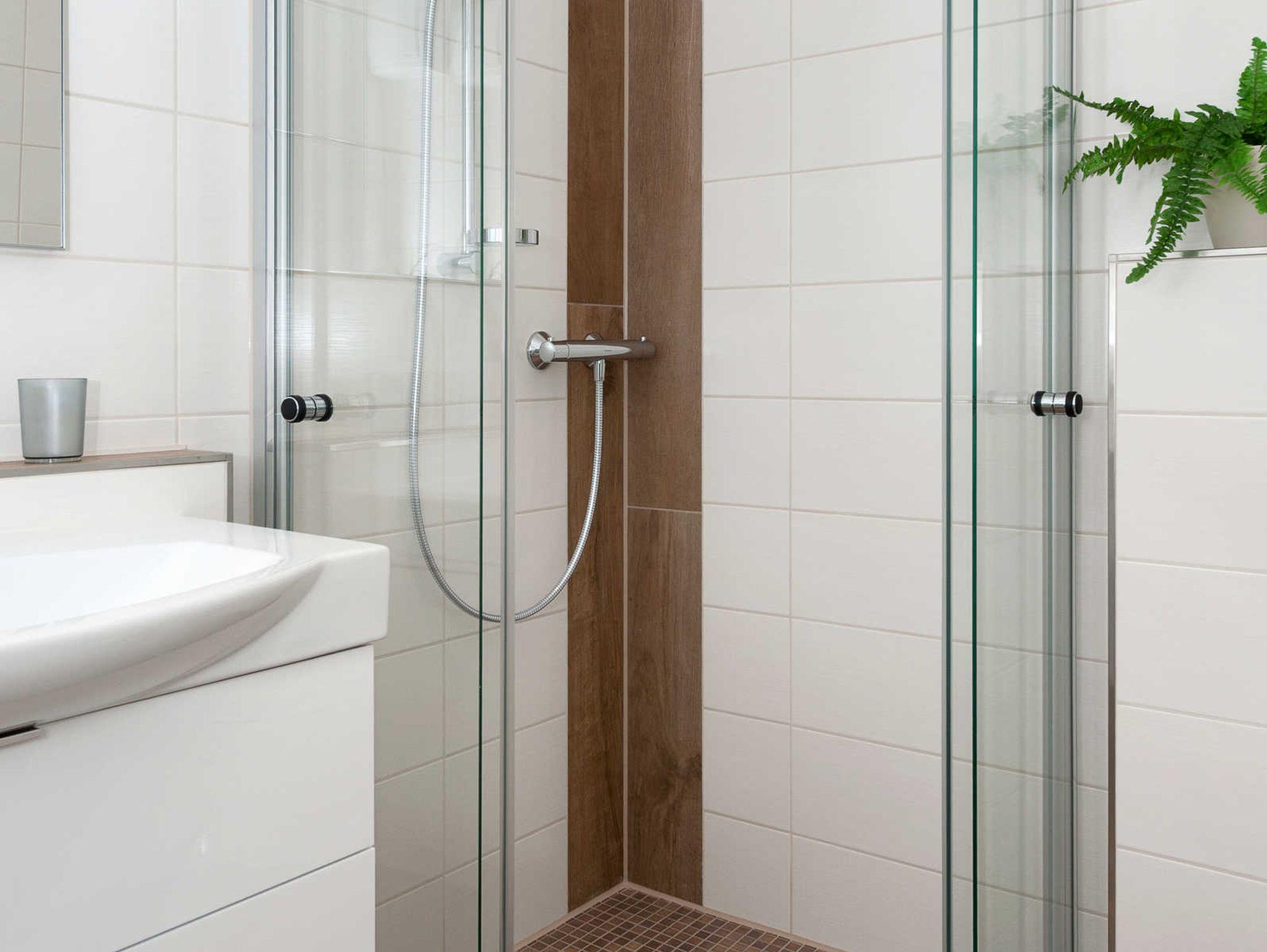 Badezimmer mit Dusche, Waschtisch und WC