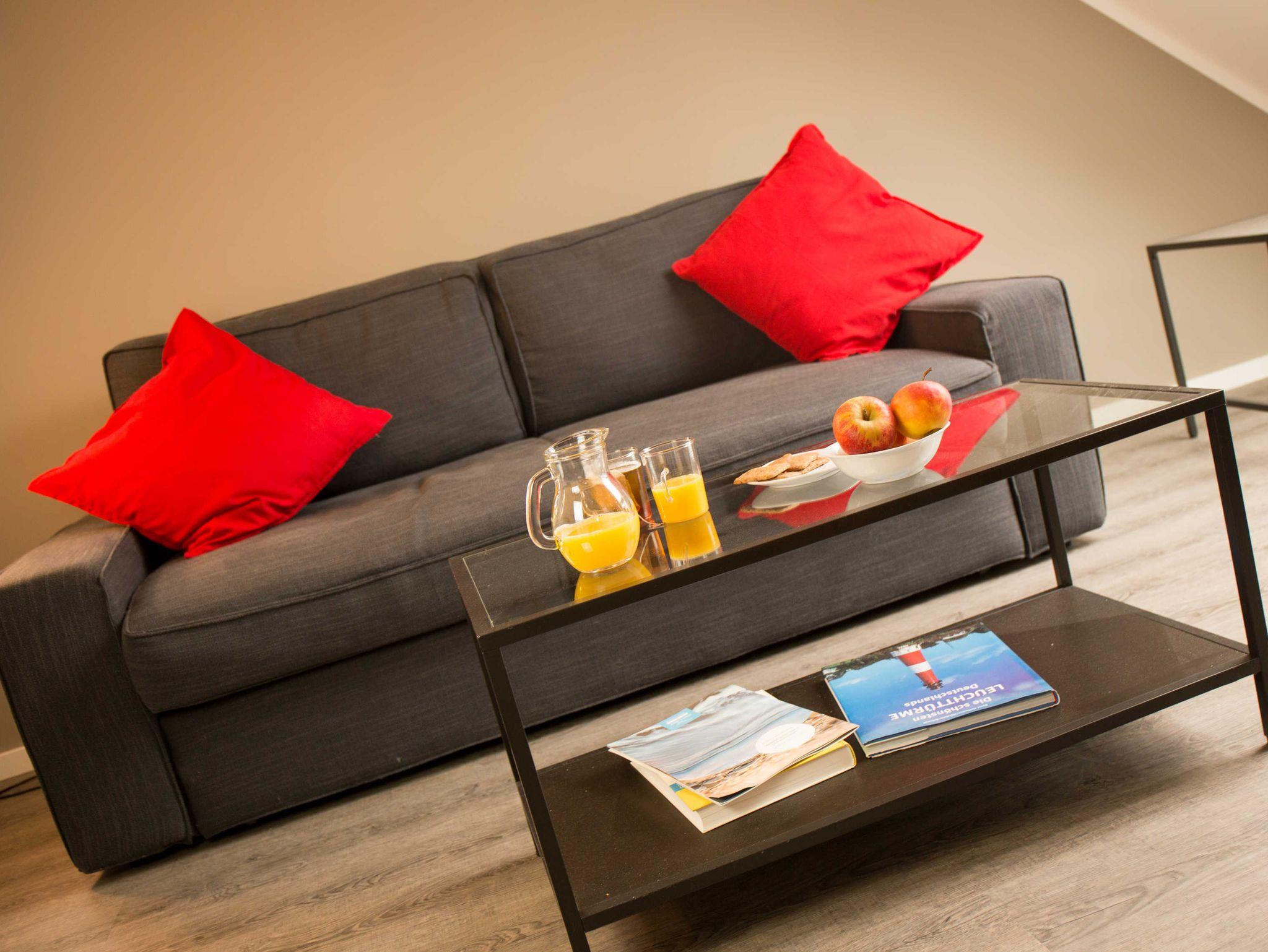 Ihre Unterkunft verfügt über kostenfreies WLAN. Der Wohnbereich mit zusätzlicher Schlafcouch bietet zudem eine gut ausgestattete offene Küchenzeile mit Kühlschrank, Gefrierfach, Kaffeemaschine, Wasserkocher und Mikrowelle. Das Appartement verfügt über einen Esstisch für 4 Personen und einen behaglichen Sitzbereich. im separaten Schlafzimmer steht Ihnen ein komfortables Boxspringbett zur Verfügung. Im stilvollen Badezimmer befinden sich eine große begehbare Dusche sowie ein Waschtisch mit Föhn. Des Weiteren ist im Buchungspreis ein Wäschepaket mit Handtüchern und Bettwäsche enthalten.