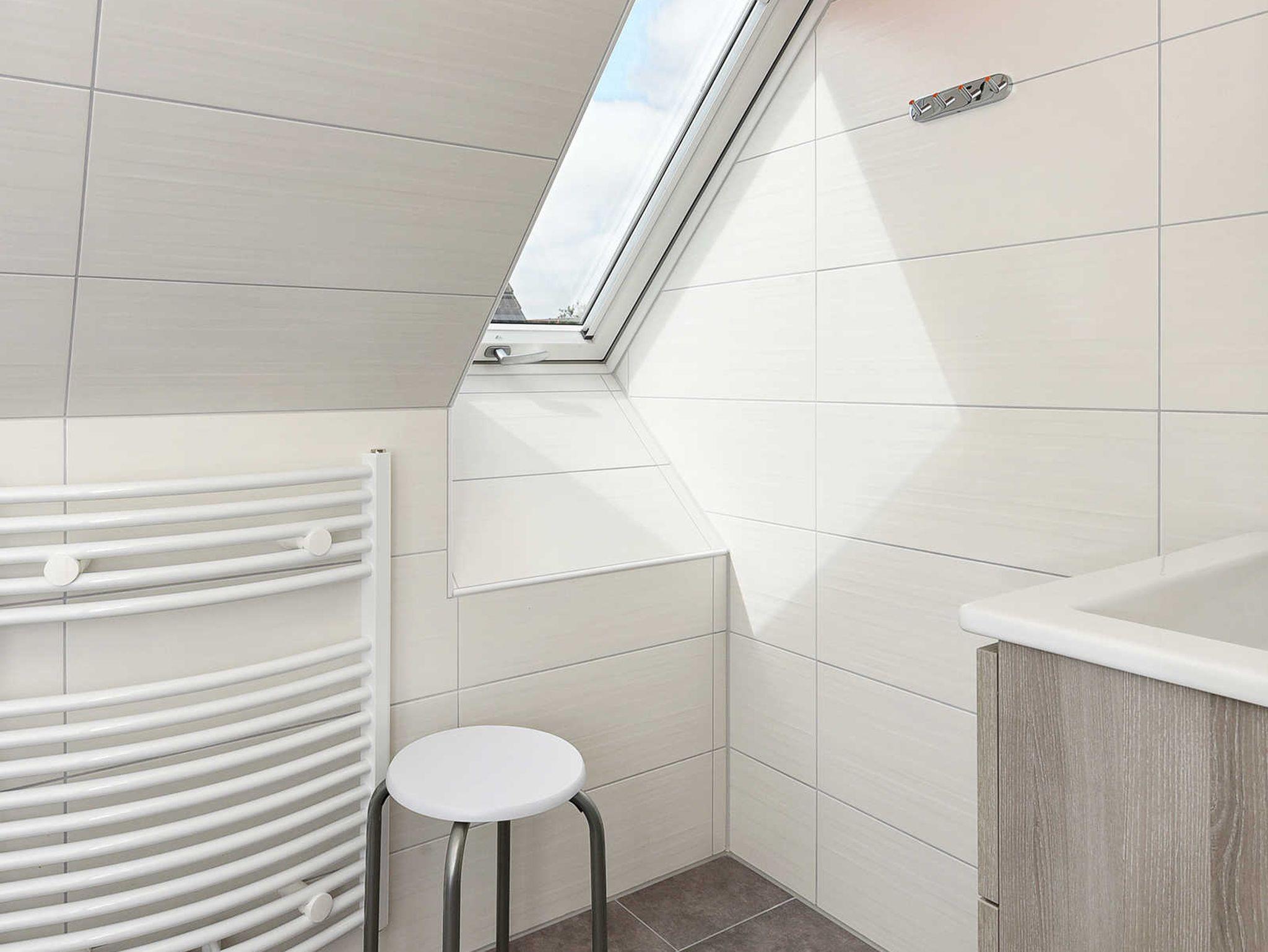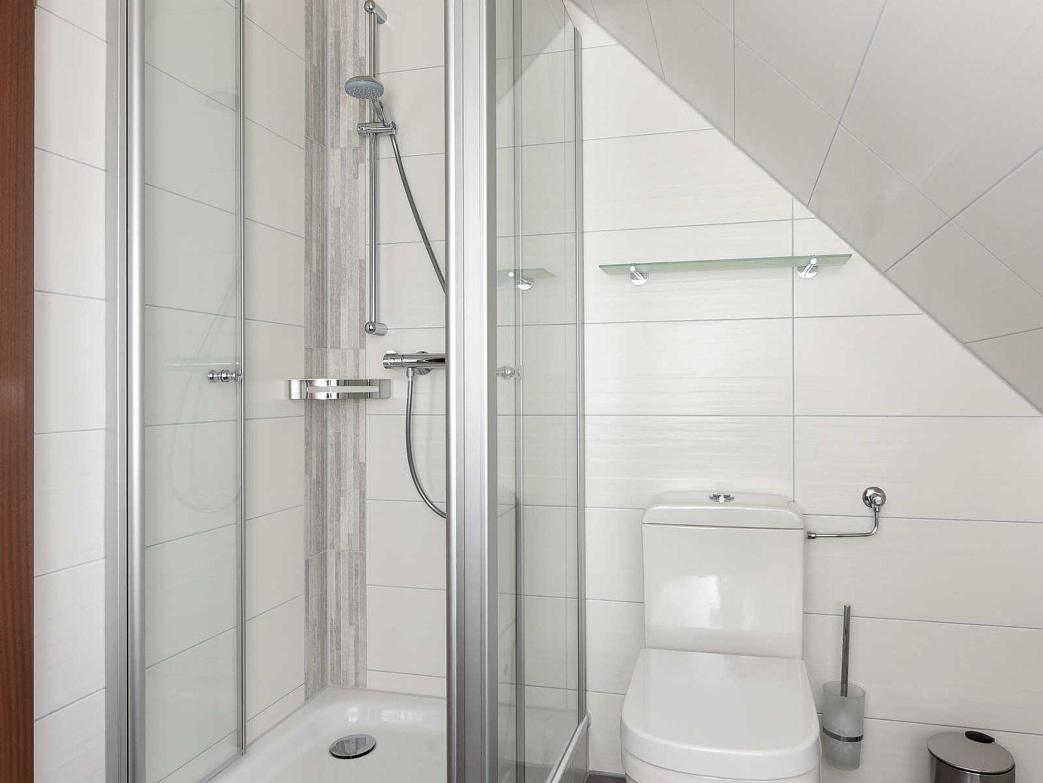 Badezimmer mit Dusche, Waschtisch und WC