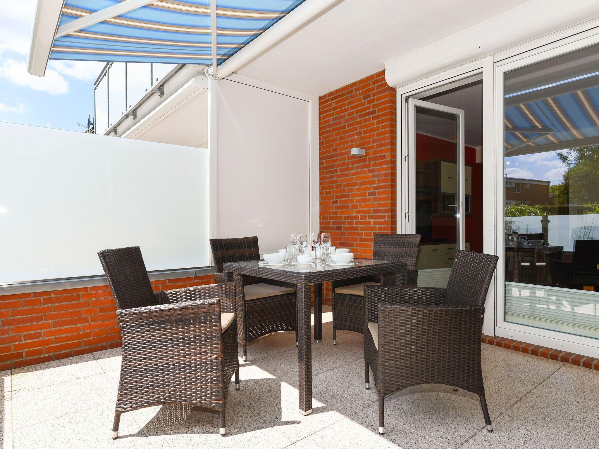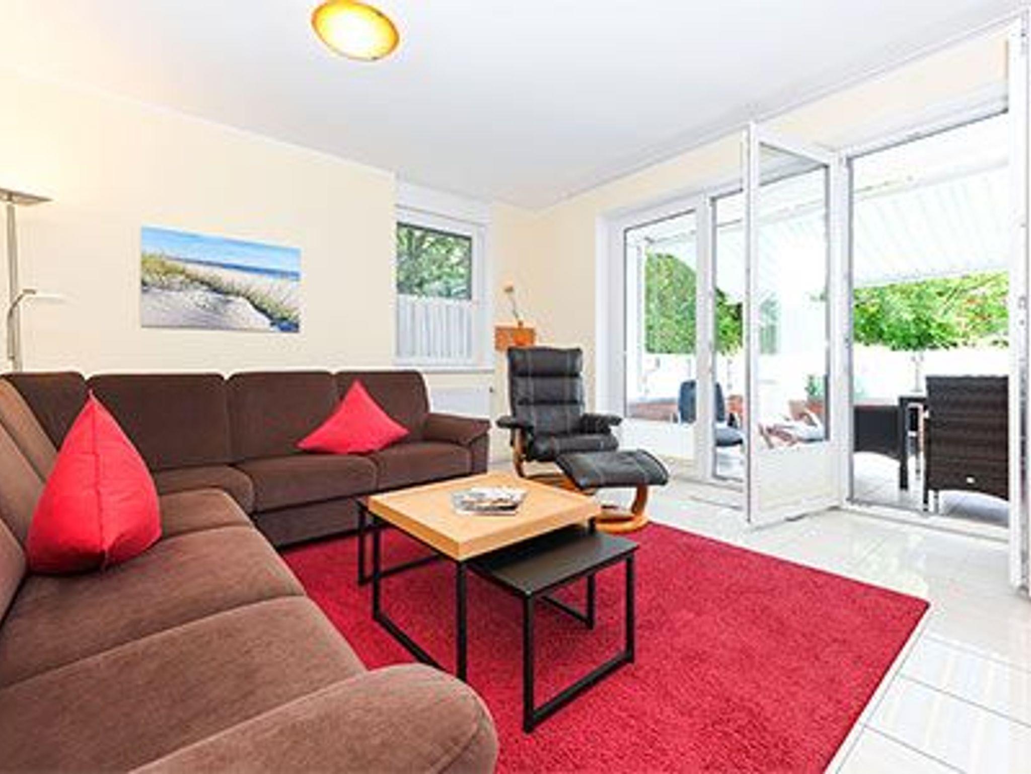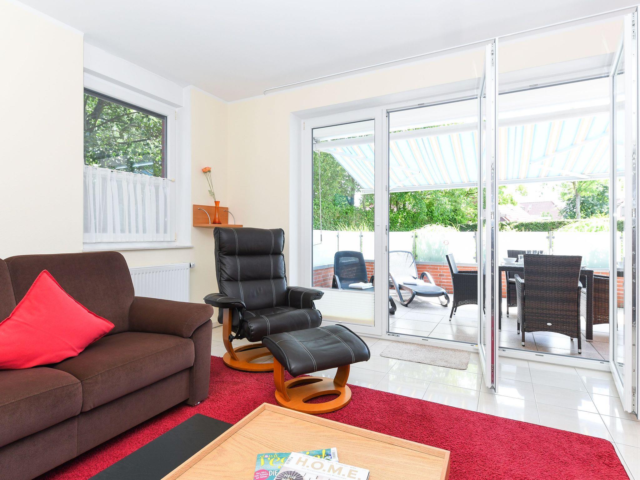 Größe ca. 80 Quadratmeter, Wohnzimmer, Küche, Schlafzimmer, zweites separates Schlafzimmer/Kinderzimmer, Badezimmer mit Dusche, Waschtisch und WC, Erdgeschoss, Terrasse, optimal für 1 bis 4 Personen.