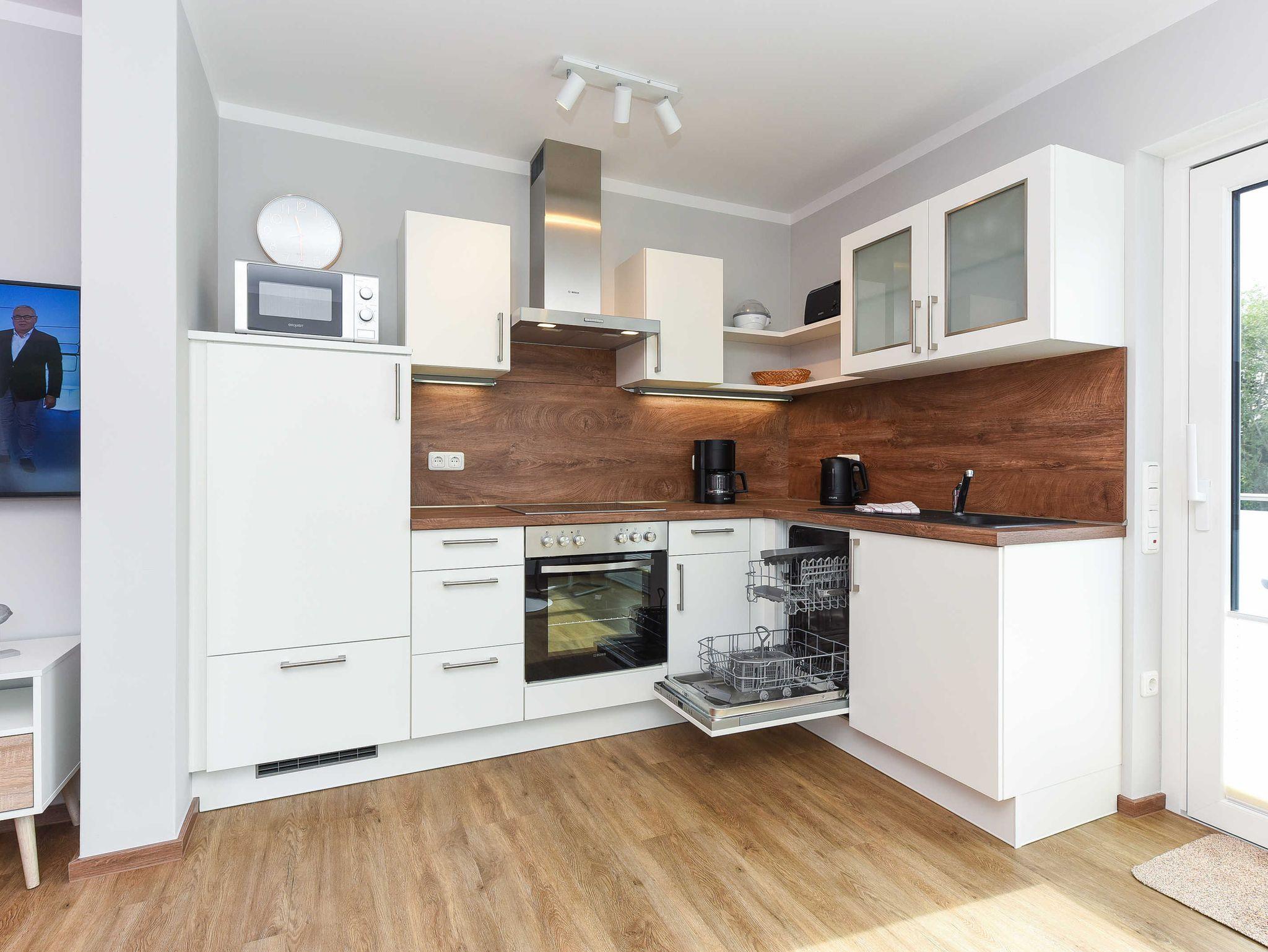 Die Ferienwohnungen im „Haus Seeperle“ sind ungefähr 80 bis ungefähr 60 Quadratmeter groß und für bis zu vier Personen ausgelegt. Sie sind sehr freundlich, hell-gemütlich, modern und sehr komfortabel gestaltet sowie hervorragend ausgerüstet. So verfügen fünf der sechs Ferienwohnungen zum Beispiel über eine eigene möblierte Terrasse oder einen eigenen möblierten Balkon. In allen Wohnungen gibt es modernen Küchen, voll ausgestattet mit allem, was Sie im Urlaub benötigen werden und im Haus stehen Ihnen Waschmaschine und Wäschetrockner zur Verfügung.