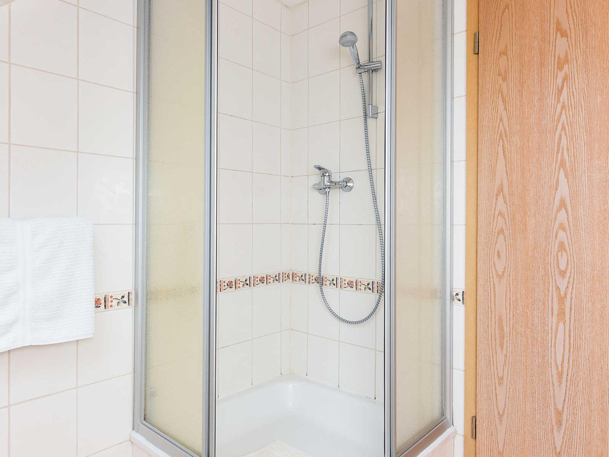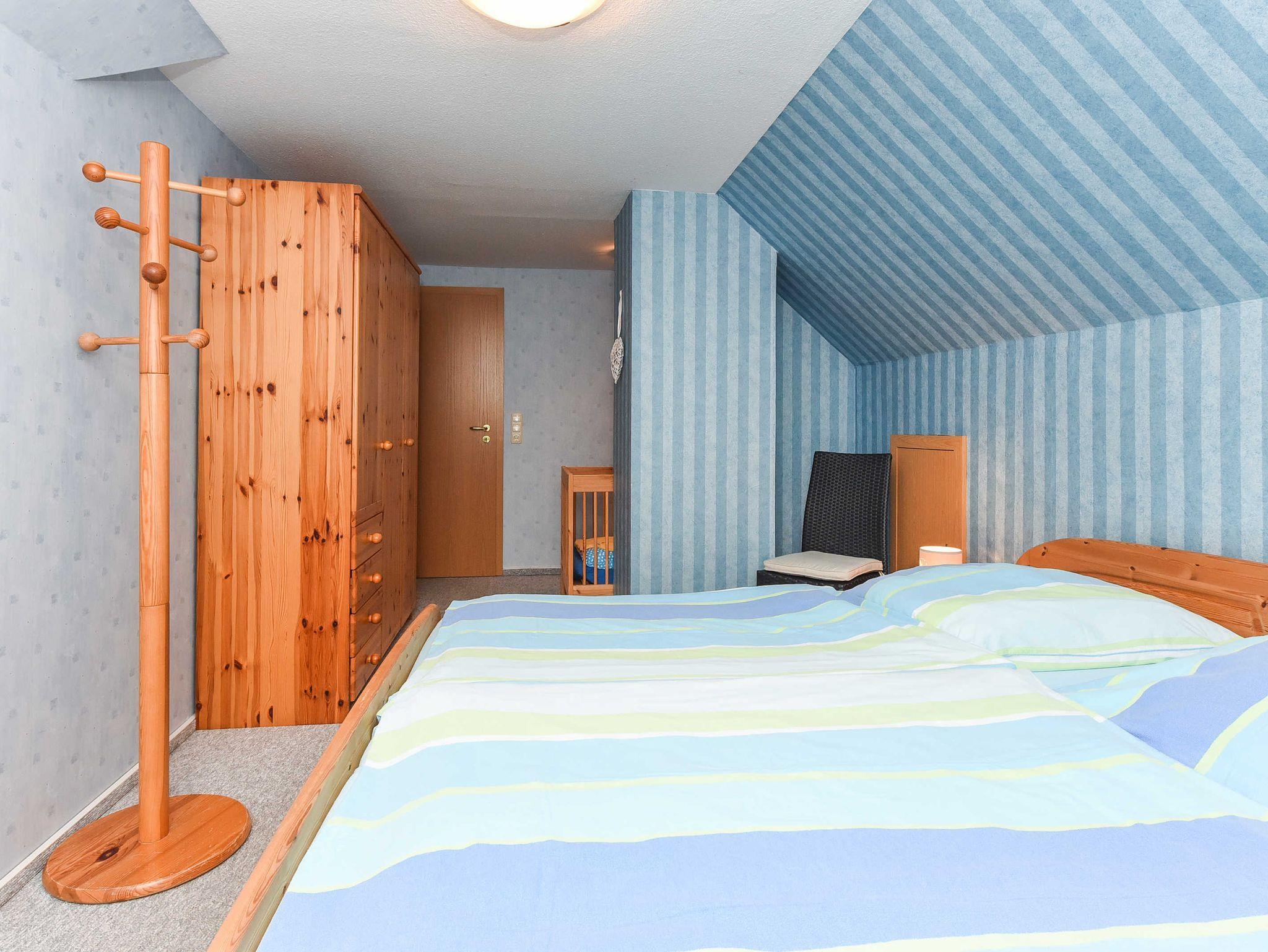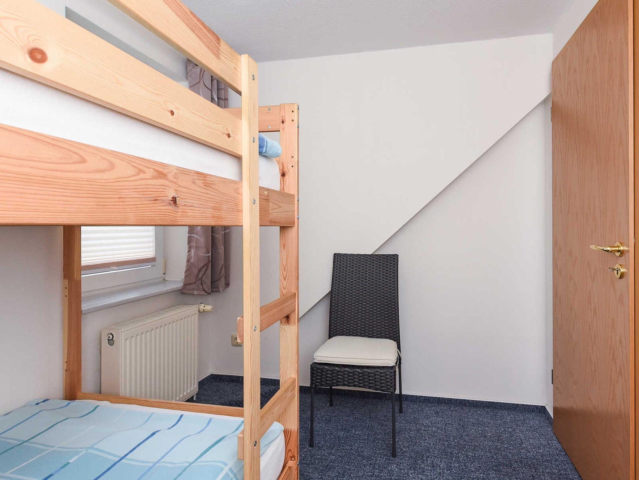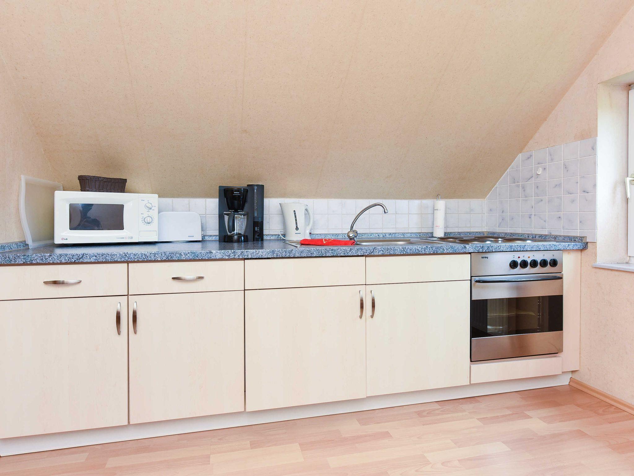 Größe ca. 45 Quadratmeter, Wohnküche mit Essgruppe und Wohnzimmer-Garnitur, Schlafzimmer, zweites separates Schlafzimmer/Kinderzimmer, Badezimmer mit Dusche, Waschtisch und WC, Obergeschoss, optimal für 2 bis 4 Personen und zusätzlich ein Kleinkind.