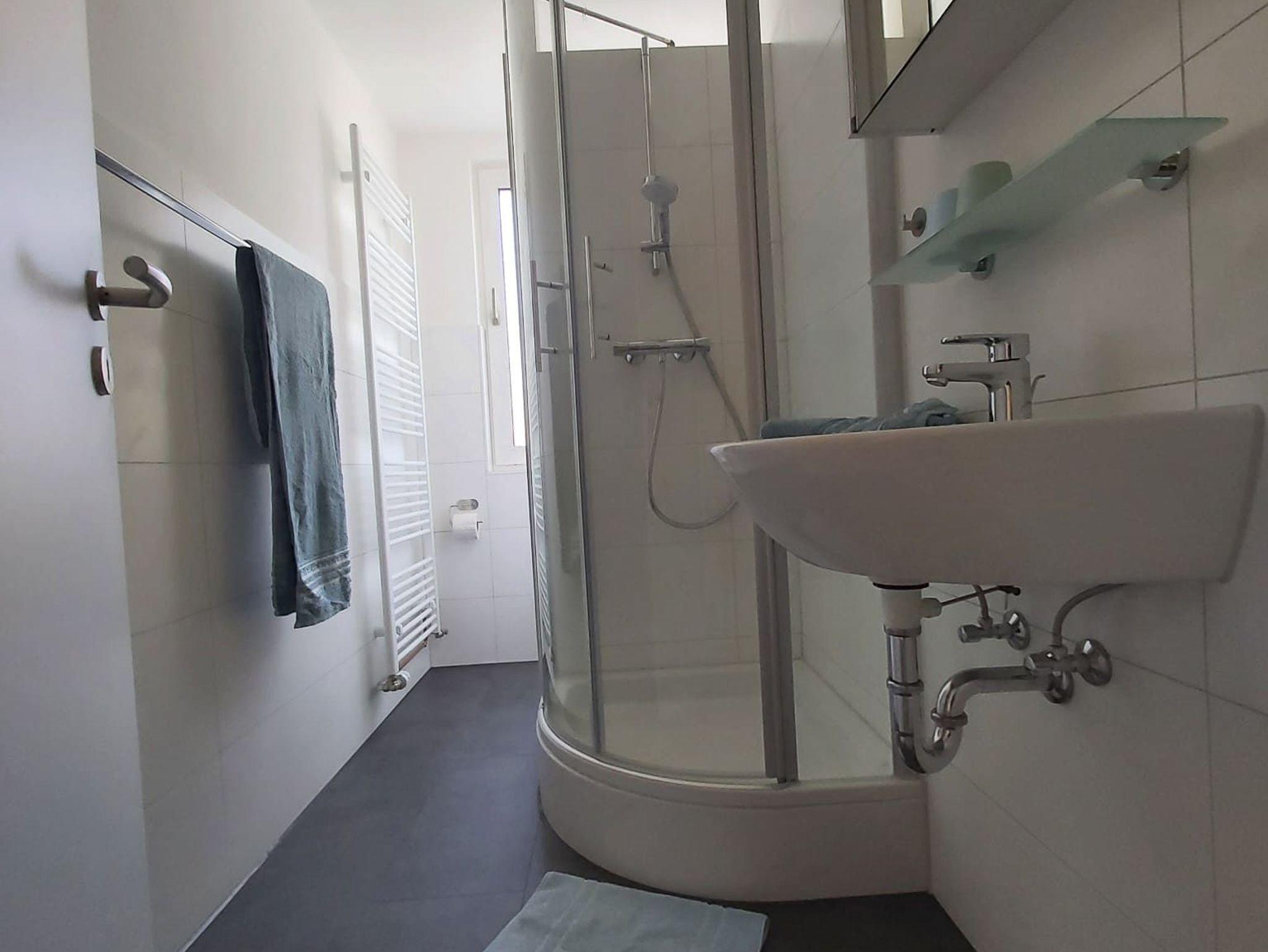 Bitte beachten Sie, das Badezimmer liegt auf der gegenüberliegenden Seite des Hausflurs.