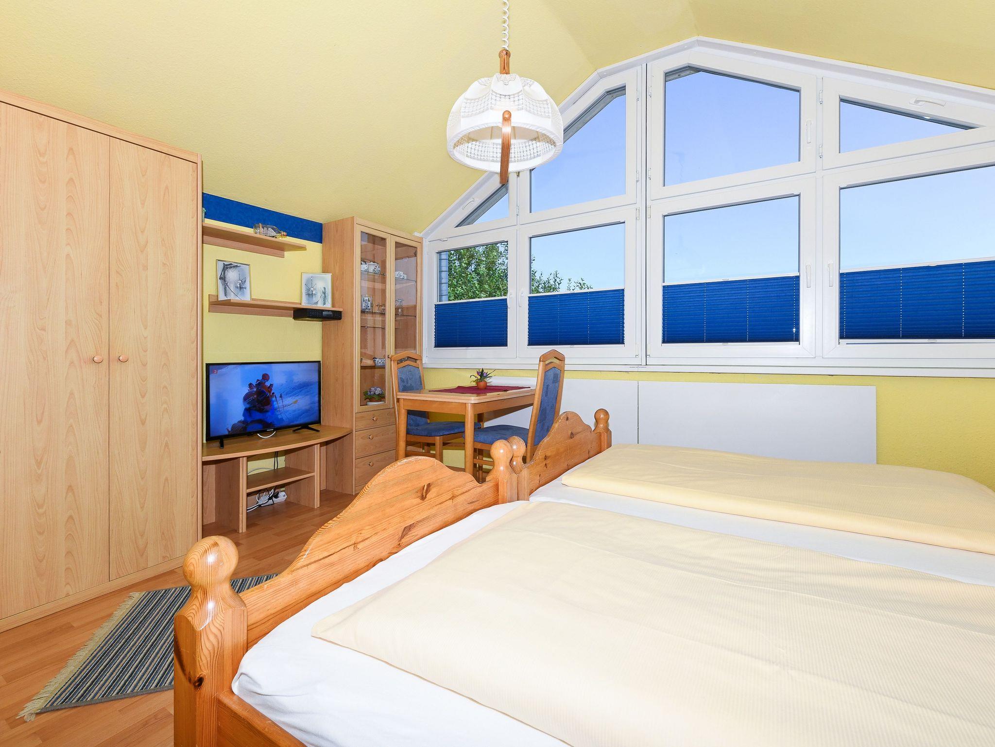 Das Schlafzimmer mit Wohnkomfort liegt mit einem separaten Eingang gegenüber des Flurs.