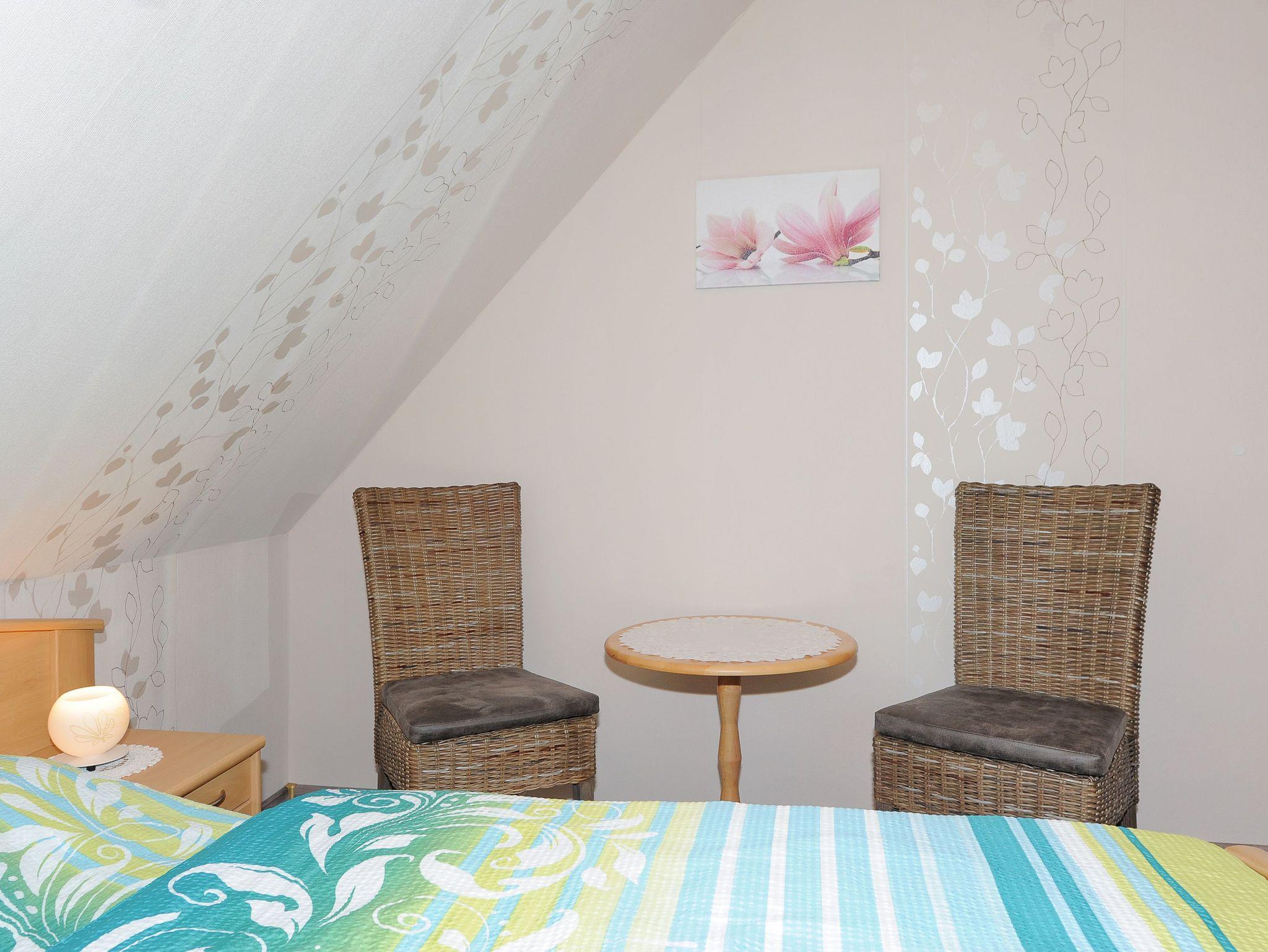 Die Ferienwohnung 3 befindet sich im Obergeschoss und verfügt über einen separaten Eingang, ein geräumiges Bad mit Dusche und WC, eine moderne Kochniesche, 2 große Schlafzimmer eins mit Kinderbett, Wohn-/Ess-Zimmer mit Zugang zum großen sonnigen Balkon. Für Ihre Ausflüge steht Ihnen kostenfrei ein Bollerwagen zur Verfügung.