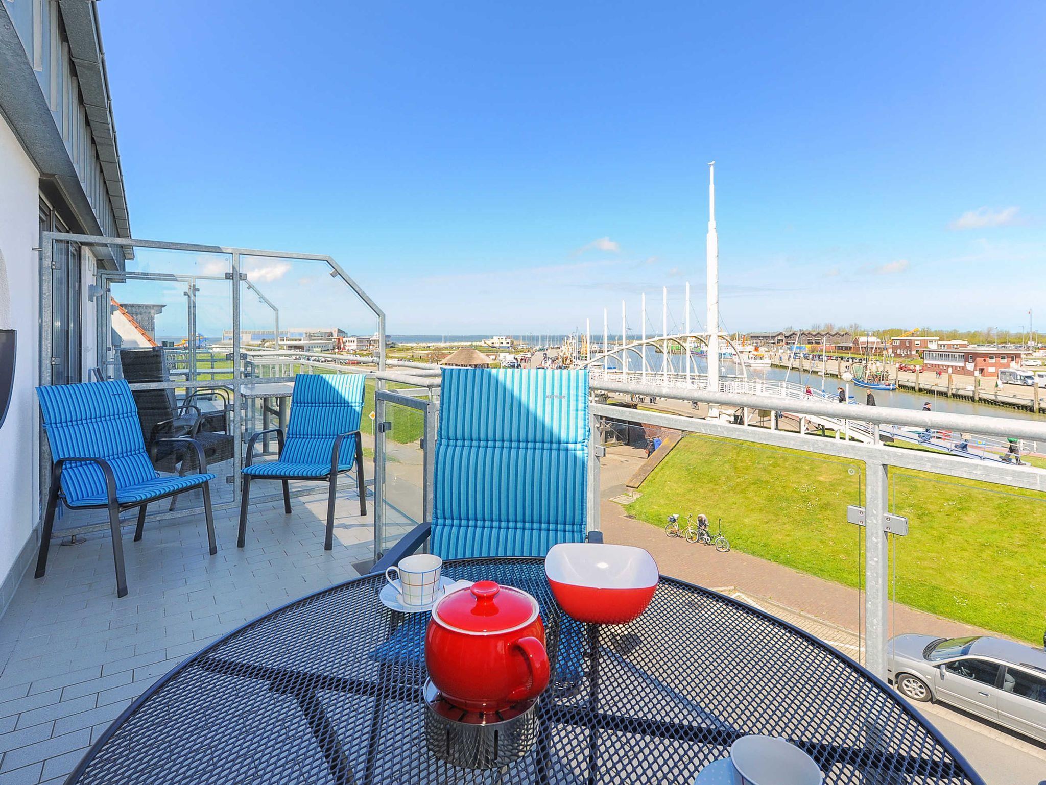 Vom Balkon aus haben Sie einen herrlichen Blick auf die Nordsee, Inseln, Strand und Hafen. Das Badezimmer verfügt über ein Fenster.
