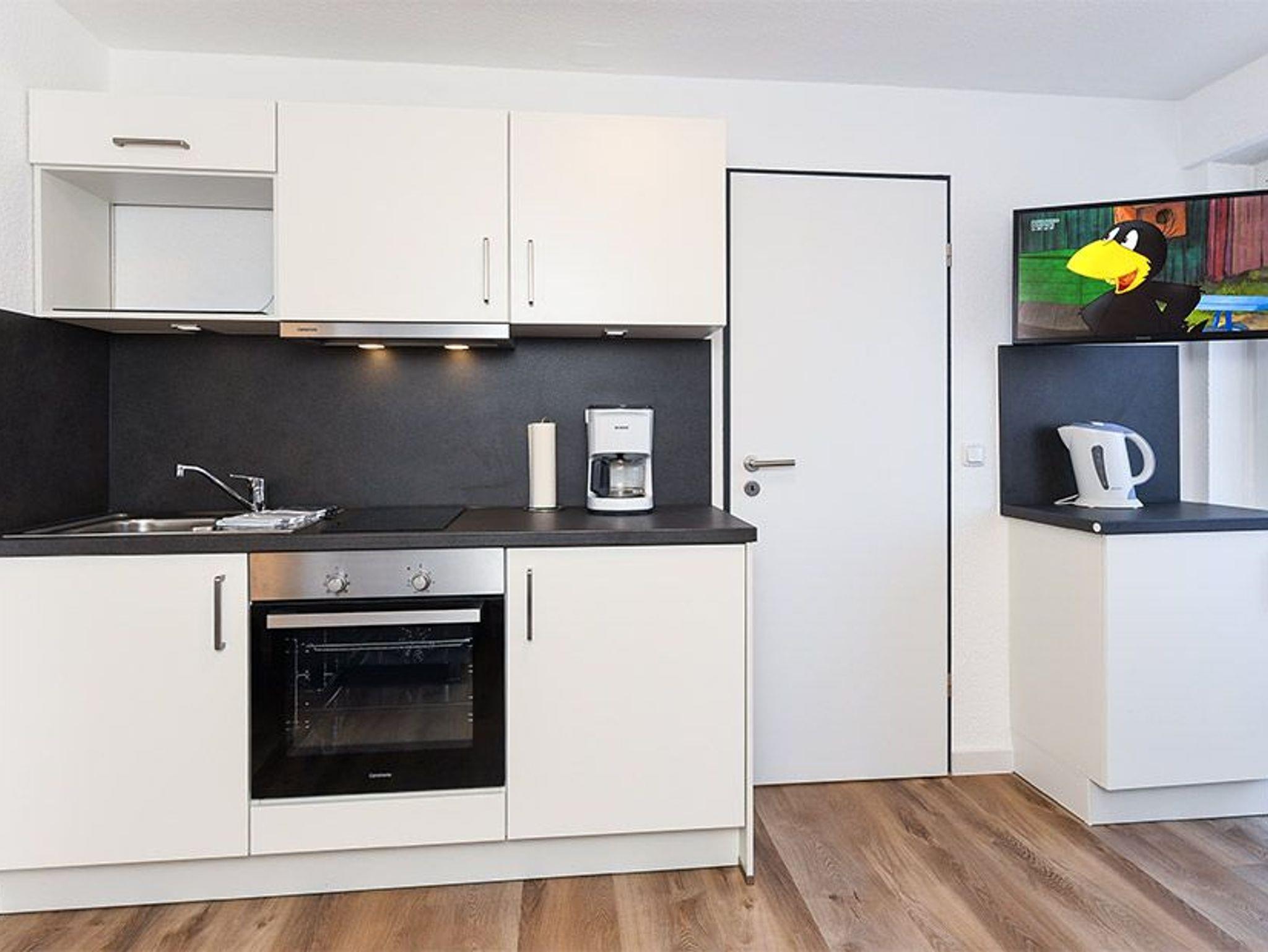 Größe ca. 40 Quadratmeter, Wohnraum mit integrierter Küche, Schlafzimmer, zweites separates, Schlafzimmer/Kinderzimmer, Badezimmer mit Dusche, Waschtisch und WC, Obergeschoss, Balkon, Internetzugang über WLAN möglich, optimal für 2 bis 3 Personen.