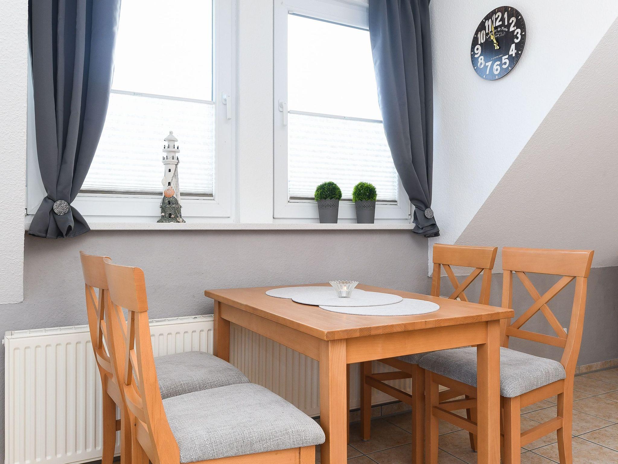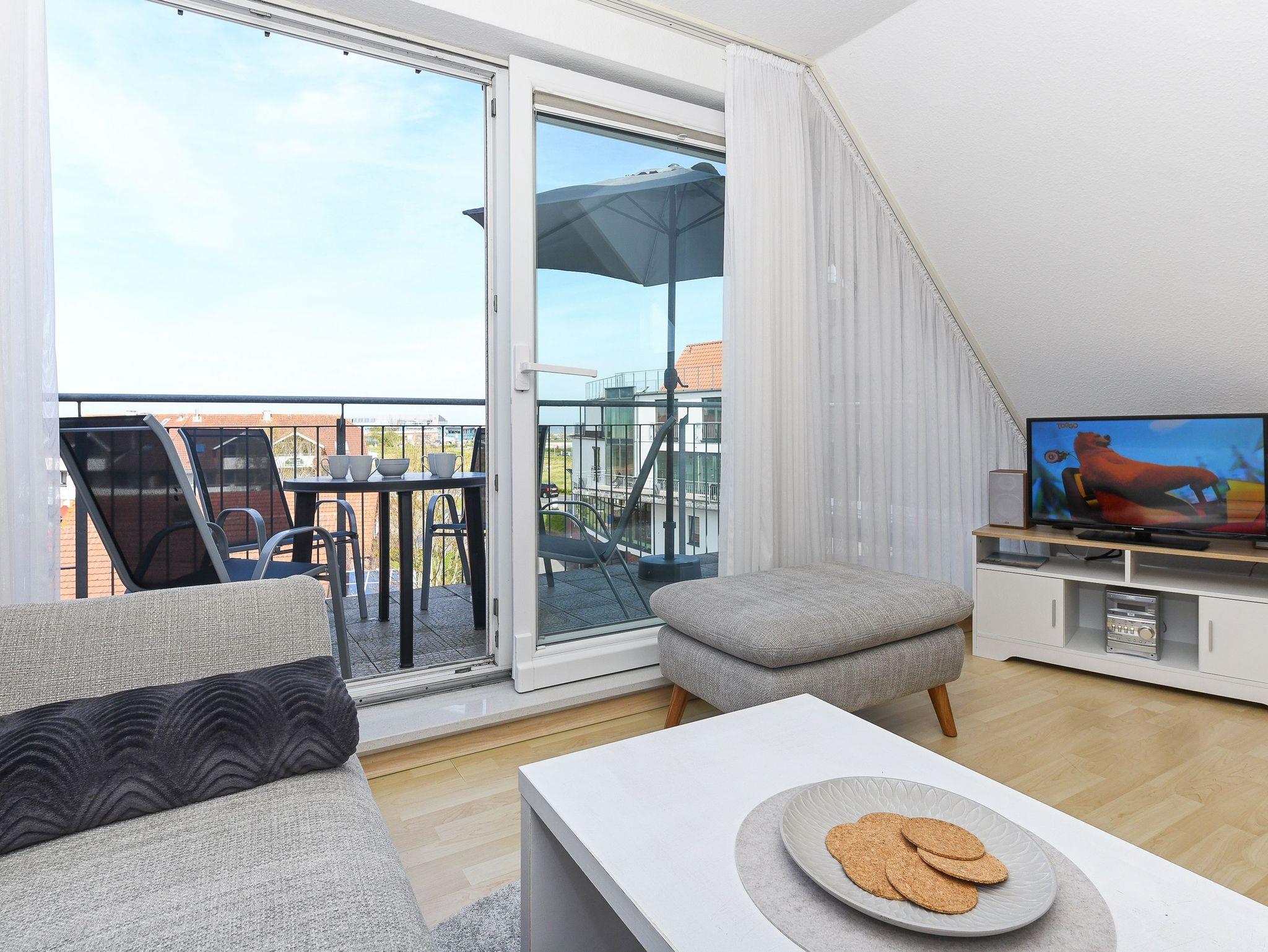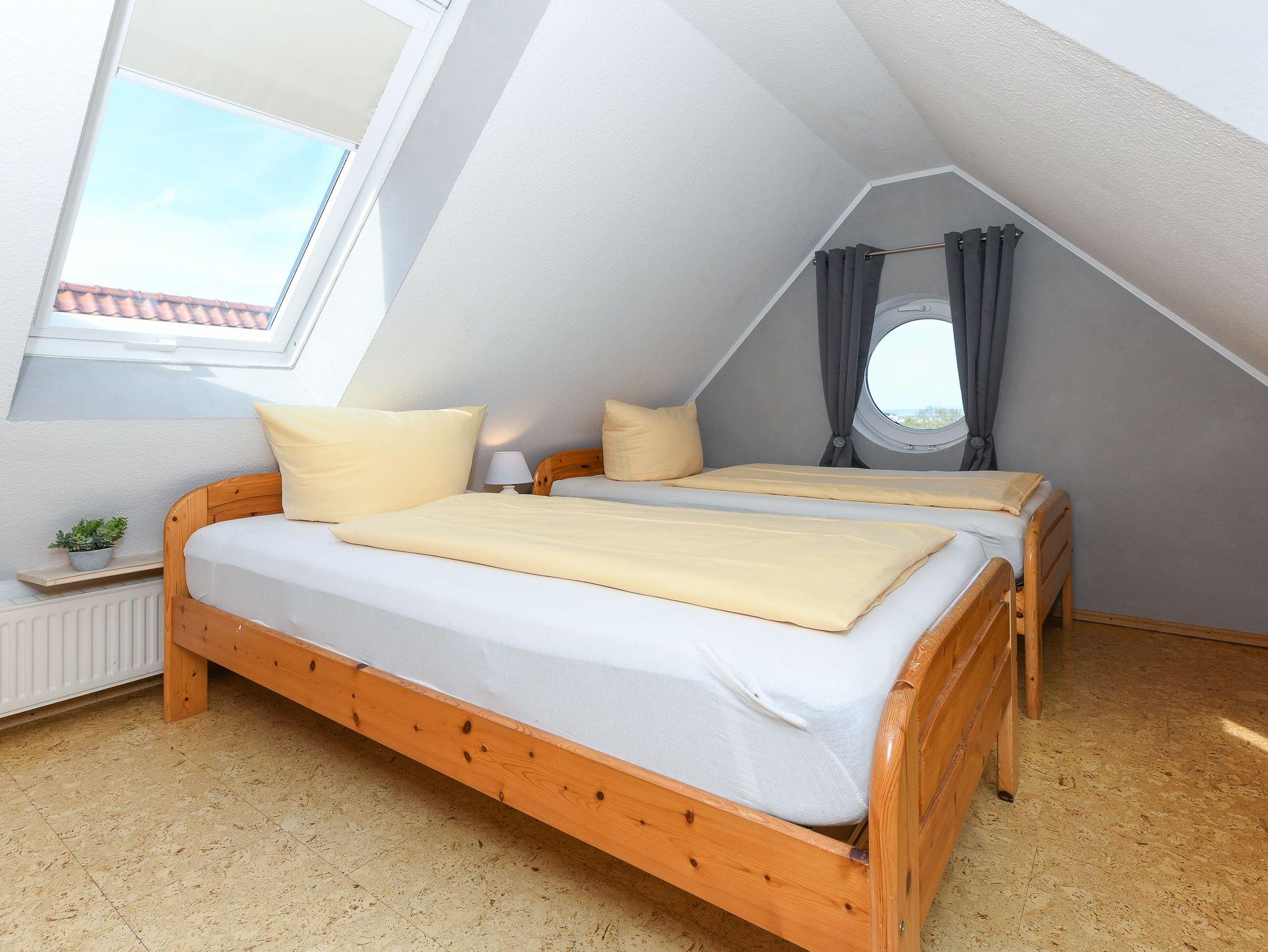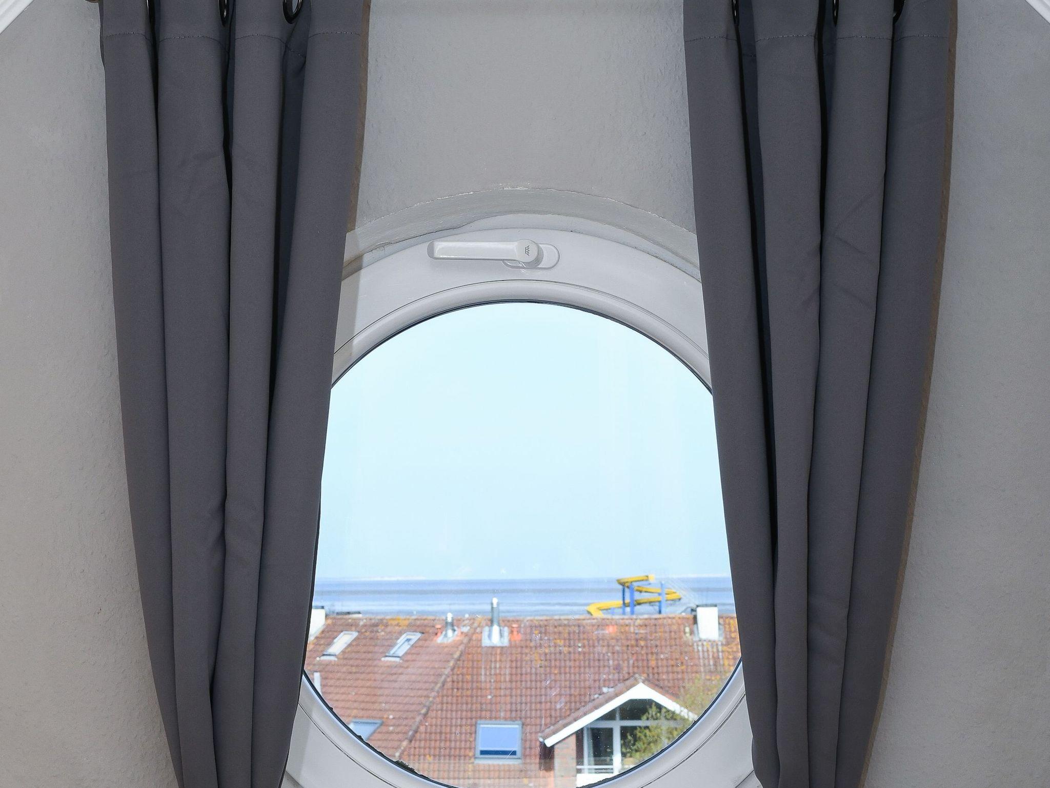 Das zweite Schlafzimmer ist ohne Treppe erreichbar. Das erste Schlafzimmer ist über eine Treppe zu erreichen. Vom Balkon aus haben Sie einen herrlichen Blick auf den Bensersieler Hafen, die Nordsee und die ostfriesischen Inseln, z. B. auf „Langeoog.