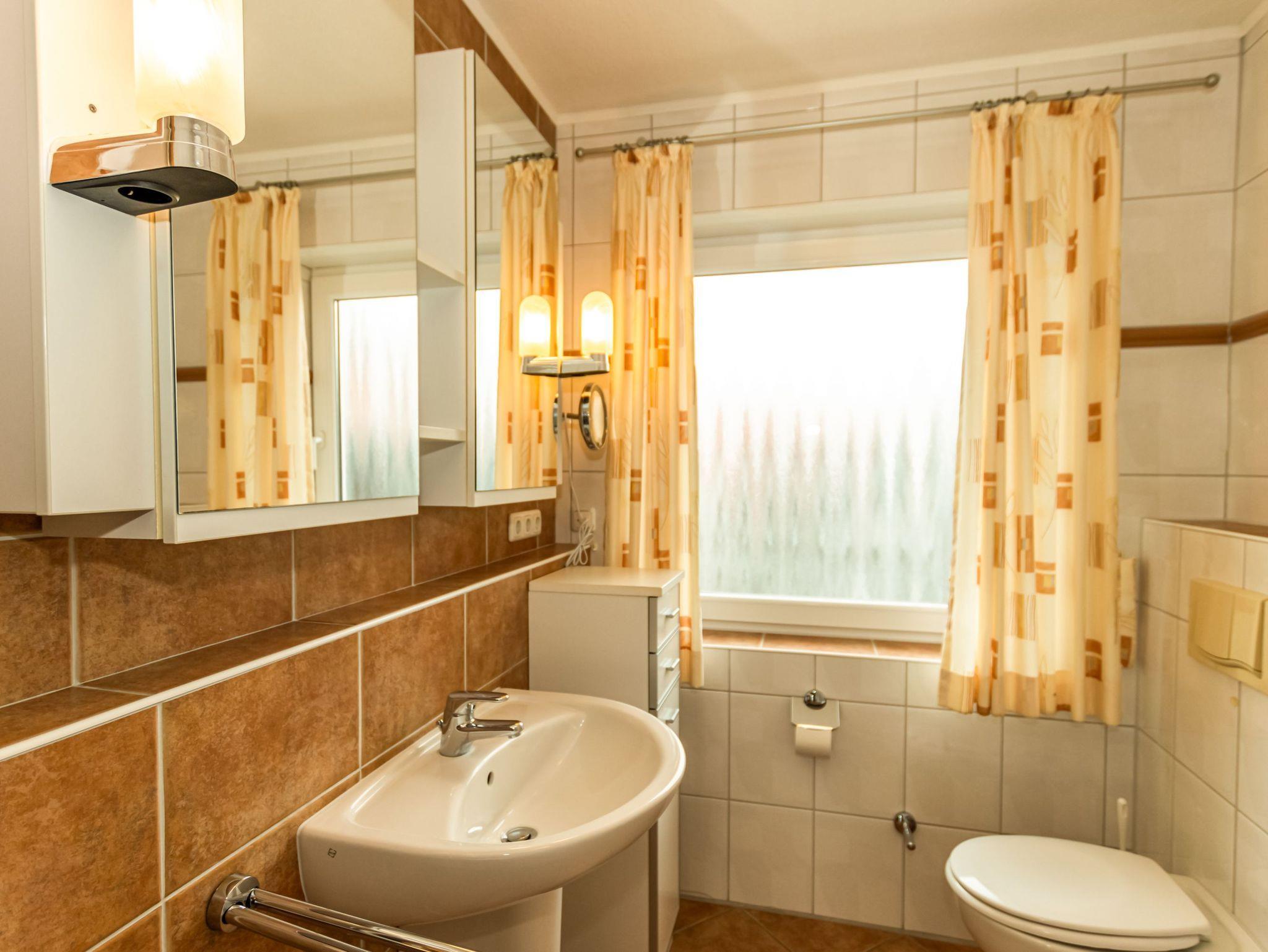 - Badezimmer mit Dusche, Waschtisch und WC