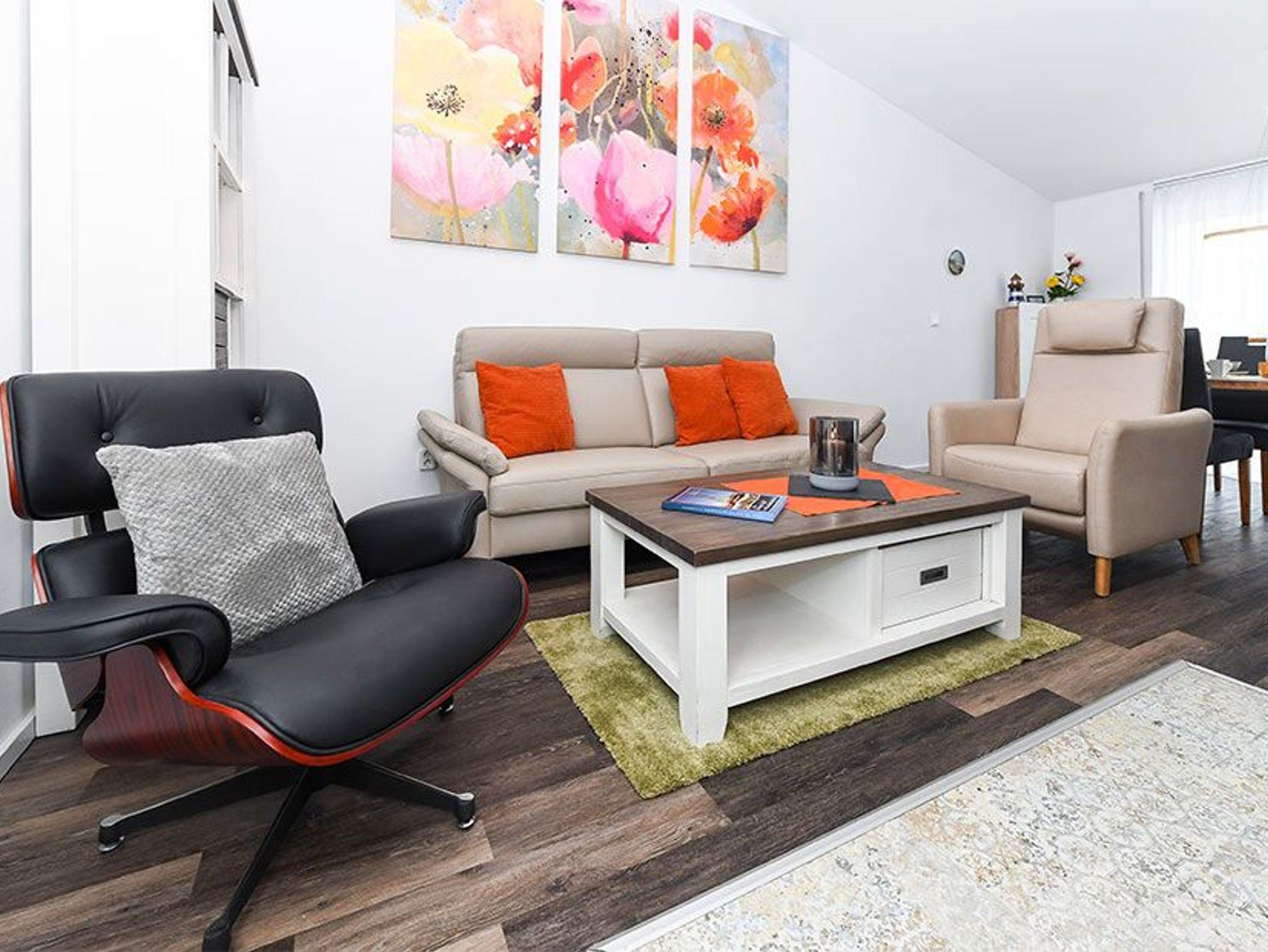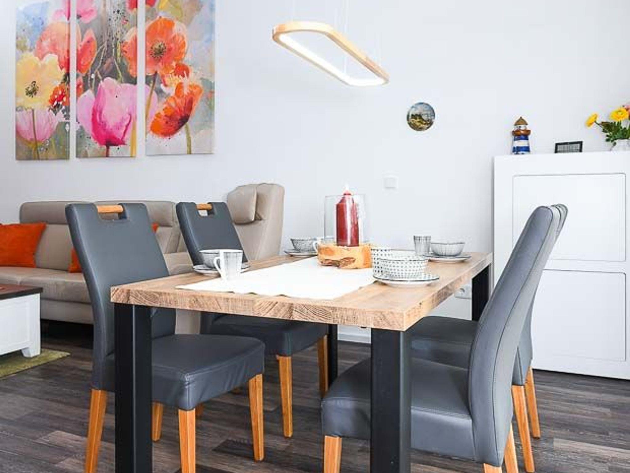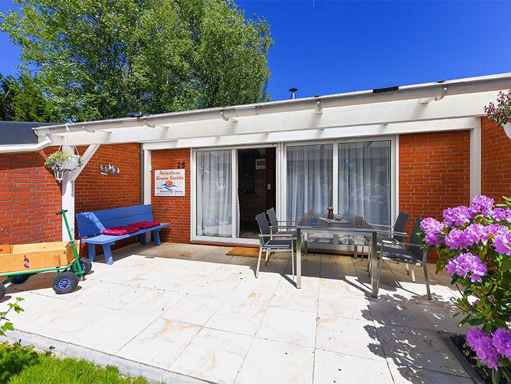 Das Ferienhaus „Krosse Krabbe“ ist hell und freundlich gestaltet, komfortabel und modern-gemütlich eingerichtet sowie sehr gut ausgestattet. Es verfügt zum Beispiel über eine Küche mit Geschirrspülmaschine und Mikrowelle, moderne Boxspringbetten in den Schlafzimmern, einen Hauswirtschaftsraum mit Waschmaschine und Wäschetrockner sowie über eine große geschützte Terrasse am Wohnzimmer mit direktem Gartenzugang.