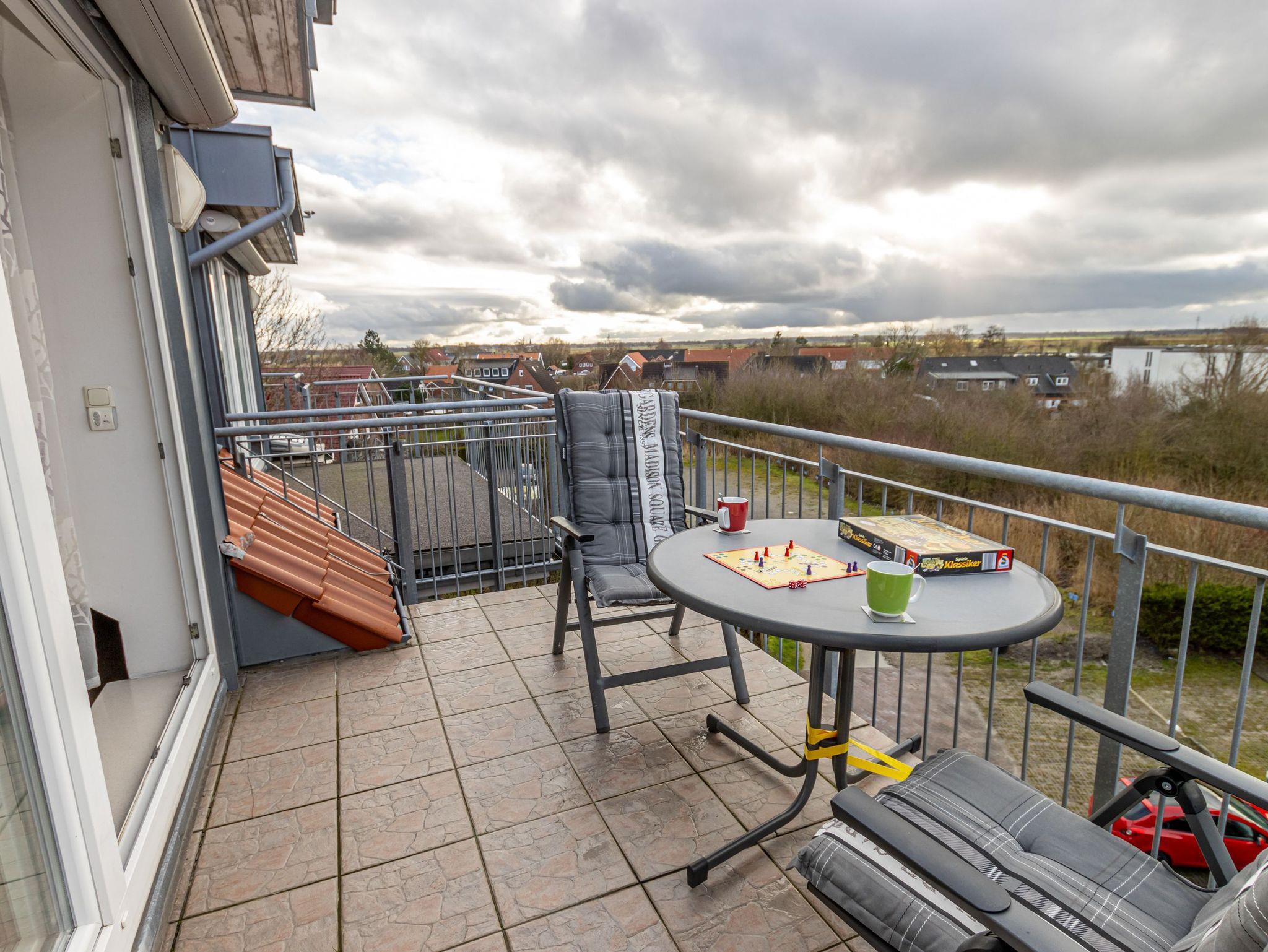 Die Ferienwohnung ''Inselpanorama'' befindet sich im Nordseegartenpark in Bensersiel, direkt an der Küste.