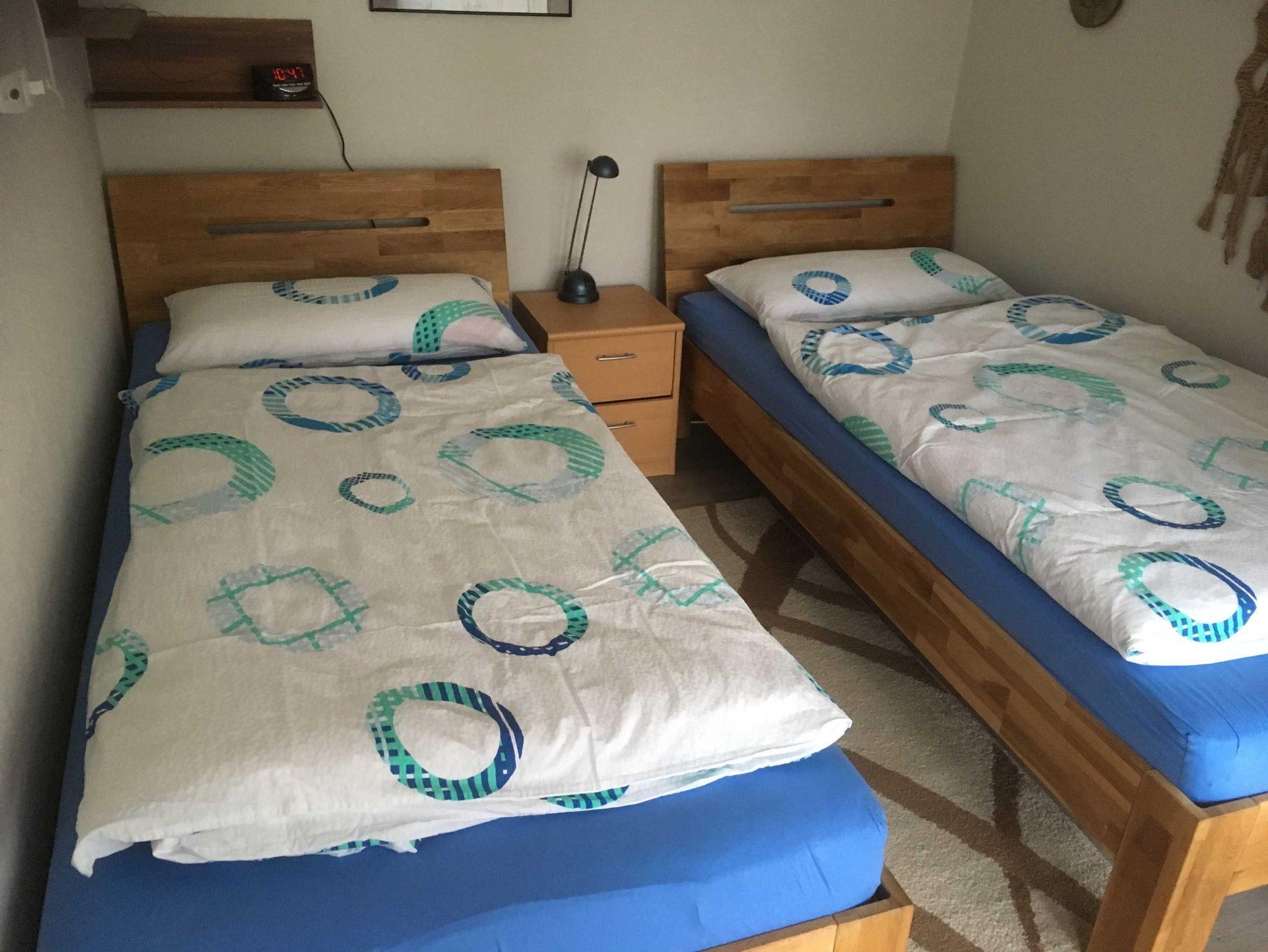 Die Ferienwohnung befindet sich im Erdgeschoss (links). Sie ist voll ausgestattet, verfügt über Wohnraum mit Küche und Minibackofen, Schlafraum seit 2015 mit zwei Einzelbetten von 90 x 200cm, Zugang zur Terrasse und Bad mit Dusche/WC. Gartenmöbel laden zum Ausruhen ein. Sie werden sich wohlfühlen und gut erholen können.