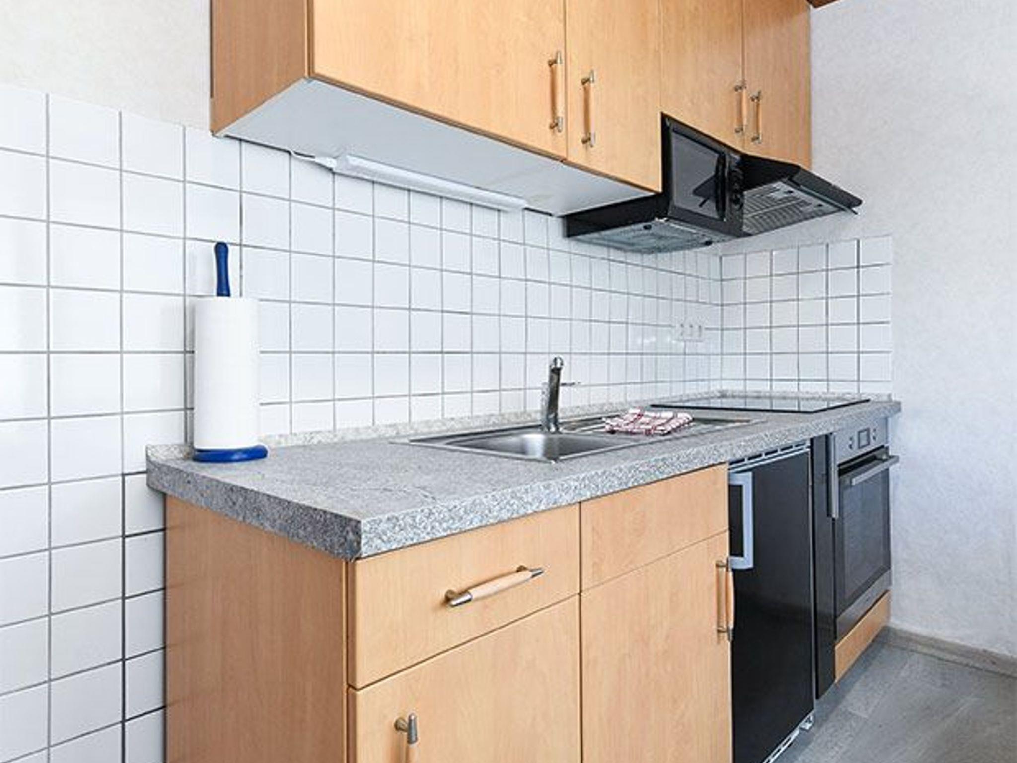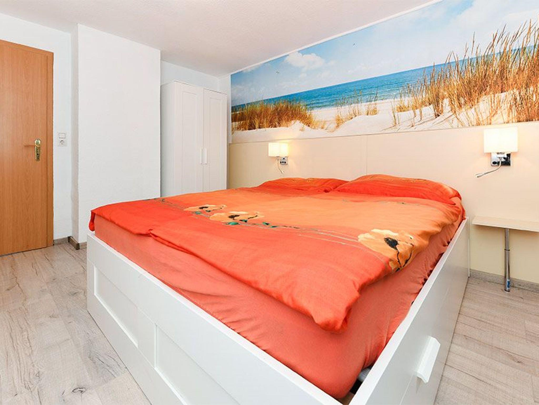 Das Bett im Schlafzimmer hat die Größe 160 (Breite) x 200 cm (Länge). Im Wohn- und Schlafraum befindet sich ein zusätzliches Schlafsofa.