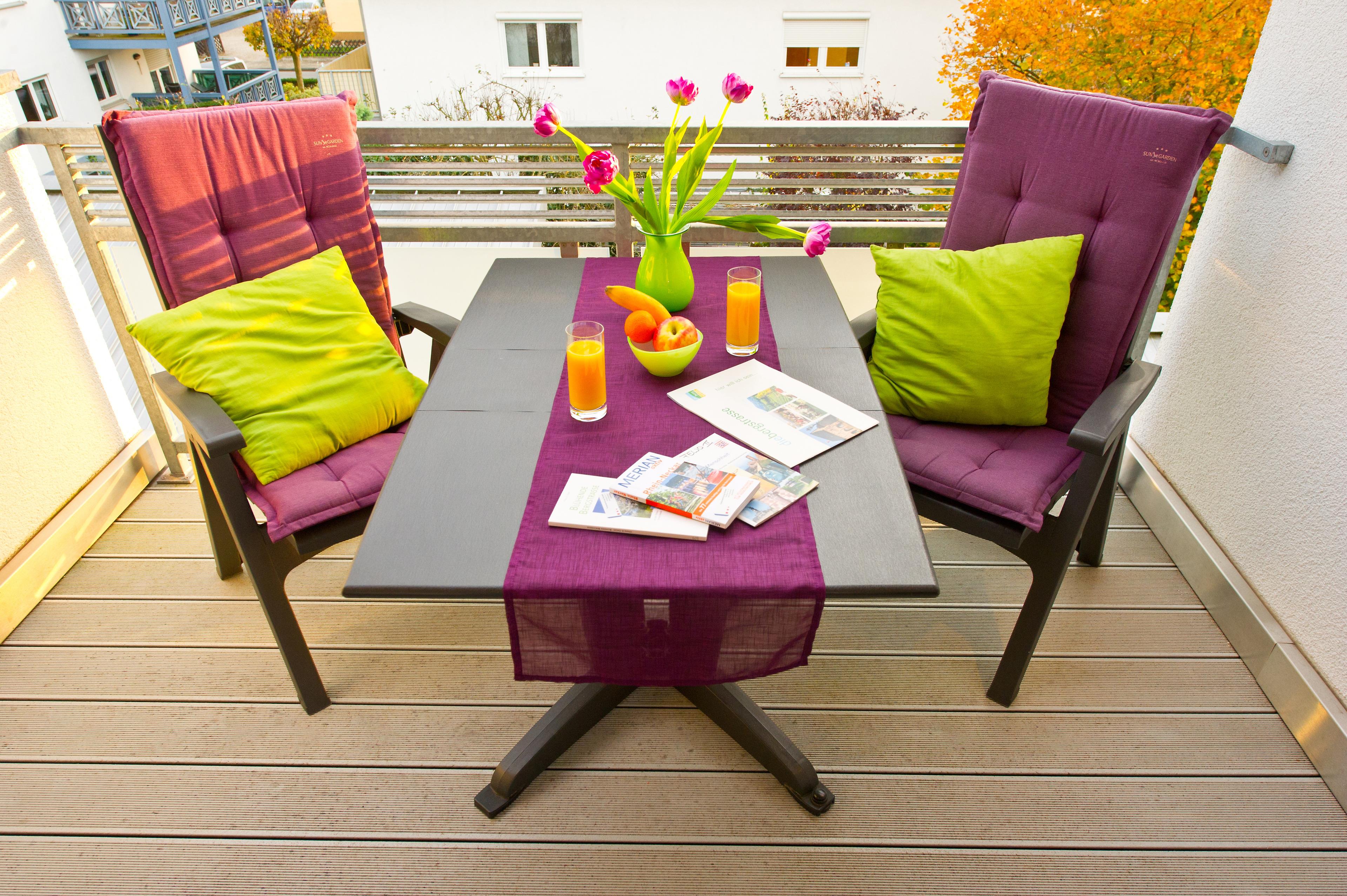 Außenbereich: Dachbalkon mit 1 Tisch und 3 Stühlen