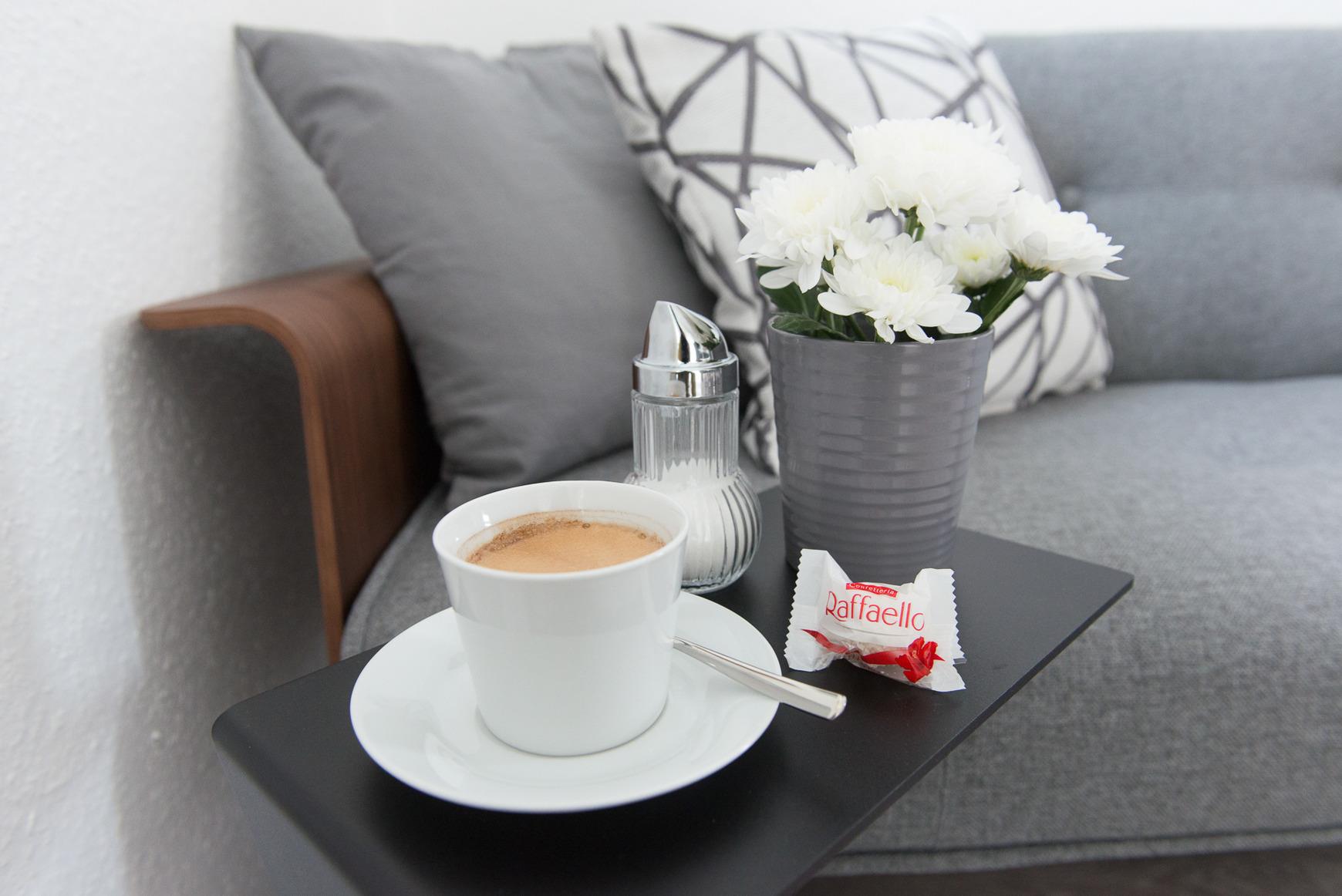 Kühlschrank mit Gefrierfach, Geschirrspülmaschine, 4-Platten-Zerankochfeld, Backofen, Kaffeemaschine, Wasserkocher, Toaster, Mikrowelle auf Wunsch