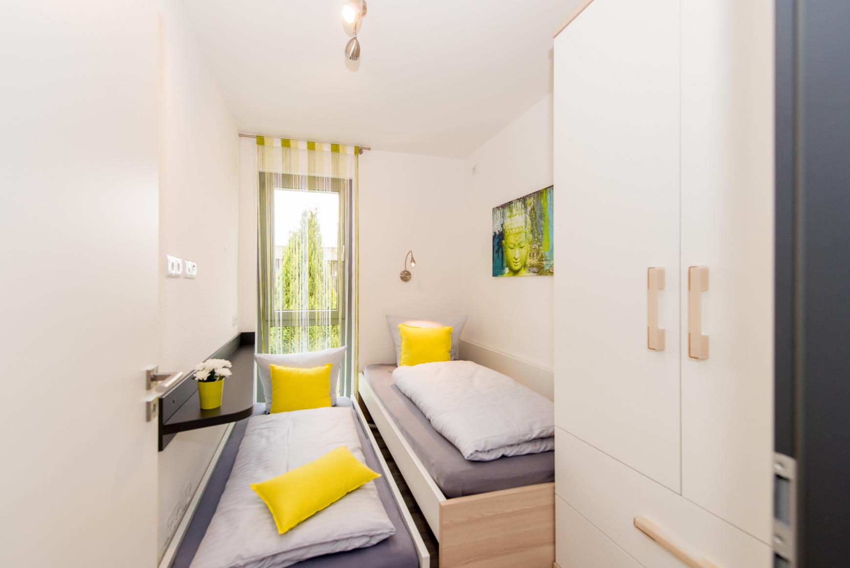 Schlafen 2: Einzelzimmer für 1-2 Personen mit Einzelbett (1x2m) + Ausziehbett (0,90x2m)