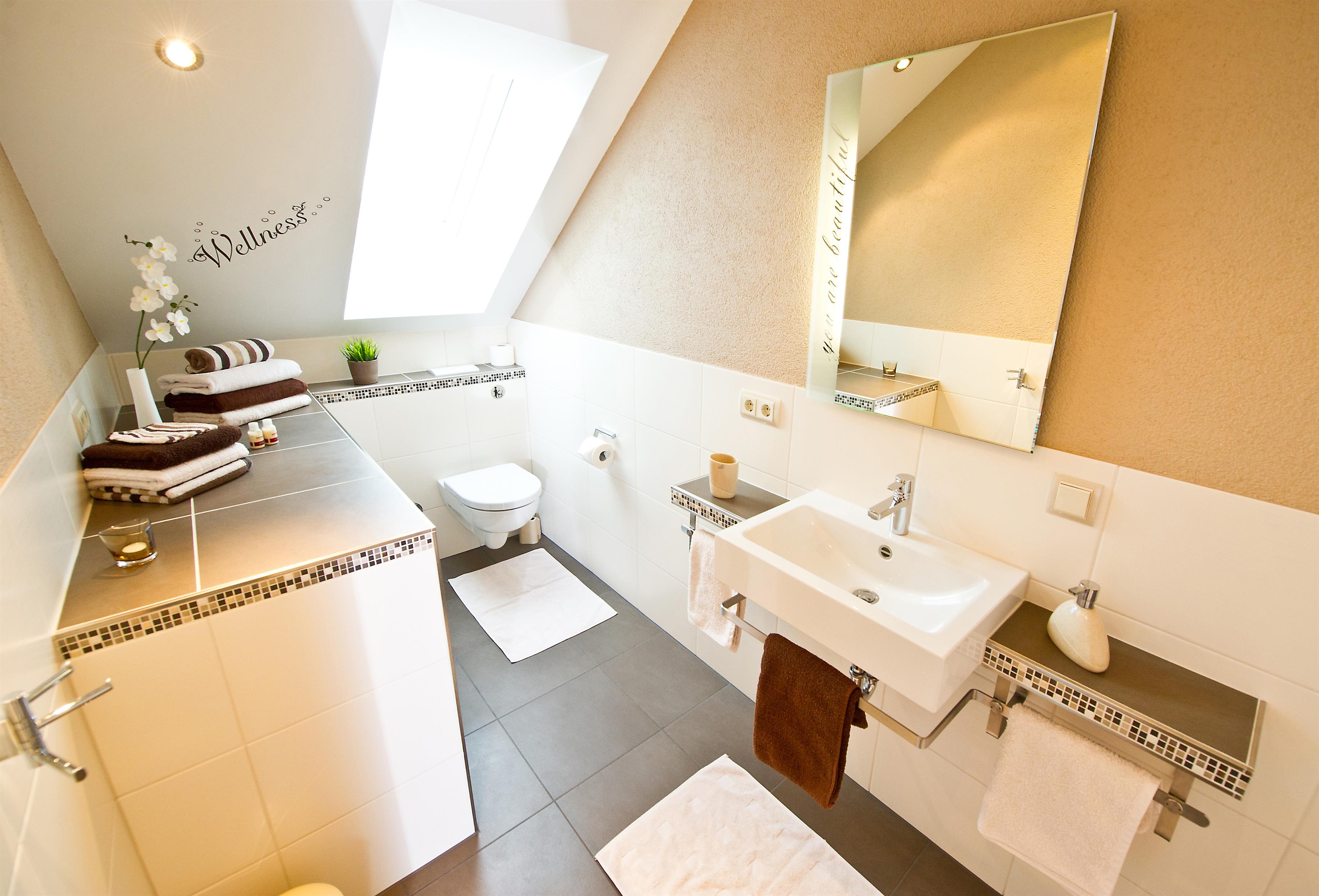 1 x Komfort-Bad mit Badewanne, Waschbecken und WC & Komfort-Ausstattung