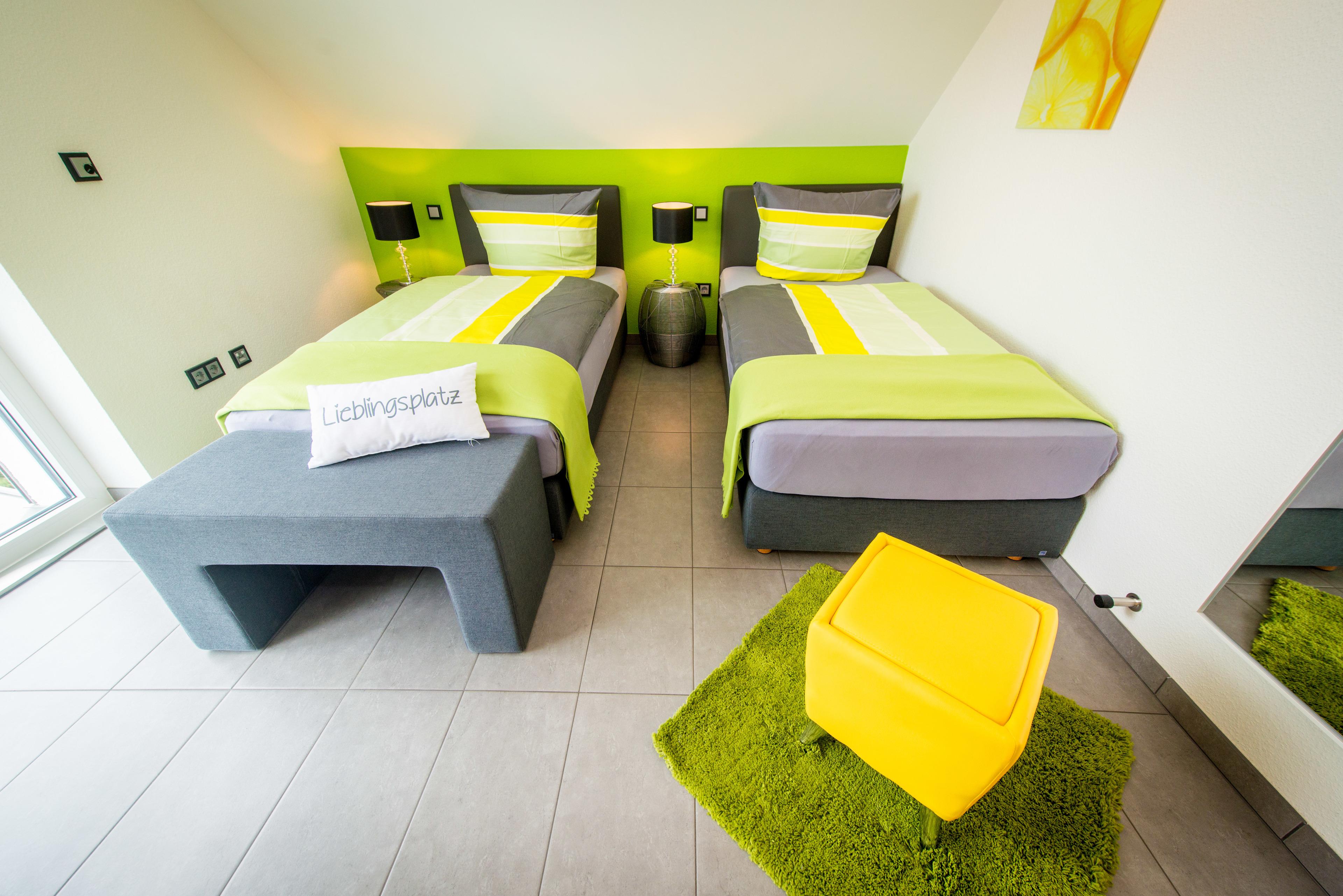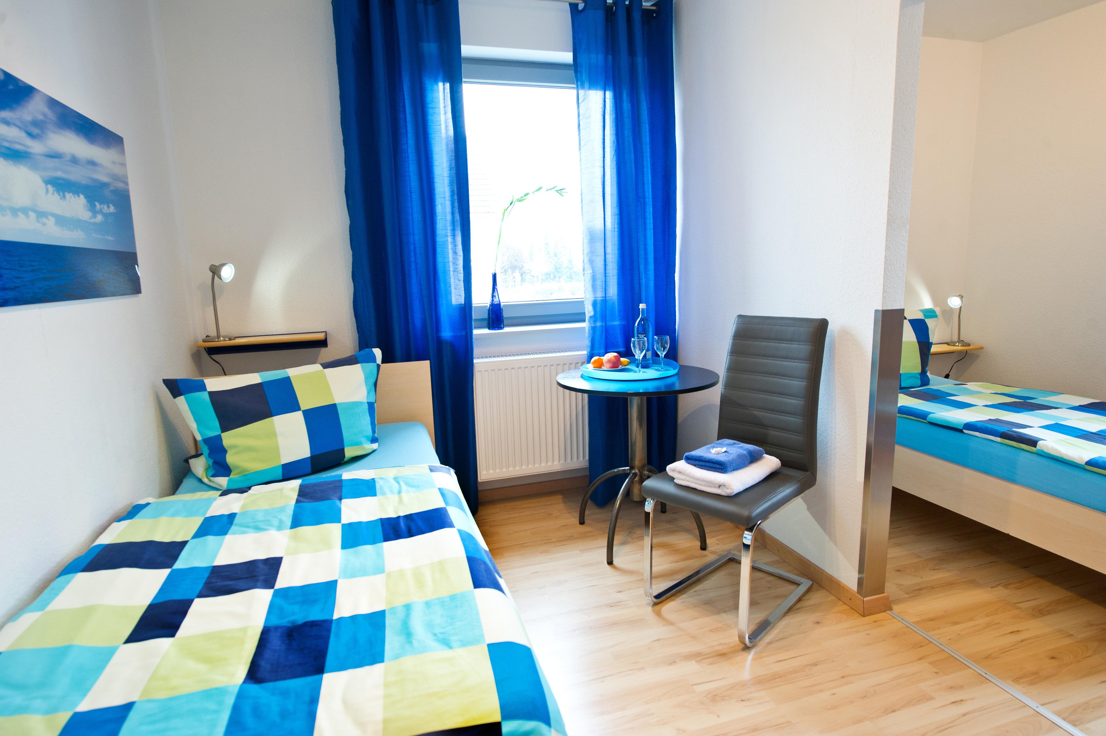 Schlafen 2: Zweibett-Zimmer mit 2 getrennten Einzelbetten (je 1x2m).