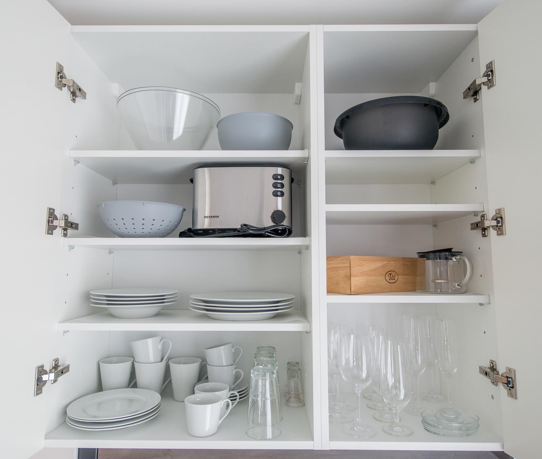 Kühlschrank, Duo-Kochfeld, Wasserkocher, Toaster, Mikrowelle auf Wunsch