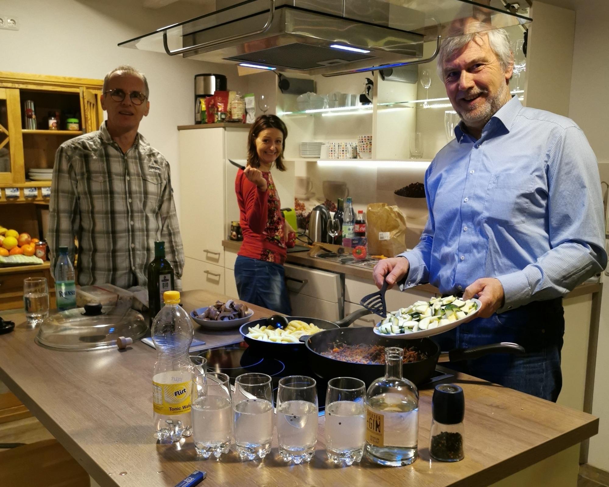 Küchen-Extras: Teestation, Spül- und Reinigungsmittelzubehör, Gewürze, Zusatz-Geschirr für Gruppen.
