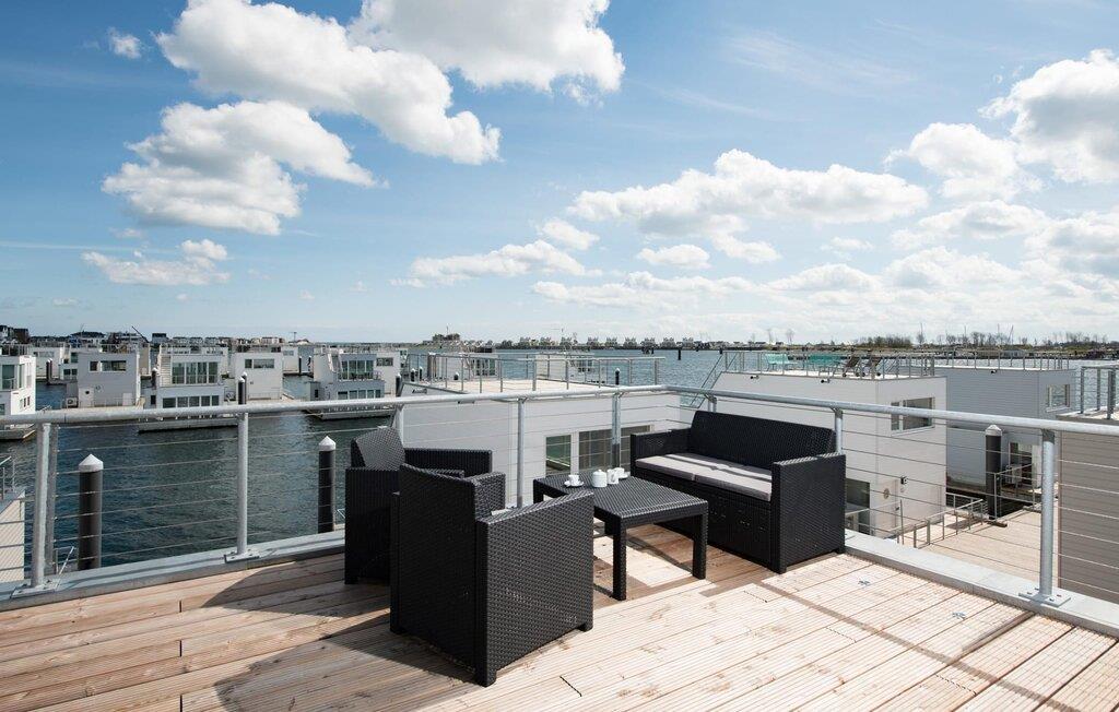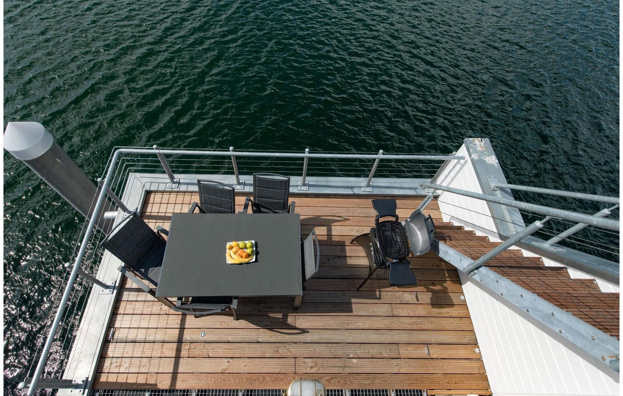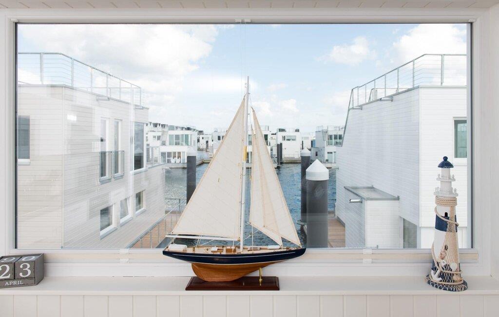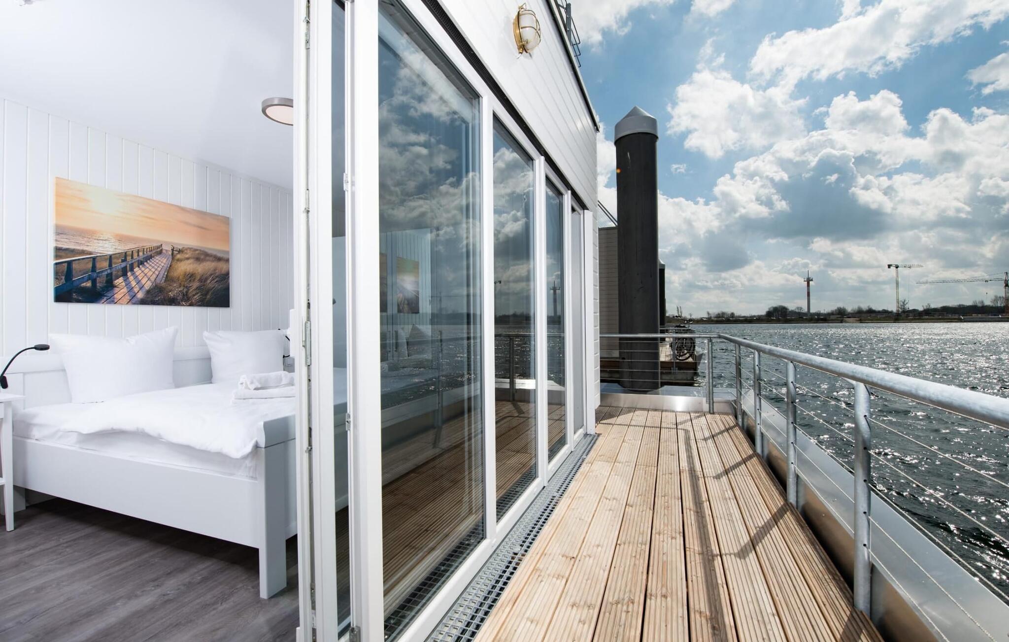 Det flydende hus Bente er hjemme i det fjerne nord og er solidt knyttet til anløbsbroen i ferieområdet Olpenitz ved østersøfjorden Slien og Østersøen. Denne helt specielle ferieoplevelse kombinerer eventyret fra en sejltur omgivet af vand med alle bekvemmelighederne ved et luksuriøst feriehus på land. Vand så langt øjet rækker. Det betagende landskab kan nydes gennem gulv-til-loft panoramavinduer, og tagterrassen byder på en spektakulær 360-graders udsigt over Slien, Østersøen og marinaen. Østersøen er kun en badestige væk, og sandstranden i Baltic Sea Resort kan nås til fods. I den mørke årstid giver gulvvarme og sauna hyggelig komfort, da wellness-programmet ombord er et must. Udover havnebiografen sørger Smart TV med hjemmeunderholdningsprogram for underholdning. Det flydende hus strækker sig over tre plan. På øverste etage er der opholds- og spisestue i åbent plan med udsigt til vandet hele vejen rundt, fuldt udstyret køkken-alrum og tilstødende terrasse. Herfra har I adgang til den spektakulære tagterrasse med udsigt over sejler- og sportsbådshavnen, Slien og dens udmunding i Østersøen. Udstyret med havemøbler af høj kvalitet og en Weber el-grill tilbyder terrasserne en ren feriefølelse og betagende solnedgange. Husets afslapningsområde er i stueetagen med to soveværelser, badeværelse og sauna. Det store soveværelse imponerer med et panoramavindue fra gulv til loft, hvorigennem I kan nyde den betagende vandbaggrund og en tilstødende omgivende terrasse. Begge soveværelser har fladskærms-tv med hjemmeunderholdningsprogrammer. Der er en ekstra soveplads på den komfortable sovesofa i husets opholdsstue. Når I tager en sauna eller børster tænder, kan I selvfølgelig også se havet og svanerne svømme forbi. Hvis I ønsker at rejse med båd, er dette det rigtige sted for jer. Der er en privat bådplads med landstrøm og vand lige ved siden af huset. Der er en privat parkeringsplads direkte ved anløbsbroen. Vores yndlingssted: at vågne op til en spektakulær vandkulisse. Bemærk venligst: OstseeResort Olpenitz er meget populært, og der bygges fortsat i parken. Ikke desto mindre kan I se frem til en 5-stjernet standard og et førsteklasses ophold. Byggeaktiviteterne kommer ikke til at forstyrre jer på ferien, og derfor gives der ikke yderligere afslag i prisen.