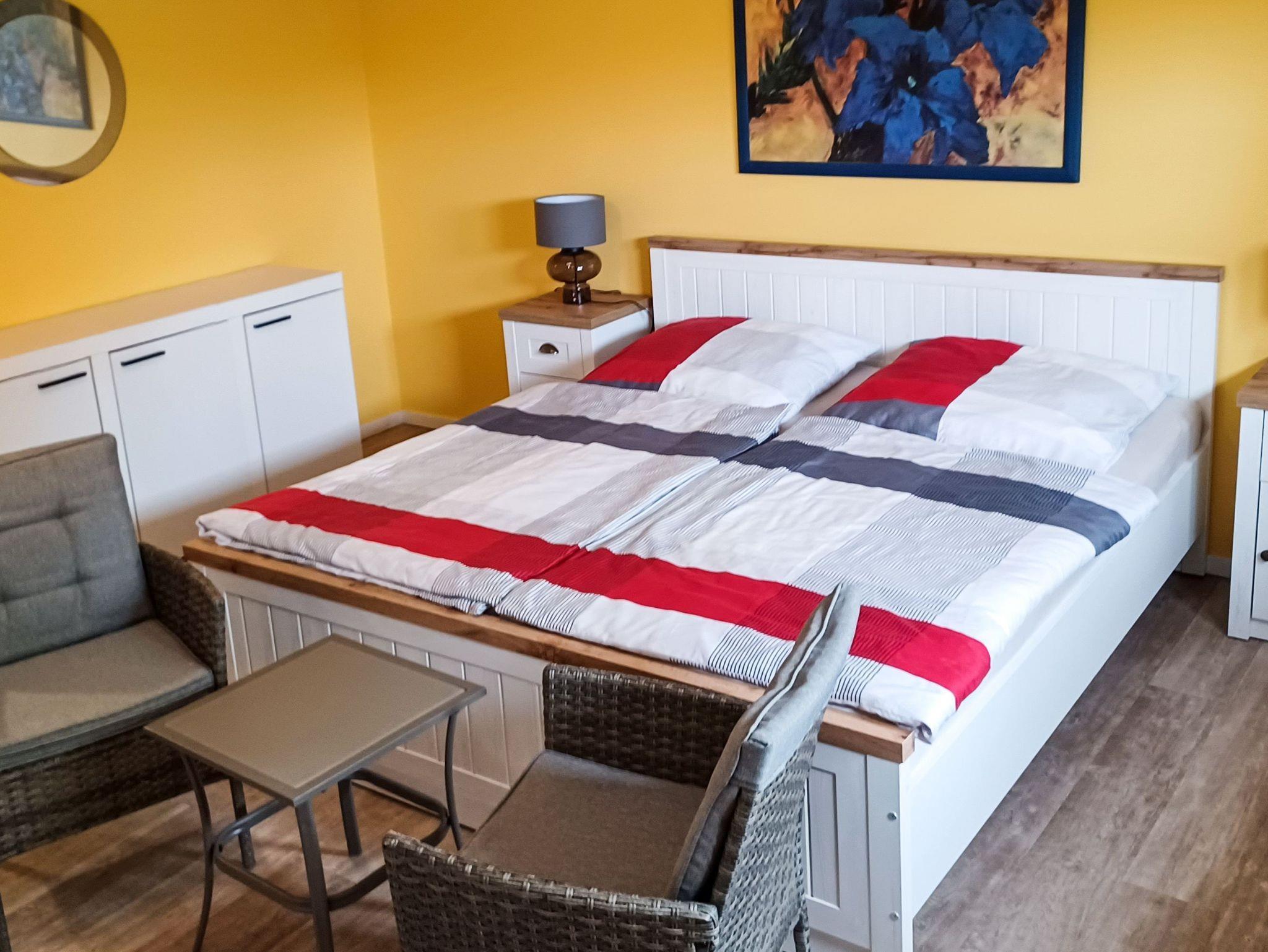 Die Ferienwohnung Balmer Wiesen auf der wunderschönen Insel Usedom liegt im Souterrain des Wohnhauses mit separatem Eingang. Die 70 m² große Ferienwohnung ist bestens für 4 Personen geeignet und verfügt über 2 Schlafzimmer, ein Wohnzimmer, eine Küche und ein Bad. Die Schlafzimmern sind jeweils mit einem Doppelbett (180x200, 140x200) und Kleiderschrank ausgestattet. Im geräumigen Wohnzimmer befinden sich ein bequemes Schlafsofa (120x180) und ein TV. Die separate Küche lädt zum gemeinsamen Kochen ein und ist ausgestattet mit einem Kühlschrank, Herd, Backofen, und allen notwendigen Kochutensilien und Geschirr. Auch der Grillplatz steht dir zur Verfügung um deine kulinarischen Köstlichkeiten zu zaubern. Nach einem erlebnisreichen Tag kannst du im Bad mit einer erfrischenden Dusche entspannen und neue Energie tanken.