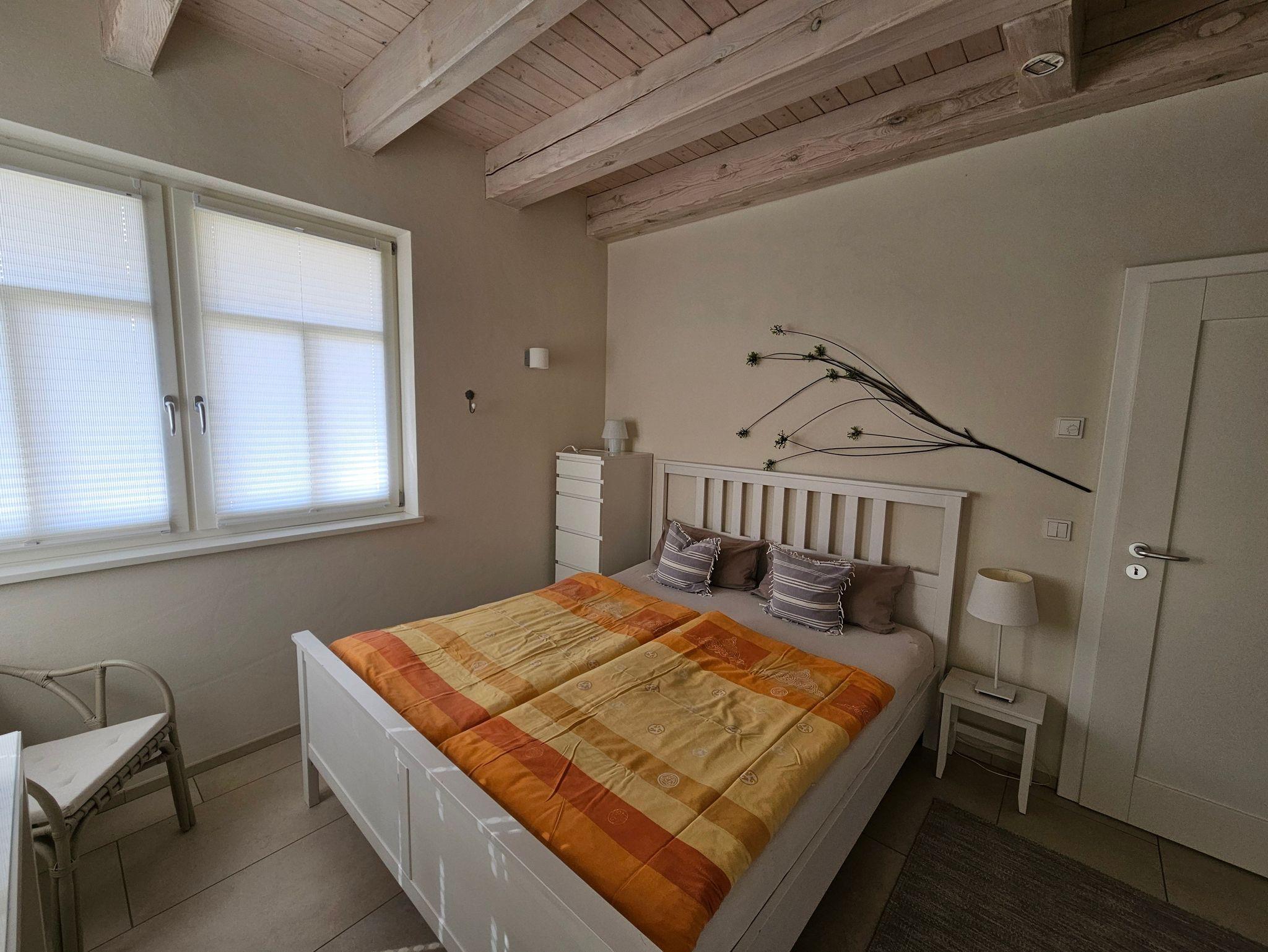 Das Ferienhaus Skipper ist ca. 70 m² groß und bietet Platz für 2 Personen. Alle Zimmer befinden sich im Erdgeschoss, da nur der untere Teil des Hauses vermietet wird. Am Wohnzimmer grenzt die schöne Außenterrasse an, die zum Entspannen und Erholen einlädt. Die offene Küche ist im Wohnbereich integriert und komplett ausgestattet mit Backofen, Cerankochfeld, Kühlschrank mit Gefrierfach, Wasserkocher, Kaffeemaschine und Toaster. Das Schlafzimmer ist mit einem Doppelbett und einem Kleiderschrank ausgestattet. Das Badezimmer verfügt über eine ebenerdige Dusche, WC, Waschtisch und Föhn.