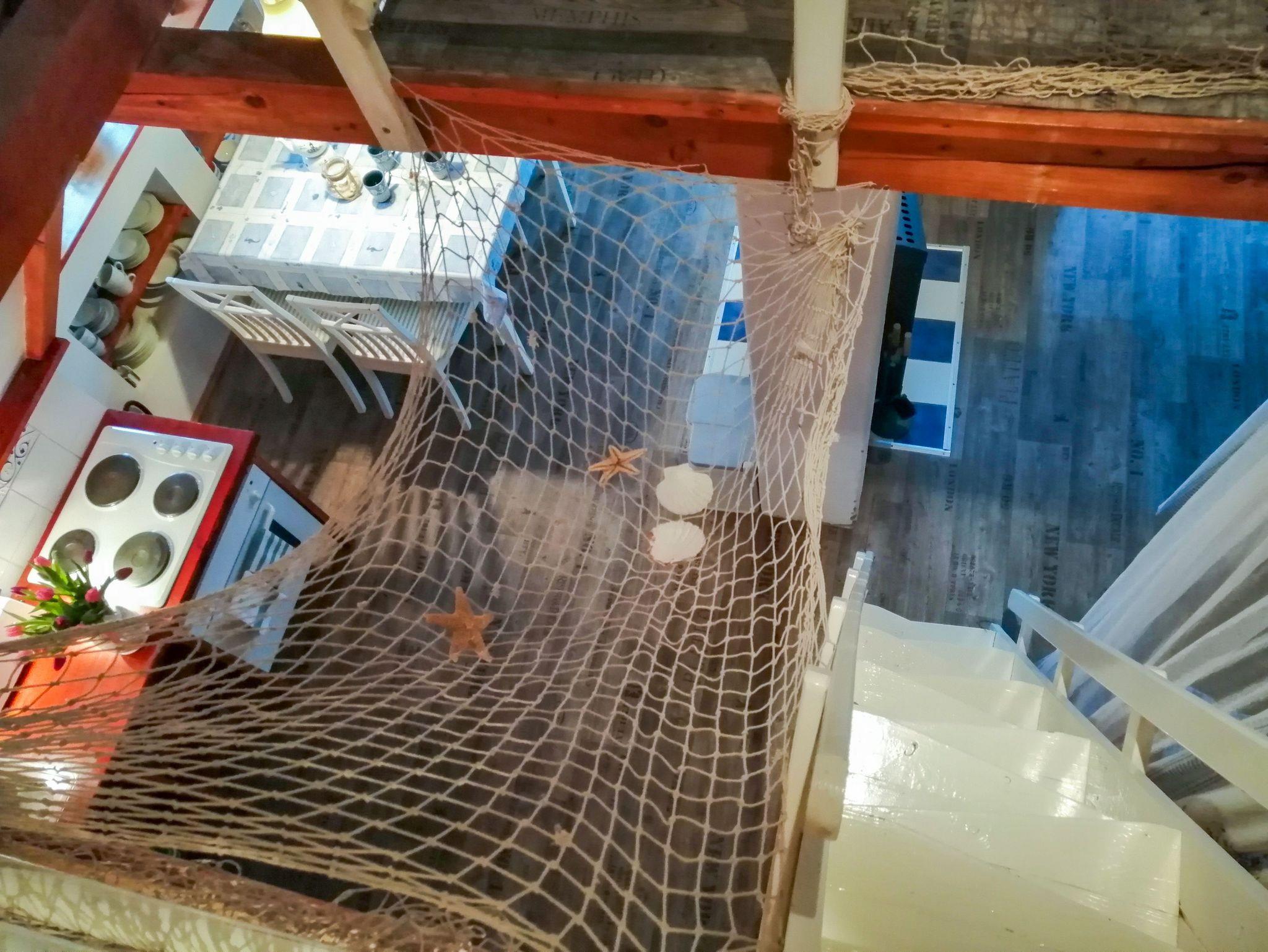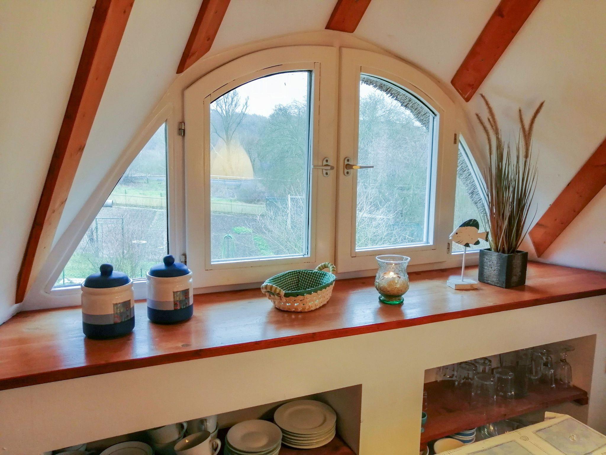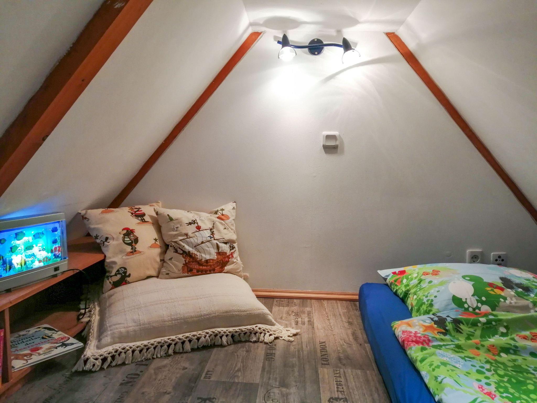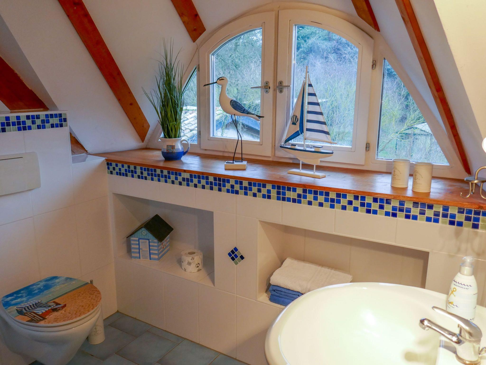 Die Ferienwohnung Albatros befindet sich im Obergeschoss des Reetdachhauses und ist ideal für 4 Personen geeignet. Sie ist als offenes Studio konzipiert und besticht mit einem großen Wohnraum mit Kamin und offenem Dachstuhl. Der maritime und luftige Flair lädt sie direkt ein ihre Seele baumeln zu lassen. Ihnen steht ein Wohnzimmer mit offener Küchenzeile und Esstisch zur Verfügung. Vom Wohnbereich abgetrennt durch Vorhang und Klapptüren finden sich die beiden Schlafkojen, einmal mit einem Doppelbett (180x200) und eine kleinere Schlafkoje (90x200). Über eine Raumspartreppe erreichen sie einen weiteren Rückzugsort mit einem Schlafboden (90x200). Das Tageslicht-Bad ist mit einer Dusche und WC ausgestattet.