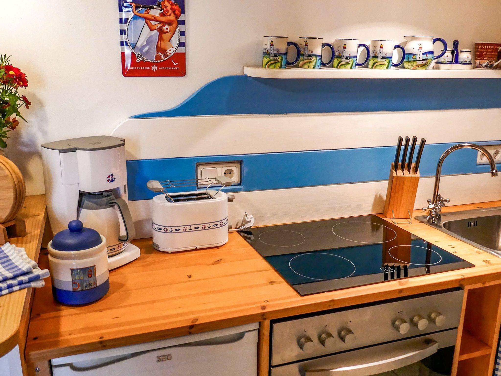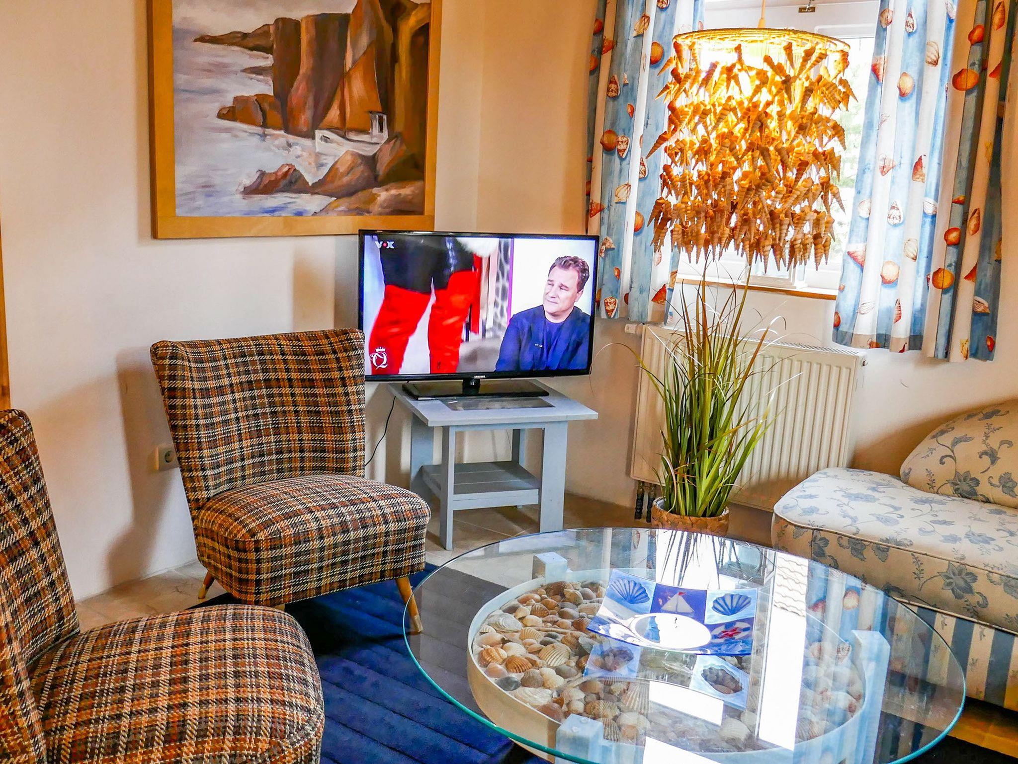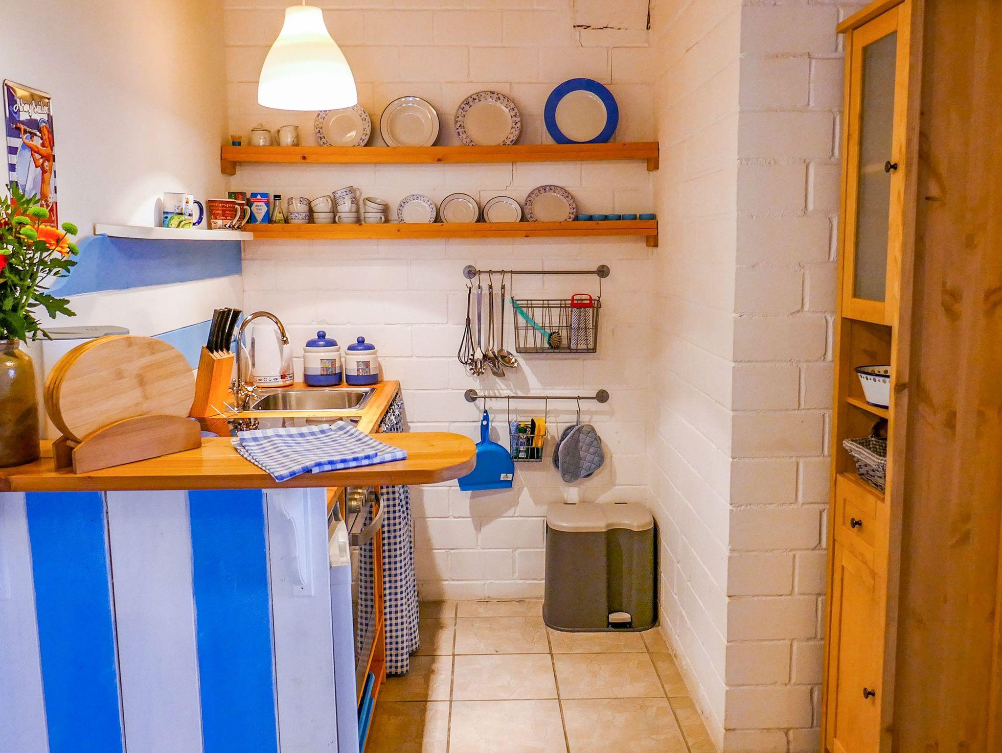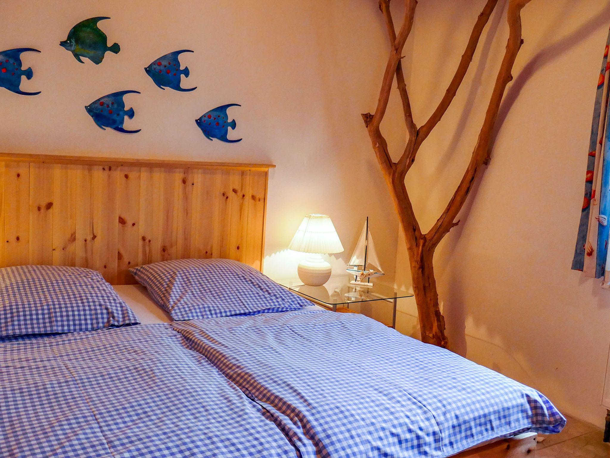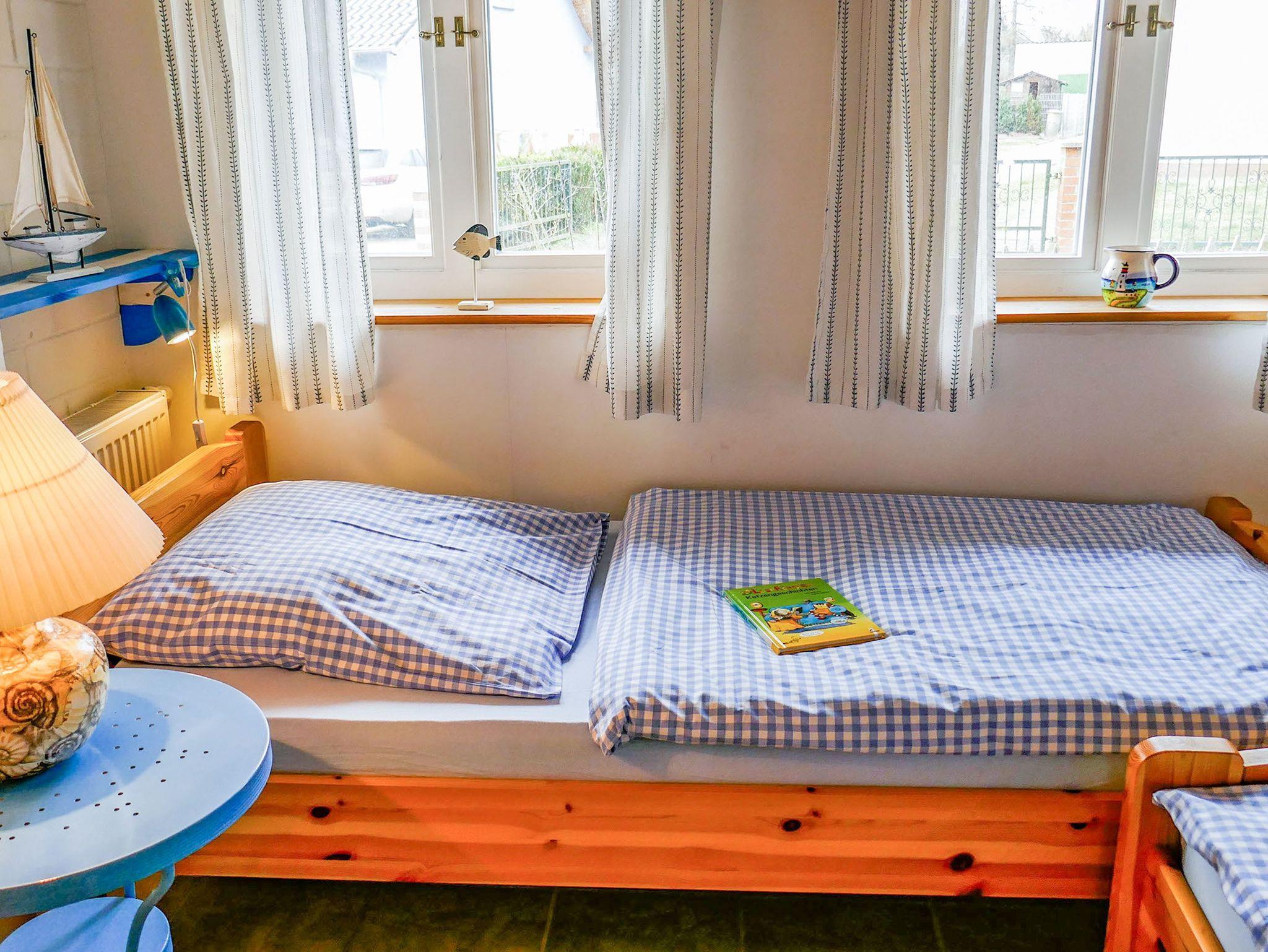 Die Ferienwohnung Nordkap mit maritimen Flair befindet sich im Erdgeschoss des Reetdachhauses und ist ideal für 4 Personen geeignet. Sie verfügt über ein Wohnzimmer mit Sofa, TV und Essbereich, eine Küche mit Backofen und Kühlschrank und ein Bad mit Dusche und WC. Die beiden Schlafzimmer sind mit einem Doppelbett (180x200) und zwei Einzelbetten (90x200) ausgestattet.