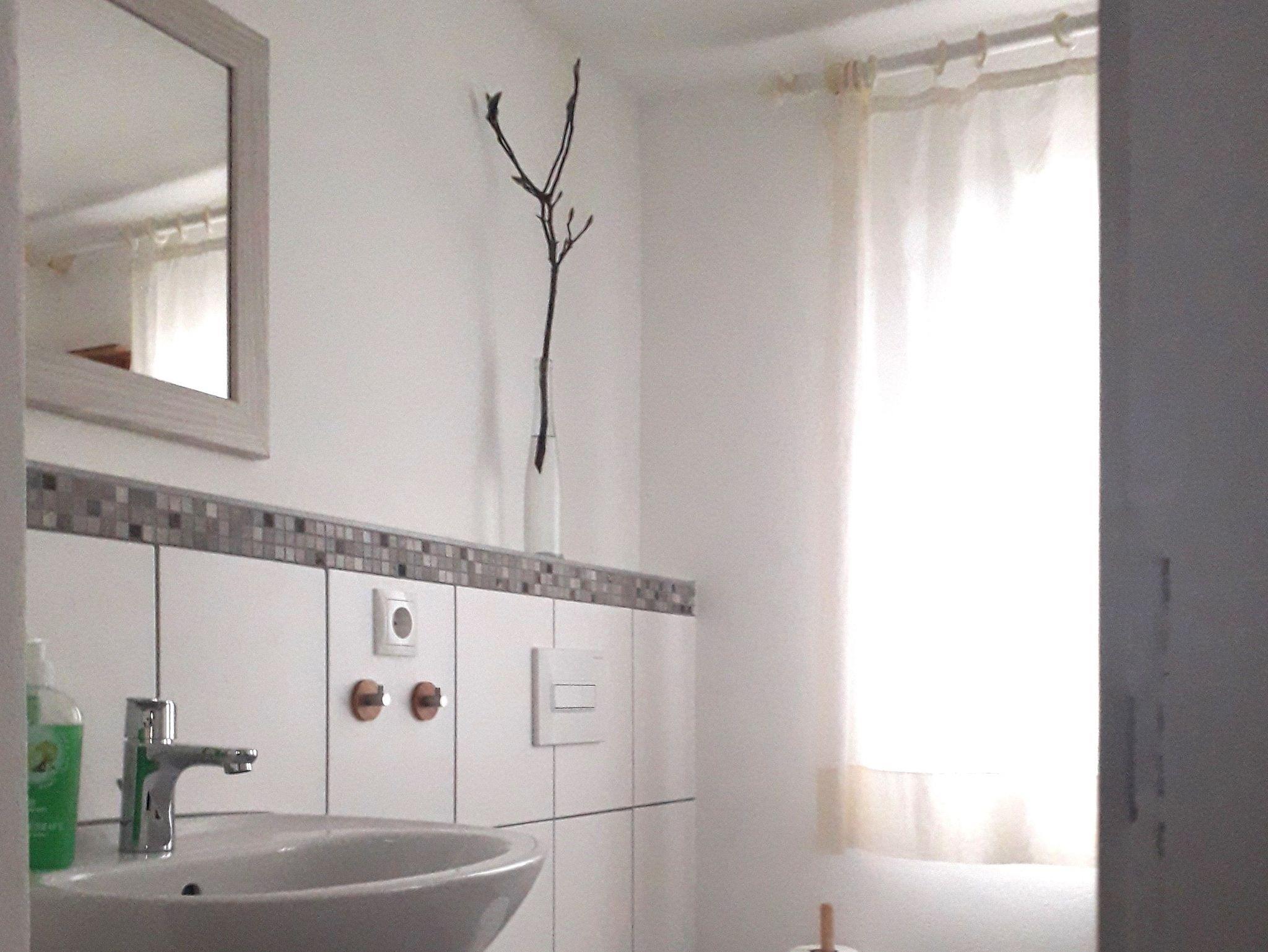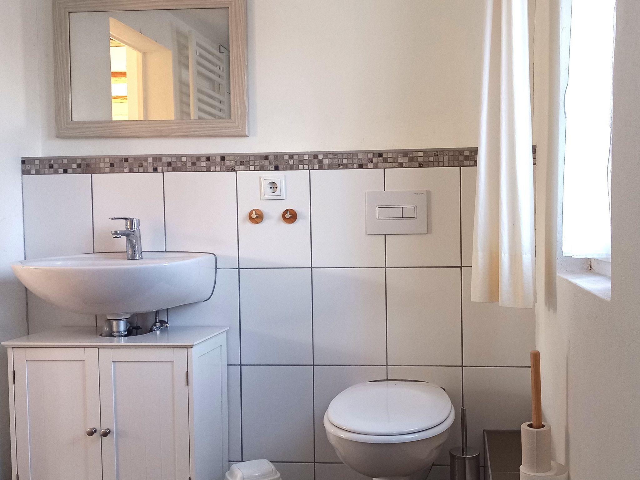 Die Ferienwohnung unter dem Reetdach des alten Hauses hat einen separaten Eingang und ist lichtdurchflutet und freundlich. Sie erstreckt sich über zwei Etagen. Die nach oben offene Wohnküche im Erdgeschoss verfügt über freiliegende Deckenbalken. Über eine steile Treppe gelangen Sie in das luftige Schlafzimmer im Obergeschoss, in dem sich ein Doppelbett und ein Einzelbett befinden. Sie eignet sich besonders gut für Paare. Für Ihre Fahrräder gibt es eine abschließbare Abstellmöglichkeit. Ein Parkplatz steht Ihnen ebenfalls zur Verfügung. Im Garten kann die Wäschespinne gern zum Trocknen der Handtücher genutzt werden.