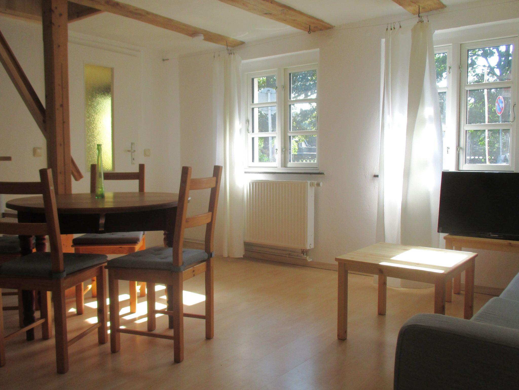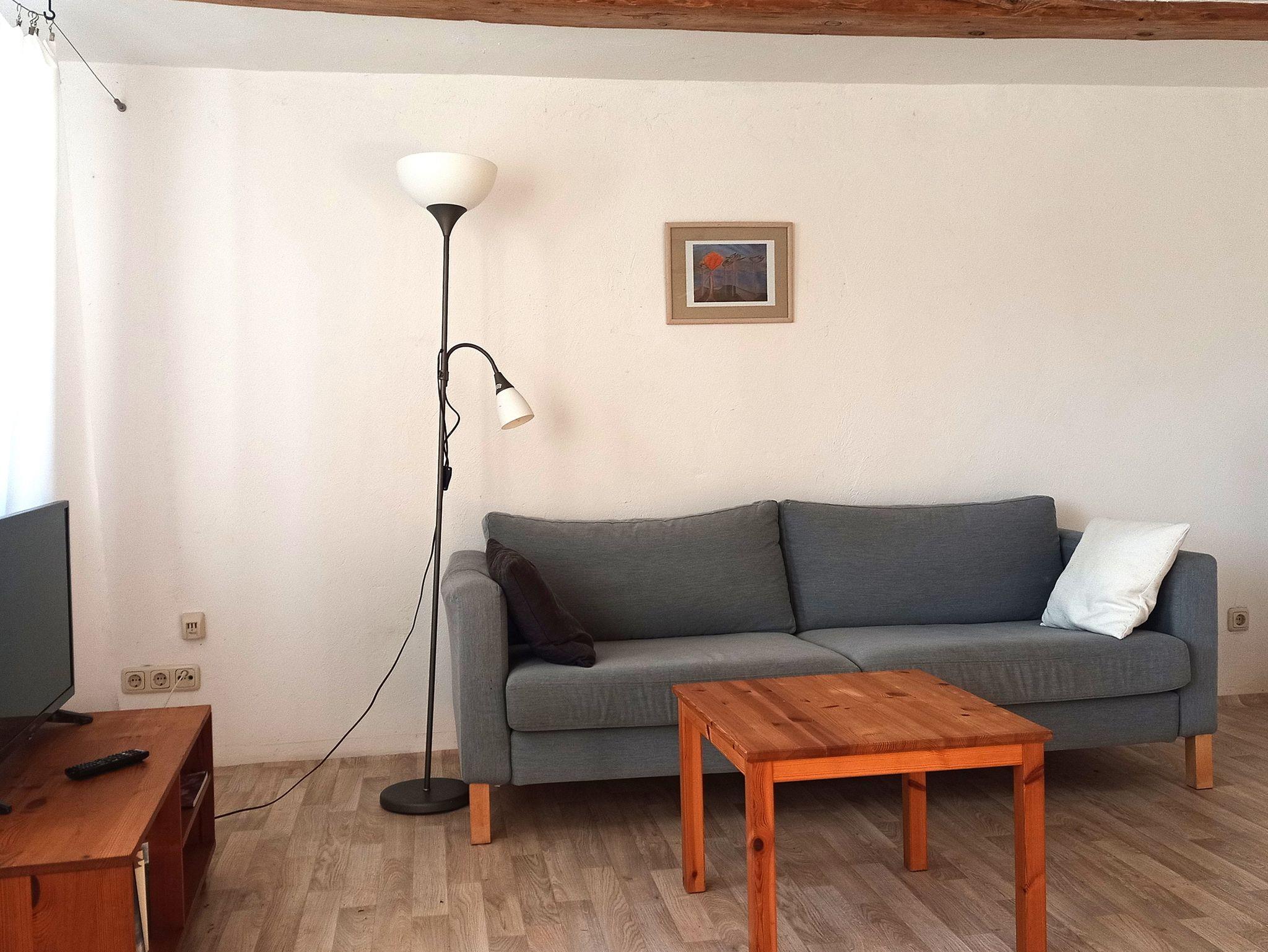 Die 56 qm große Ferienwohnung ist im skandinavischen Landhausstil gehalten, der die gemütliche, natürliche Ausstrahlung eines Landhauses mit der klaren, minimalistischen Ästhetik des skandinavischen Designs kombiniert. Helle Farben und einfache, funktionale Möbel schaffen eine ruhige, freundliche Atmosphäre. Die Deckenhöhe ist niedrig. Wohnküche und Sitzecke im Garten haben Morgenlicht. Im kombinierten Wohn-/Essbereich befinden sich Sofa, Couchtisch und Flachbild-TV, die Küche ist mit 4-Platten-Herd, Backofen, Kühlschrank mit Gefrierfach, Kaffeemaschine, Toaster und Wasserkocher ausgestattet. Das Badezimmer verfügt über Tageslicht und ist mit ebenerdiger Dusche und WC ausgestattet. Das luftige Schlafzimmer im Obergeschoss erreichen Sie über eine steile Raumspartreppe. Es ist mit einen Doppelbett von einer Größe von 2,00 x 2,00 m und einem Einzelbett ausgestattet. Die Bettwäsche ist im Preis inbegriffen, Handtücher sind mitzubringen.