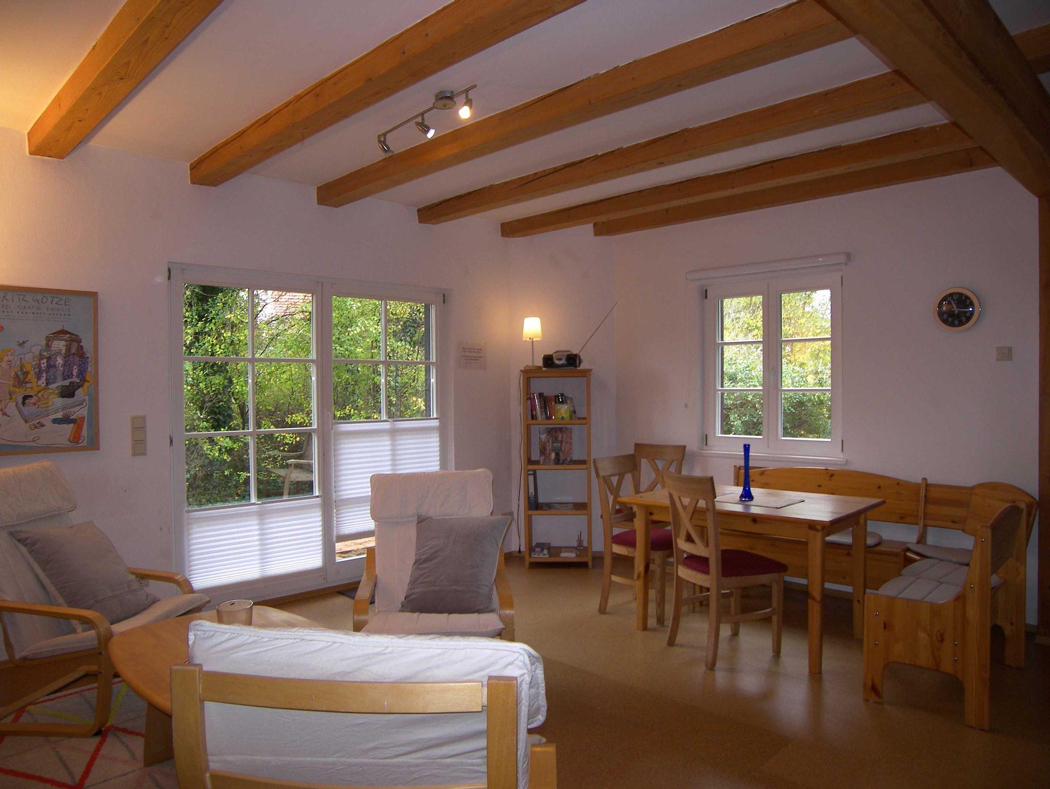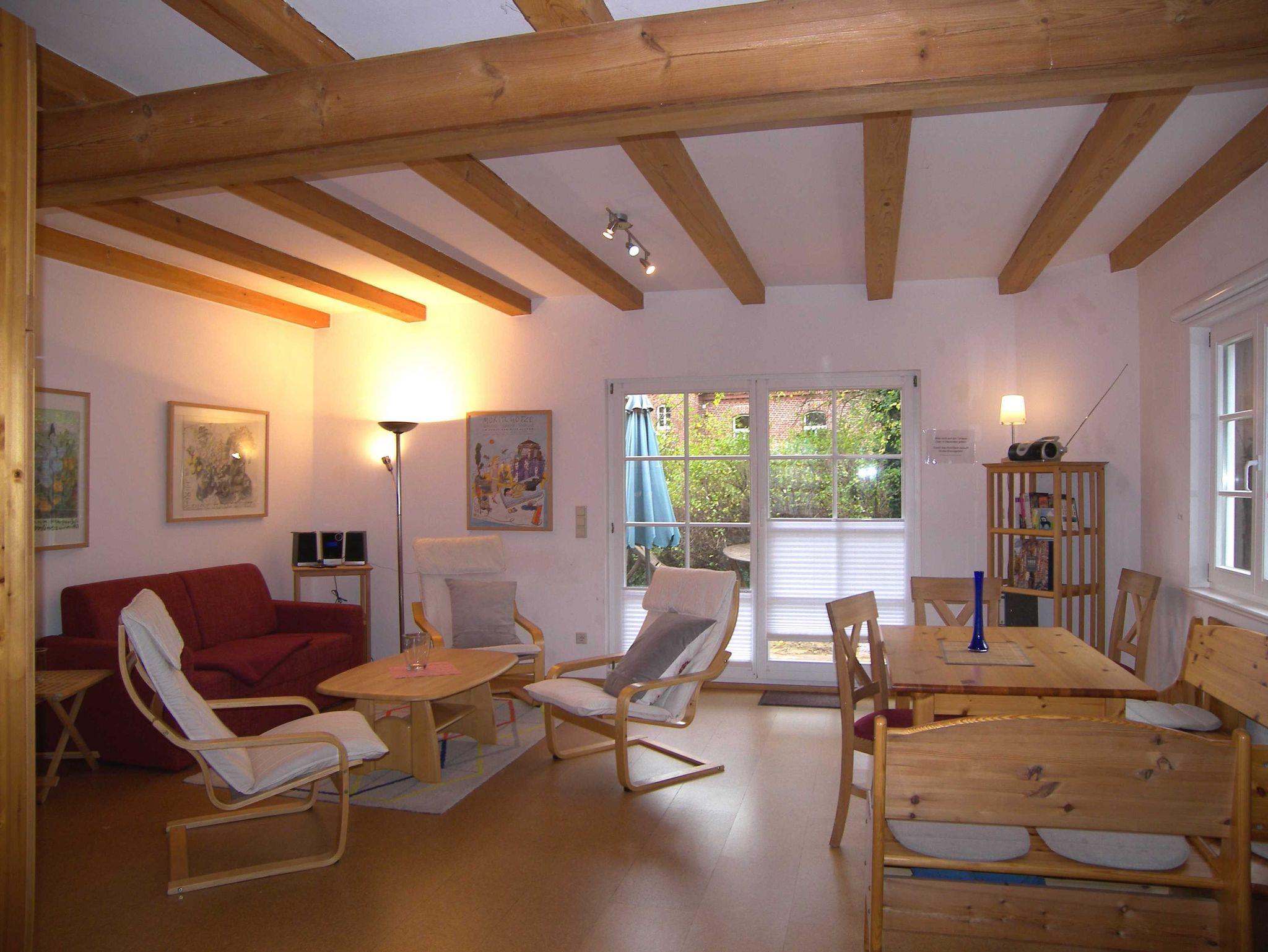 Die geschmackvoll eingerichtete Haushälfte bietet Ihnen ein komfortables Urlaubsziel. Im Erdgeschoss finden Sie den Wohnbereich mit einer komplett ausgestatteten Küchenzeile mit Backofen, Spülmaschine, Kühlschrank mit Gefrierfach, Mikrowelle, Kaffeemaschine, Wasserkocher und Toaster sowie das Badezimmer mit Dusche und WC. Vom Wohnbereich gelangen Sie auf die Terrasse. Das Schlafzimmer mit Doppelbett, ein schönes Kinderzimmer mit Etagenbett und ein separates Gäste-WC befinden sich im Obergeschoss. Als Aufbettungsmöglichkeit steht im Wohnzimmer eine bequeme Schlafcouch für die 5. Person bereit. Ein Kinderreisebett passt zusätzlich ins Schlafzimmer. Wickeltisch, Hochstuhl und Reisebettchen können bei Bedarf zur Verfügung gestellt werden.