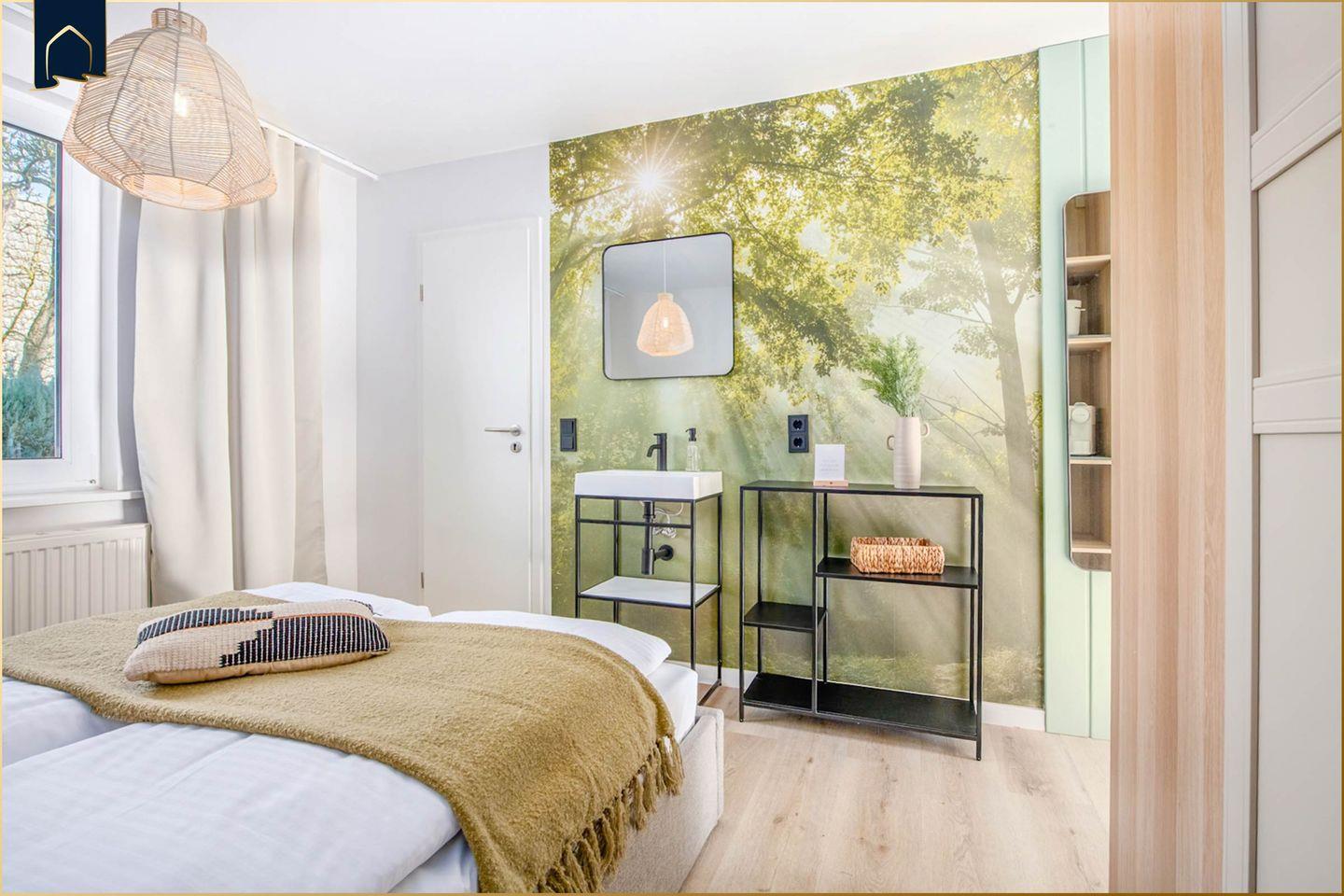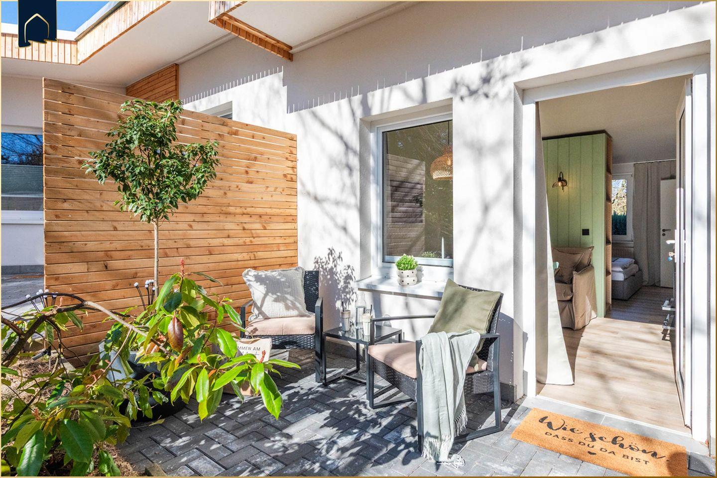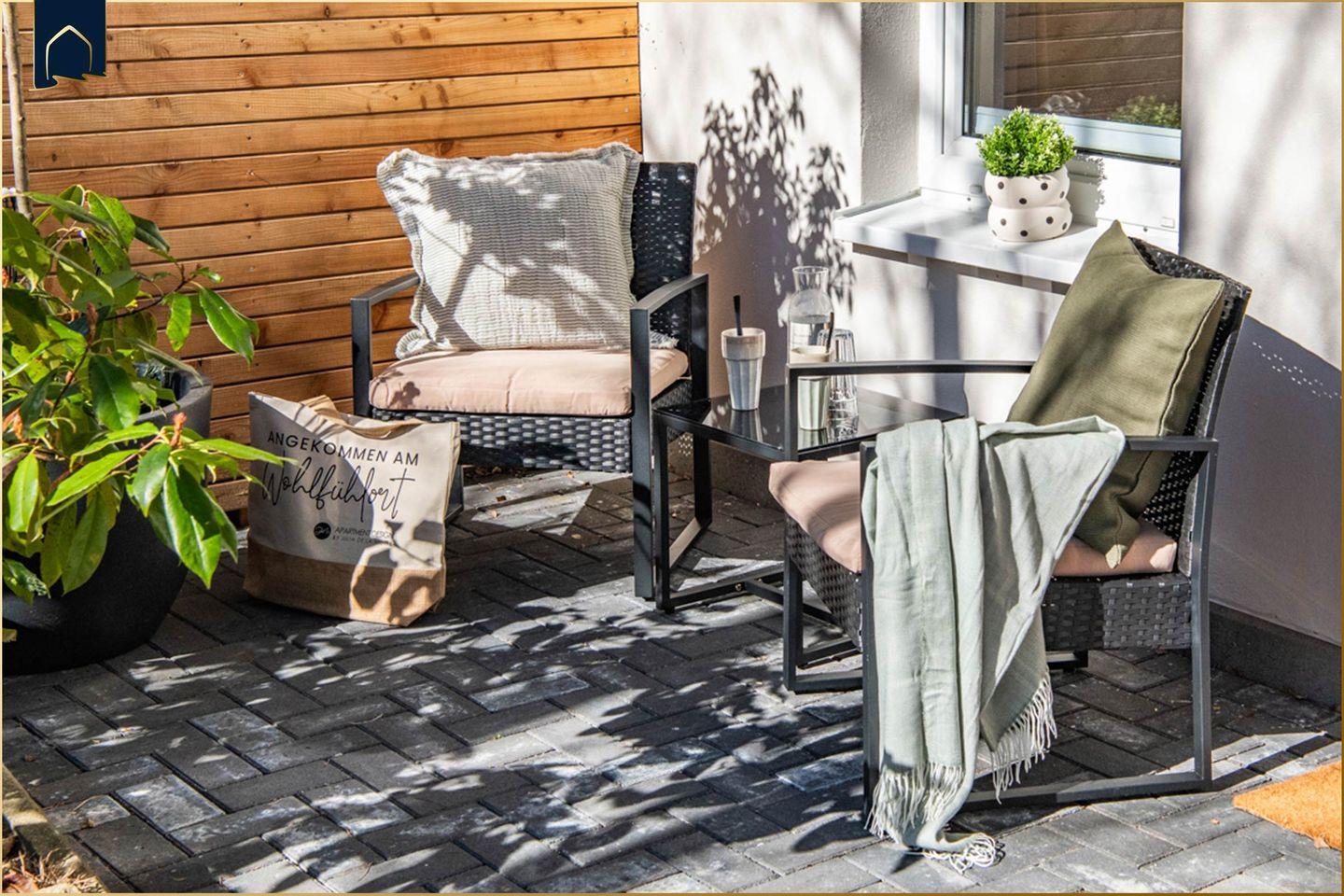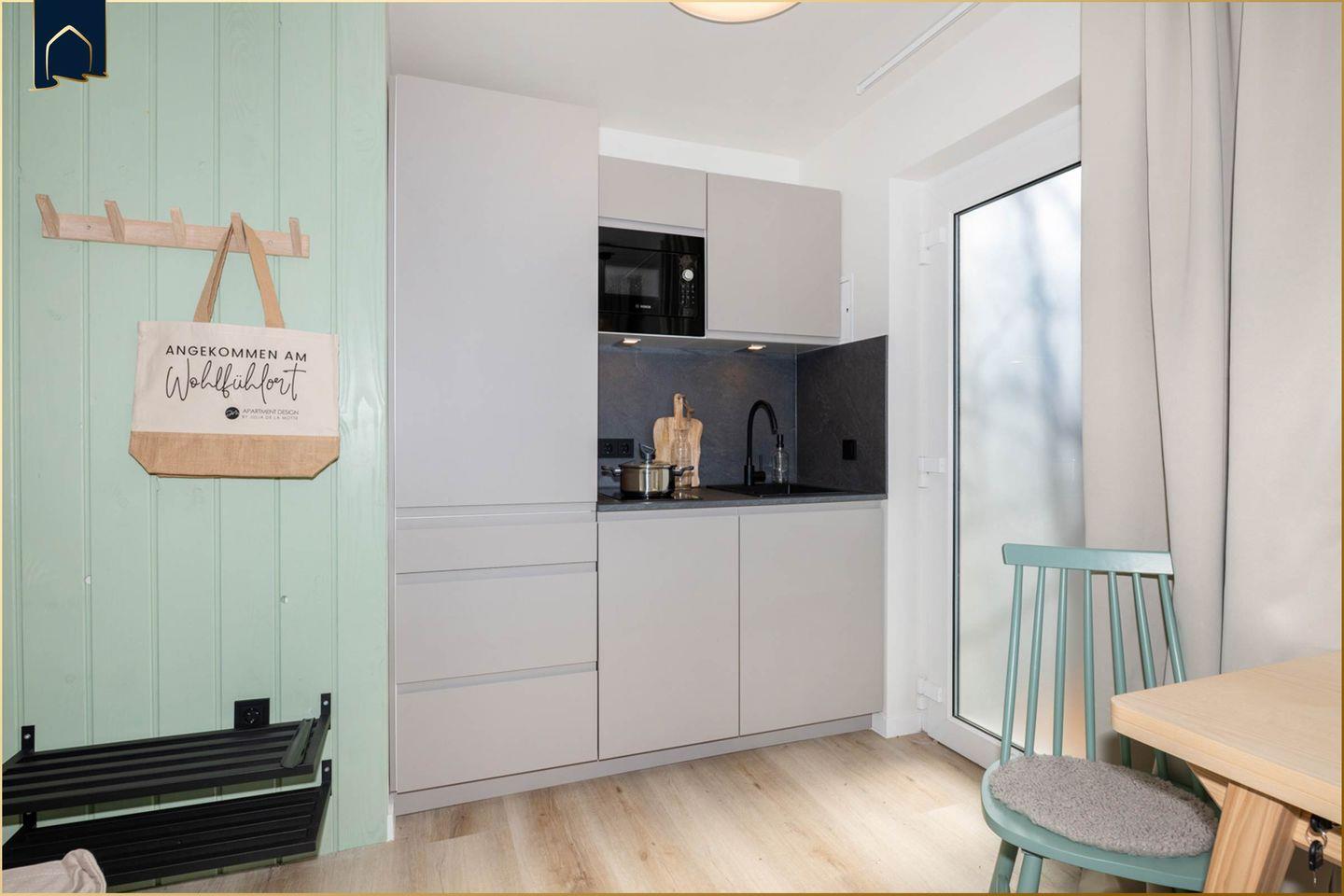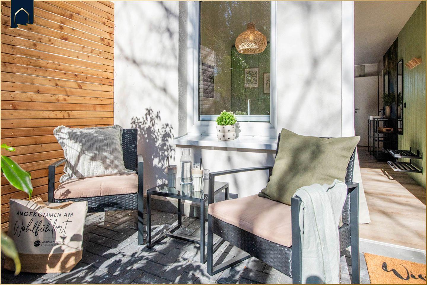 Die Wohnung verfügt über ein separates Schlafzimmer mit bequemer Schlafmöglichkeit, ein modernes Badezimmer mit Dusche und einen offen gestalteten Wohn- und Essbereich. Die voll ausgestattete Küche enthält u.?a. einen Kühlschrank mit Gefrierfach, Herd, Mikrowelle, Spülmaschine sowie eine Espressomaschine – ideal für Selbstversorger. Die möblierte, überdachte Terrasse mit direktem Zugang zum Garten lädt zu entspannten Stunden im Freien ein. WLAN, TV, Esstisch, Kosmetikspiegel sowie ein eigener Privatparkplatz sind ebenfalls vorhanden.