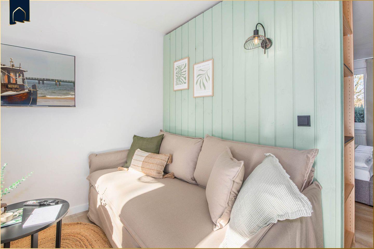 Trotz der ruhigen Lage erreichen Sie in wenigen Minuten Restaurants (500?m), Einkaufsmöglichkeiten (5?km) sowie den nächsten Bahnhof (5?km). Der nächste See liegt nur 700?m entfernt und eignet sich wunderbar für Spaziergänge oder sportliche Aktivitäten. Auch das Meer und der Ostseestrand sind in ca. 6,5?km erreichbar. Golfplatz, Radwege, Wanderstrecken sowie zahlreiche Ausflugsziele auf Usedom machen diese Ferienwohnung zur idealen Basis für Abenteuer, Romantik oder einfach nur Erholung.