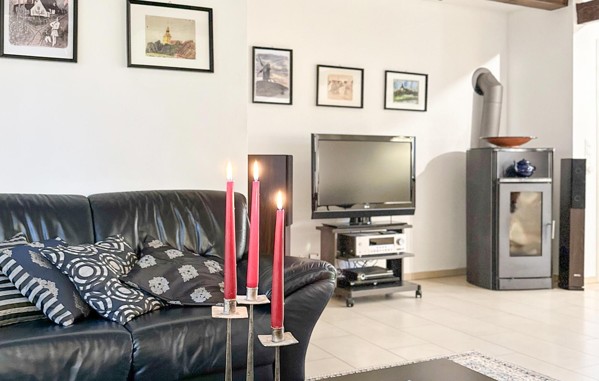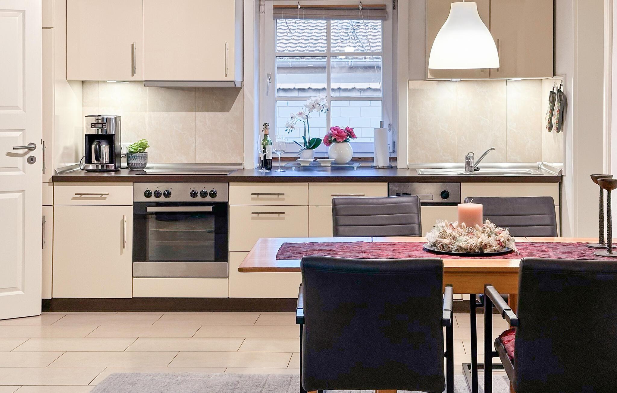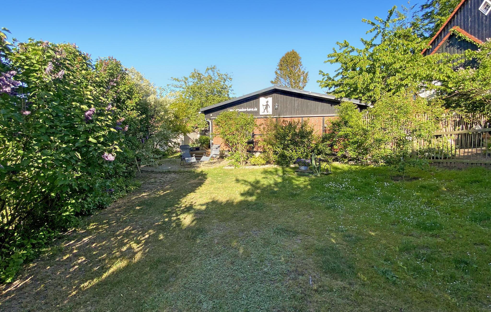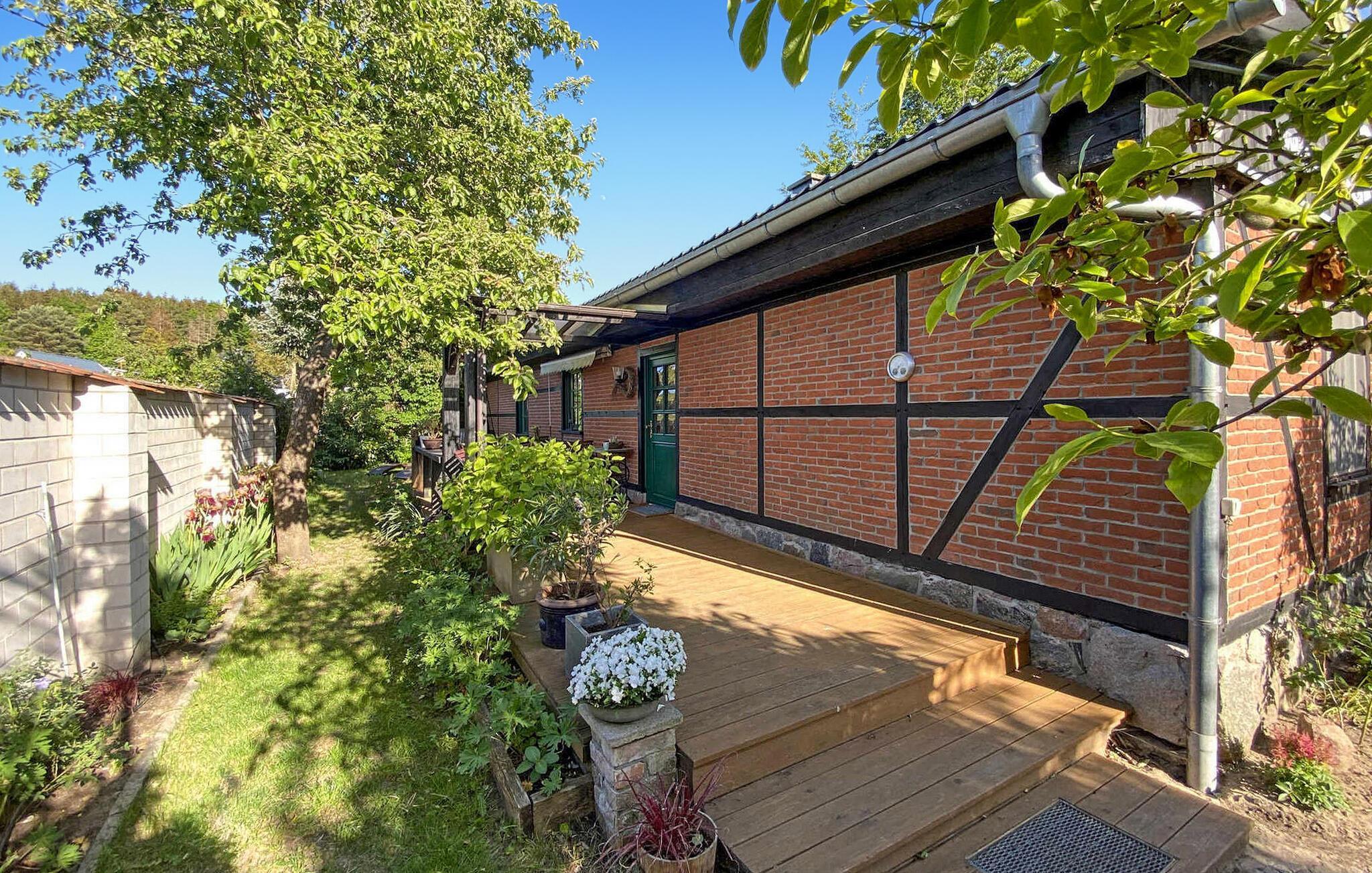 Sommerhuset, en tidligere lade, står separat på ejerens beboelsesejendom. Der er afsat et helt indhegnet område på cirka 300 kvadratmeter til gæster. Feriehuset er komfortabelt indrettet med kombineret stue/spisestue (lædersofa, spiseplads, LCD-tv, hi-fi system, fastnettelefon, feriebibliotek med bøger og cd'er, luge til terrassen), komplet tekøkken (el-komfur) med Ovn, køleskab med fryseboks, opvaskemaskine, diverse køkkenmaskiner), 2 soveværelser (hver med dobbeltseng og garderobe, TV, tremmeseng til ekstra brug), bad/toilet med gulvvarme og håndklædetørrer samt bryggers med bl.a. vaskemaskine (5 EUR/dag hvis nødvendigt). Huset opvarmes med centralvarme og pejs. Der er også en samling af maleren og Bauhaus-professoren Lyonel Feininger på stedet. Der er parkeringsplads på ejendommen, terrasse med grill, legeplads og spiseplads med markise. Den samlede pris inkluderer: slutrengøring, vand- og energiforbrug, fastnettelefon og internetbrug. Sengelinned og håndklæder kan medbringes eller lejes på stedet. Benz, byen på Schmollensee omgivet af skovklædte bakker, er en af de smukkeste landsbyer på øen Usedom. Attraktioner er St. Petri-kirken og den hollandske vindmølle. Der er restauranter, cykeludlejning og en legeplads i byen, og der er gode fiskemuligheder ved Schmollensee. Achterwasser med badestrand er cirka 2 km væk, Østersøstranden (Bansin badeby) er cirka 6 km væk og en golfbane er cirka 4 km væk.