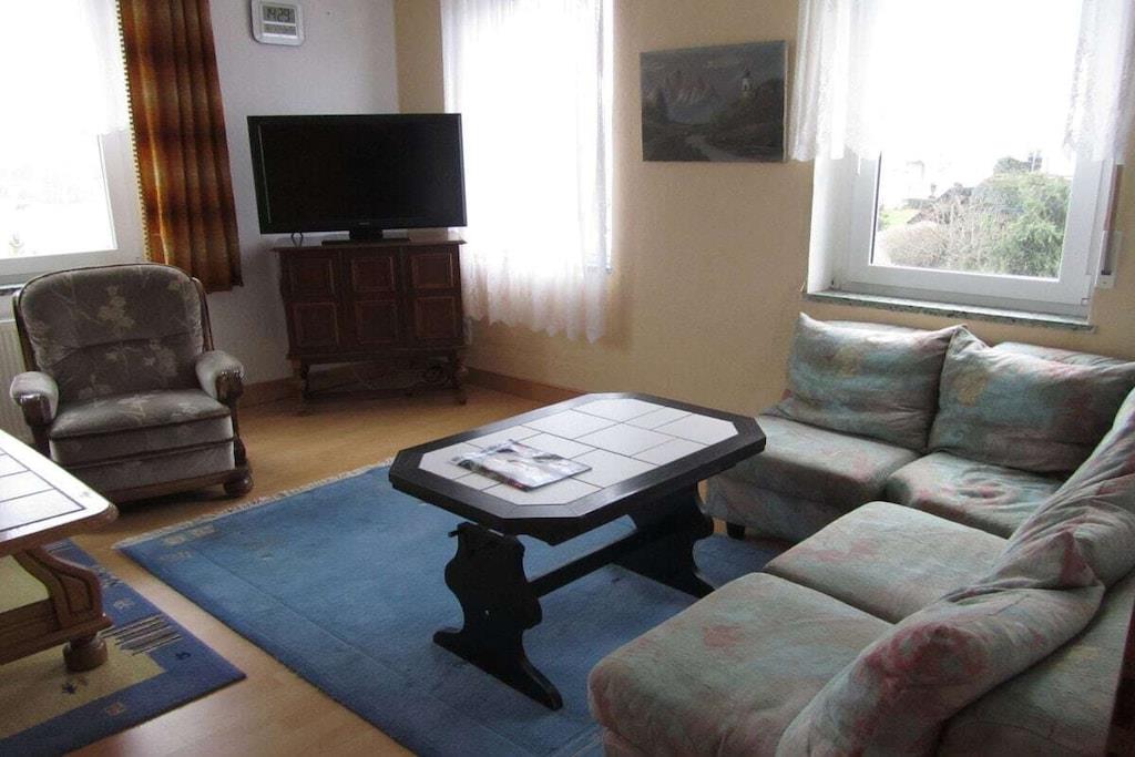 Den 80 kvm store ferielejlighed ligger på første sal i et trefamiliehus og har plads til 3-7 personer. Den har en stue, 2,5 soveværelser, et køkken, et badeværelse med bruser og separat toilet, et stereoanlæg, en cd-radio, et LCD-tv og en dvd-afspiller. Køkkenet er udstyret med service, en mikrobølgeovn, en opvaskemaskine, et komfur med keramisk kogeplade og et stort køleskab med fryser. Der er også en balkon med stole og et bord. Lejligheden har Wi-Fi-internetadgang! Lejligheden har 7 enkeltsenge med belysning og 3 satellit-tv'er.