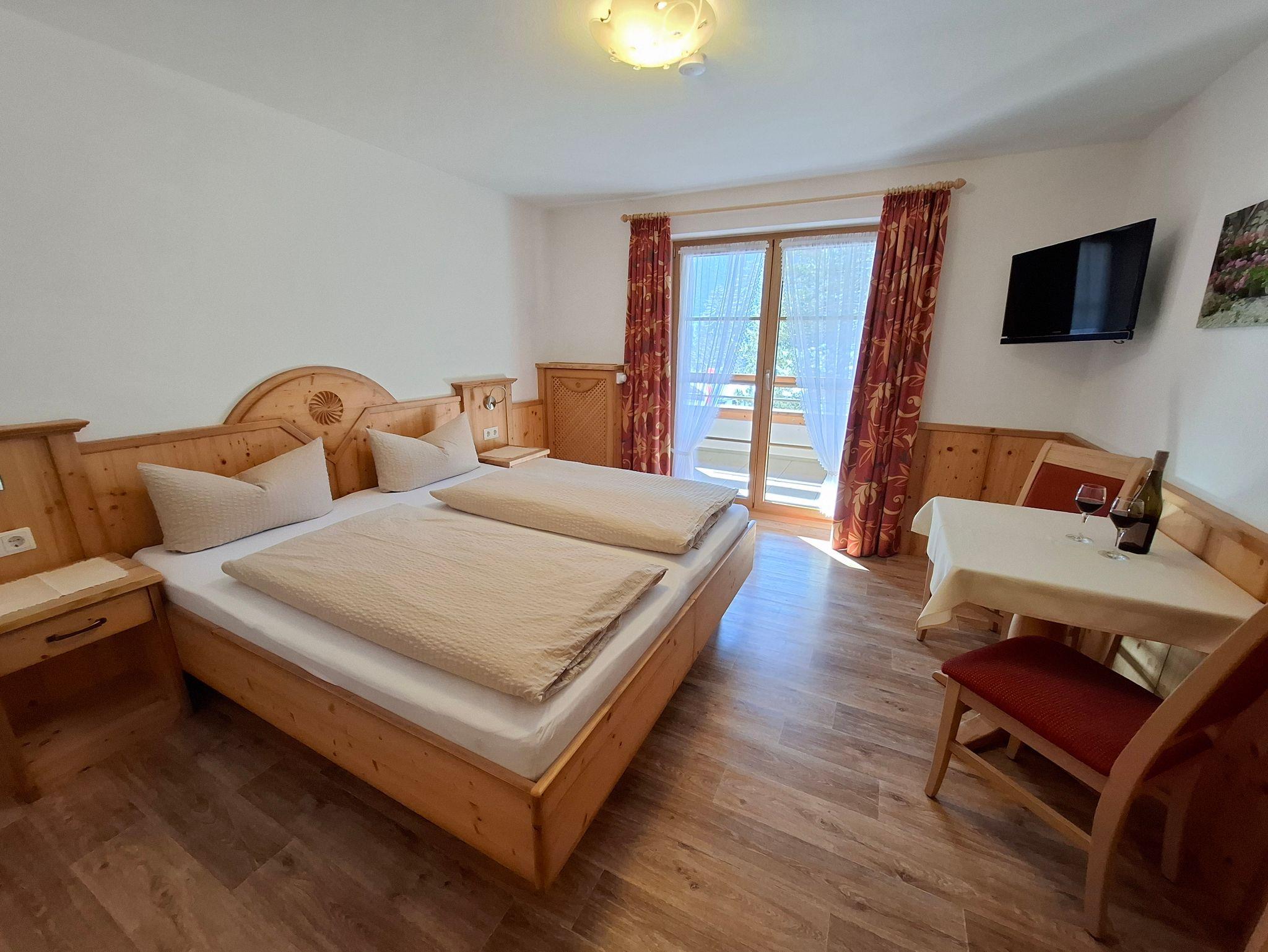 Unser komfortables Familienzimmer ist mit Echtholzmöbel eingerichtet. Zur Standardausstattung gehört eine Sitzecke mit Tisch, ein separates Kinderzimmer mit 2 getrennten Betten, TV und kostenloses W-LAN,sowie ein Badezimmer. Das geräumige Zimmer ist für 3-5 Personen geeignet.Das Zimmer hat einen großen Balkon mit herrlichem Bergblick. Die Zimmergröße beträgt 43 qm.
