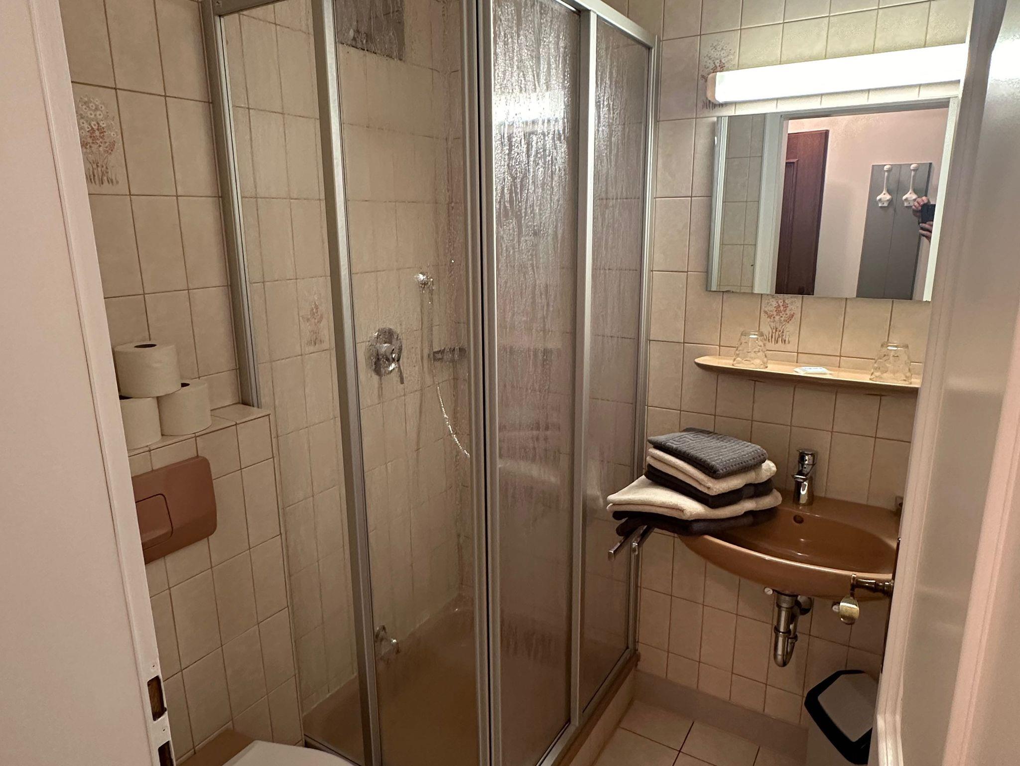sind vorhanden. Im eigenen Bad finden Sie Dusche/WC und Waschbecken. Die Handtücher werden