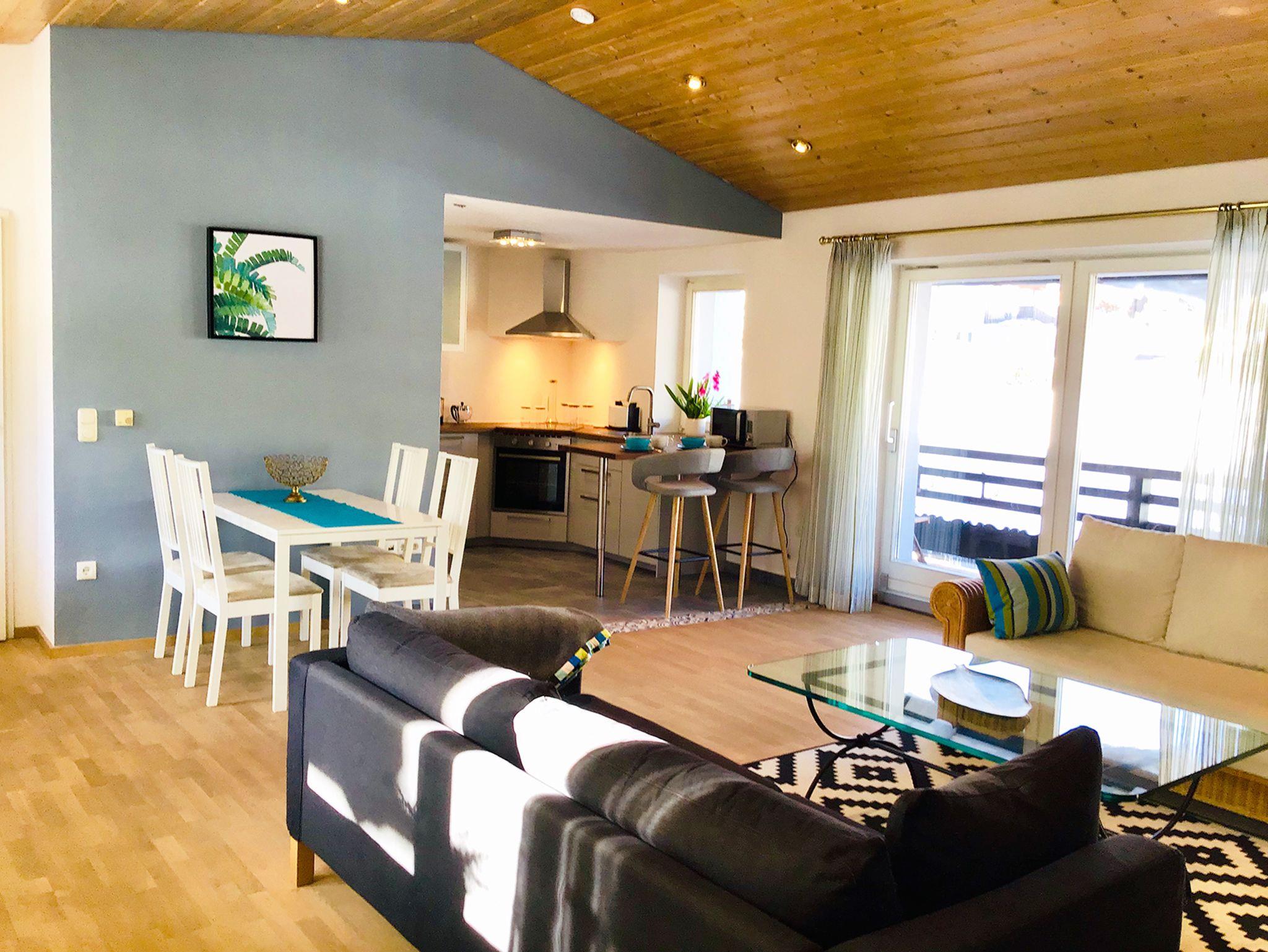 Das 103m² groß Ferienapartment für 2-5 Personen ist mit seiner zentralen Lage ideal geeignet für einen Urlaub mit der Familie.Egal ob Erholungsuchende oder Aktivsportler, Berchtesgaden hat für jeden etwas zu bieten. Auf dem Balkon lässt sich so mancher Sommerabend gemütlich ausklingen und im Winter bietet das geräumigen Wohnzimmer Platz für die gesamte Familie.