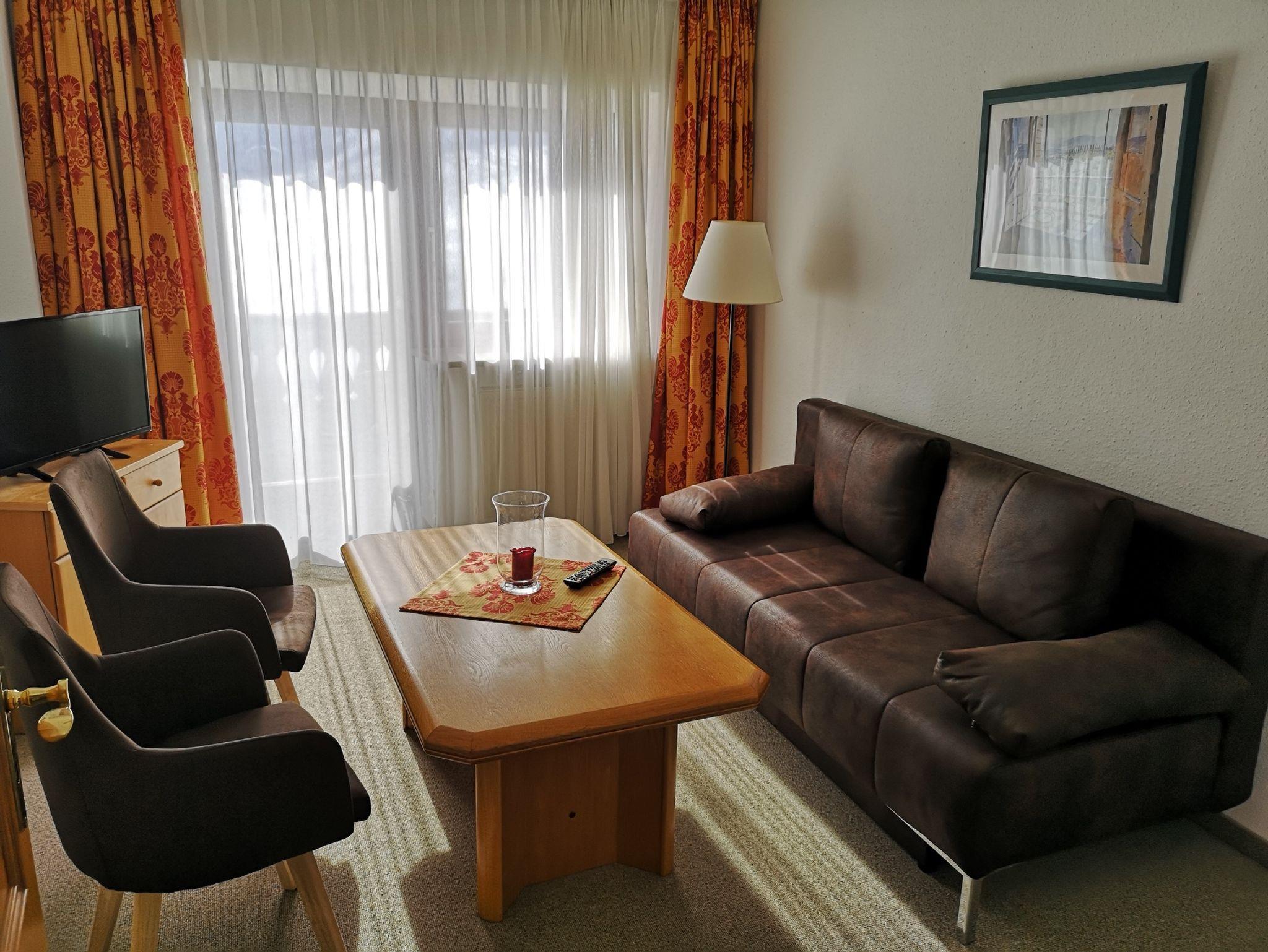 Die Ferienwohnung mit rd. 56 m² Wohnfläche im Erdgeschoss besteht aus einem Schlafzimmer (ein Doppel- und ein Einzelbett) und einem hellen Wohnraum (zusätzliche Schlafmöglichkeit für 2 Personen), Ausziehcouch, einer Kochnische mit Küchenausstattung, einer Dusche mit WC, einer separaten Toilette und einem Südbalkon. Sie ist für maximal 4 Personen geeignet.