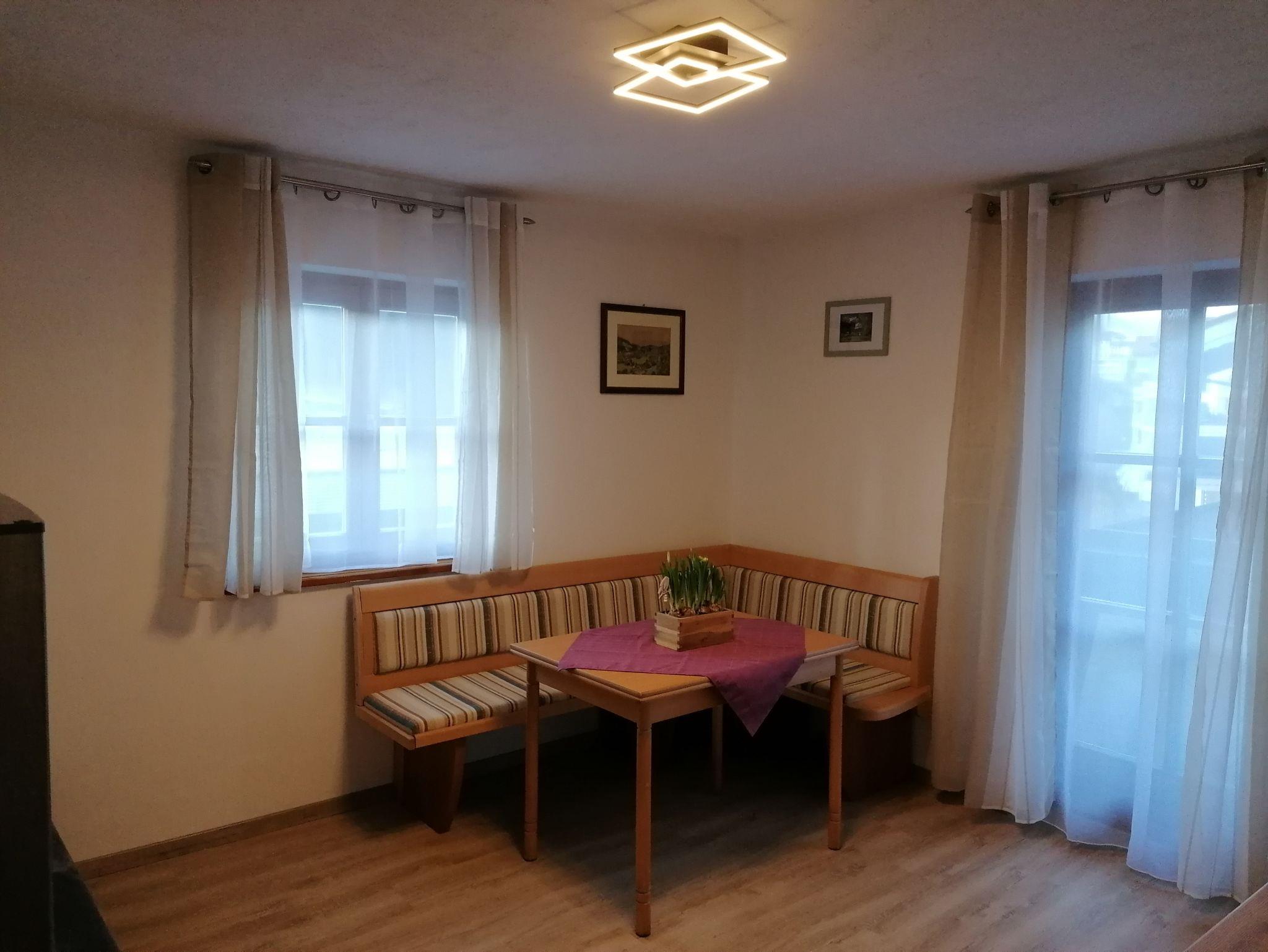 Unsere helle Feriewnohnung ist neu renoviert. Sie verfügt über ein gemütliches Wohnschlafzimmer mit Ausziehcouch für die 3.Person. und Fernseher. Die Wohnküche ist voll ausgestattet mit einer gemütlichen Essecke einem Fernseher und einem Sofa welches als Schlafliege genutzt werden kann. Genießen Sie den Bergblick auf dem sonnigen großen Rundum Balkon.