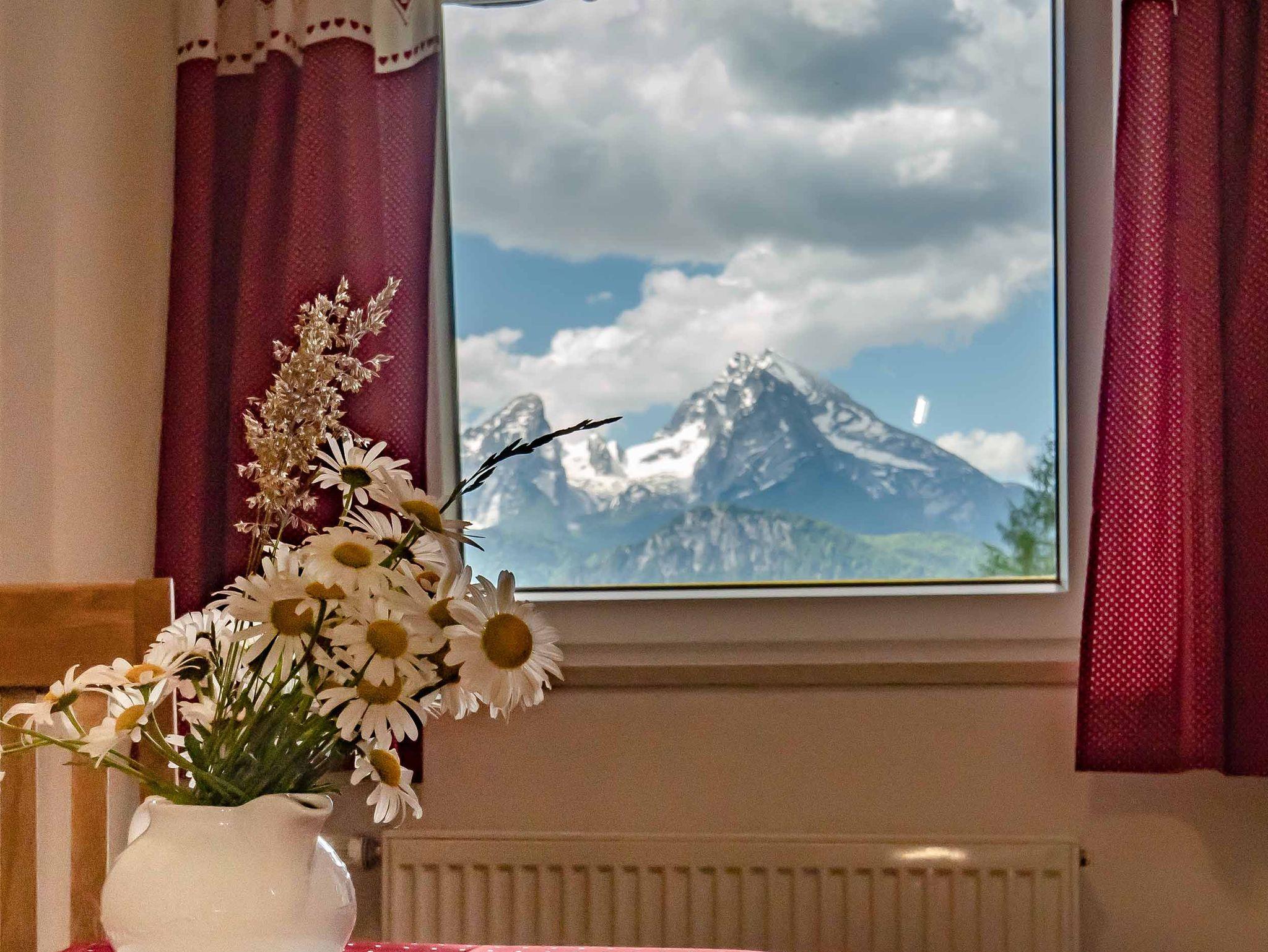 Unsere gemütlichen eingerichteten Zimmer bieten einen grandiosen Ausblick auf den Watzmann und die Berchtesgadener Berge.