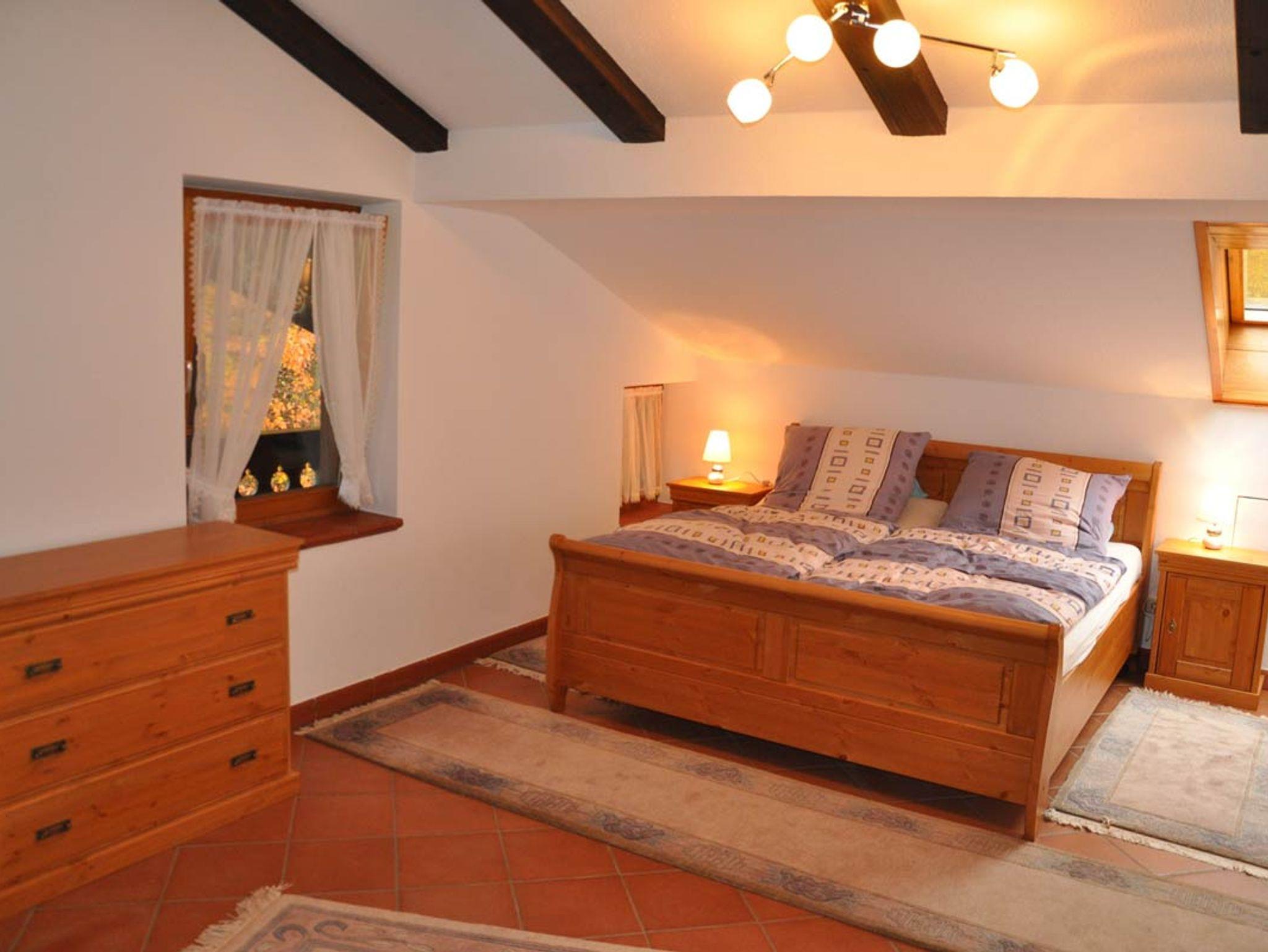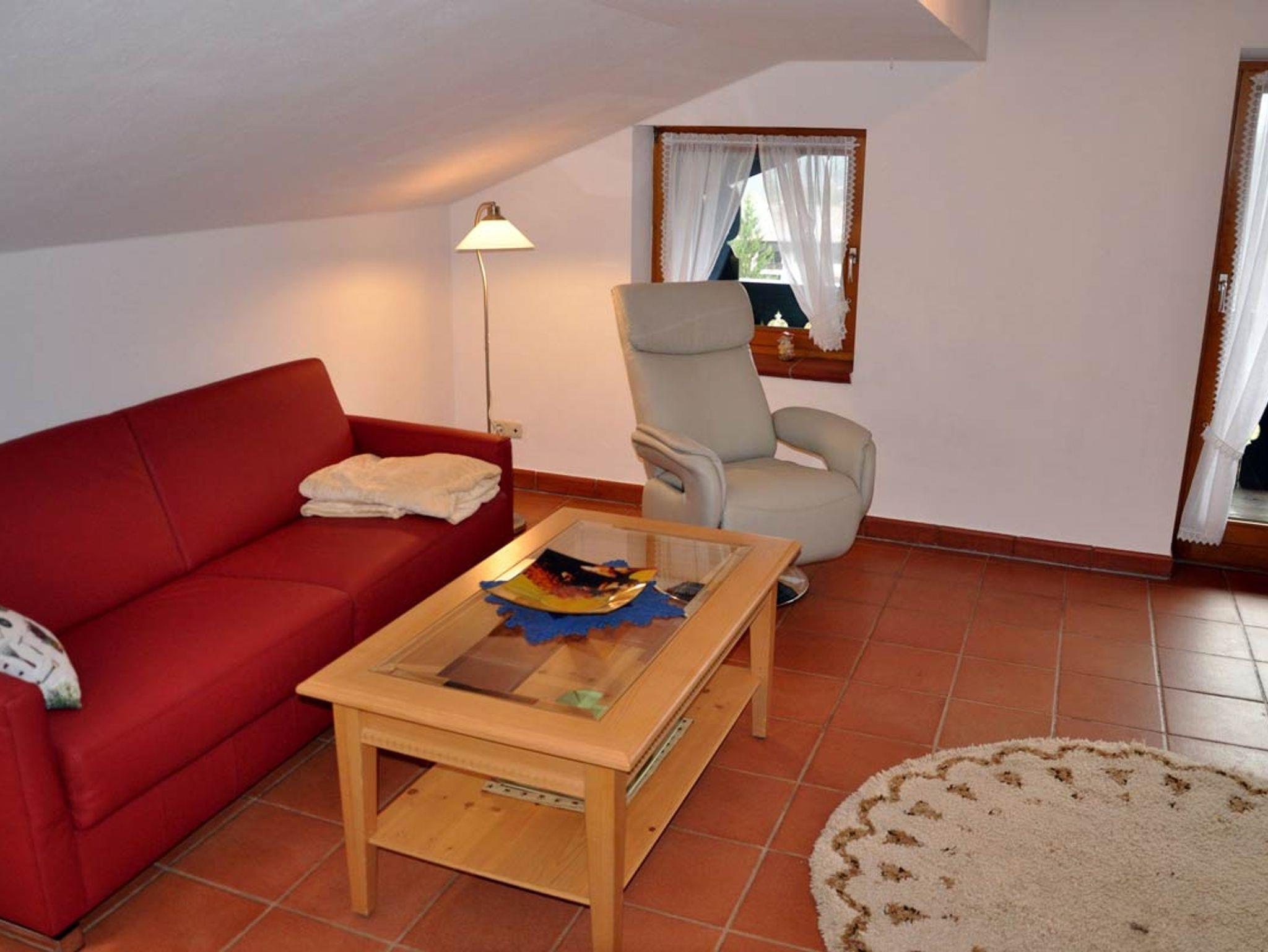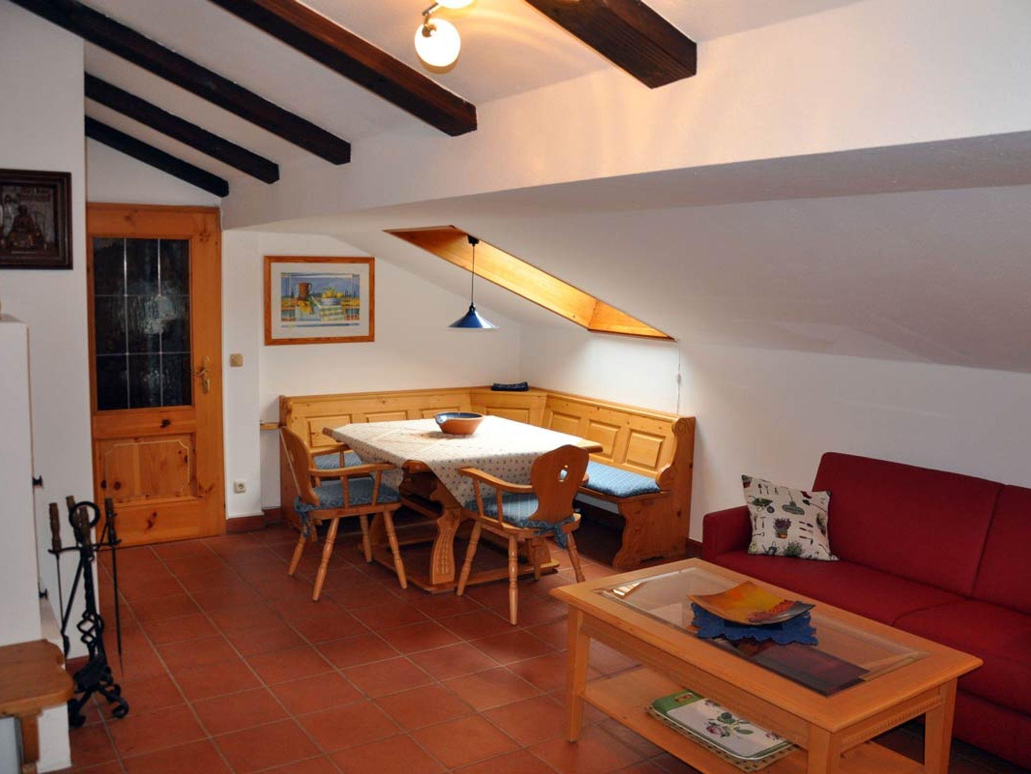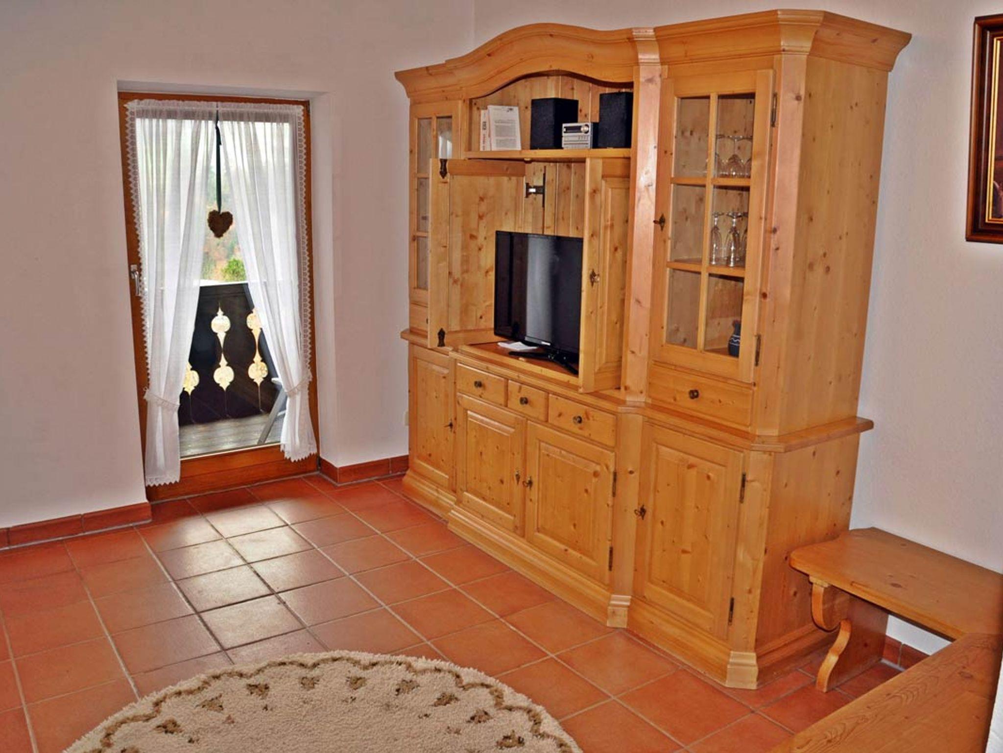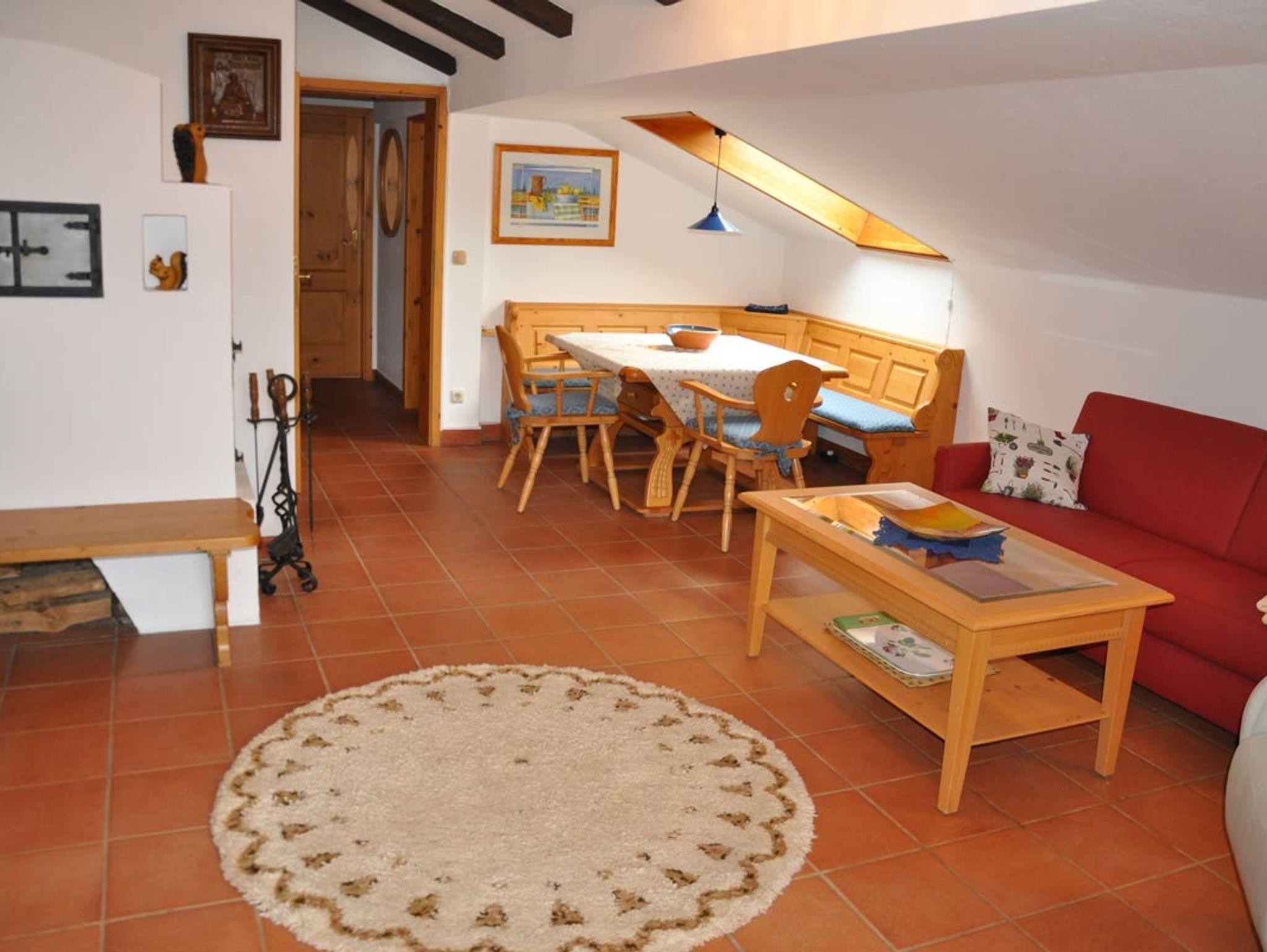 Gemütliche Wohnung, eingerichtet im Landhausstil mit 2 Zimmer, Küche, Bad im 2. OG (Dachgeschoss). Ausstattung: 1 separates Schlafzimmer mit Balkon mit Blick auf den Wald. Doppelbett (180 x200) mit Bandscheibenmatratzen, Einbauschrank und eine weitere Sitzmöglichkeit, Bettwäsche Bad mit Dusche, WC, Badewanne und Doppelwaschbecken, Fön, HandtücherSeparate Küche mit Herd, Kühlschrank , Geschirrspüler, vollständig eingerichtetWohnzimmer mit Sonnenbalkon mit Watzmannblick. Eckbank, hochwertiges Schlafsofa, TV, Radio, Wlan, Fernsehsessel Grillmöglichkeit im GartenSollten Sie Ihren Hund mitbringen wollen, fragen Sie bei uns gerne an.
