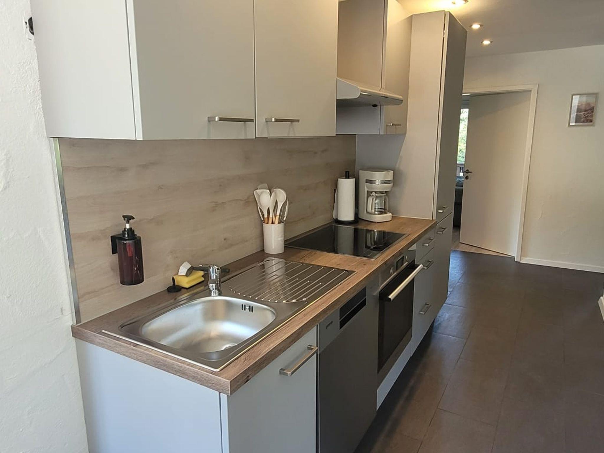 Die große Küche ist modern gestaltet und bietet ausreichend Platz für gemeinsame Kochabende.